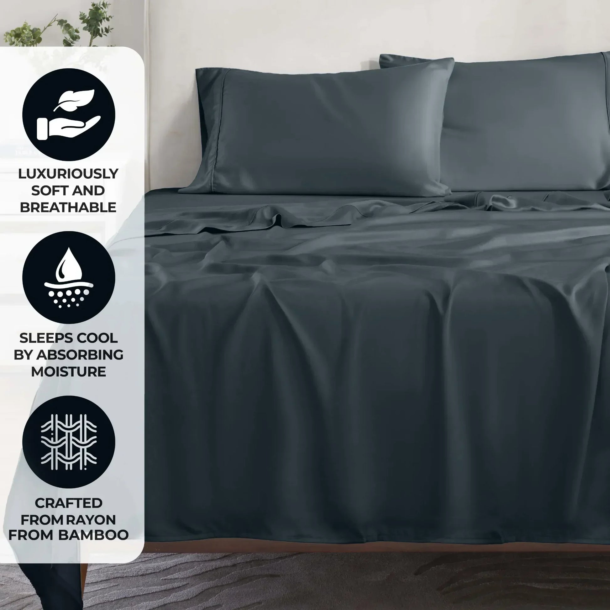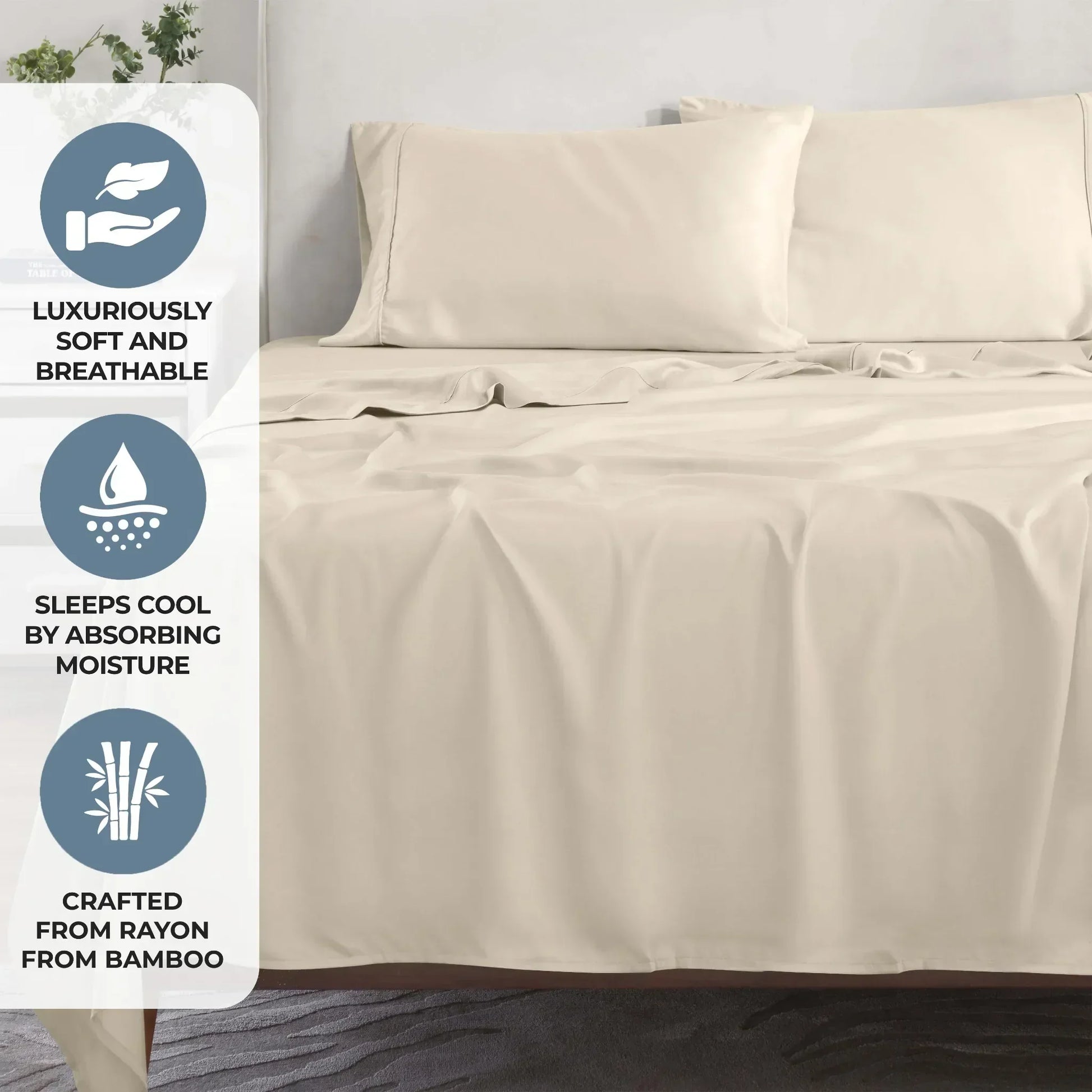 Crafted from premium rayon fibers derived from bamboo, these sheets offer a silky-smooth feel that is naturally soft, lightweight, and hypoallergenic, making them an excellent choice for those with sensitive skin or allergies.