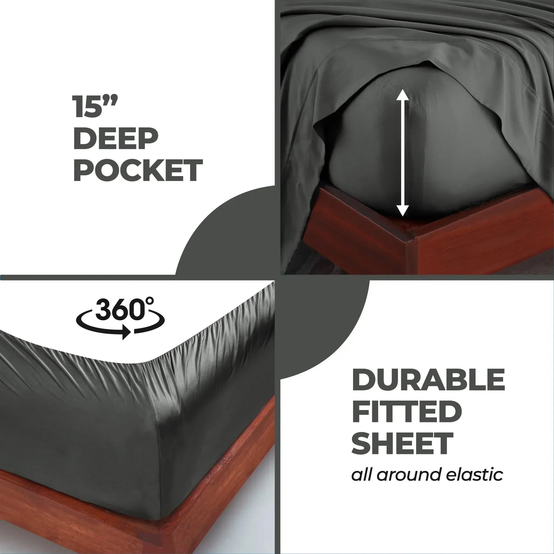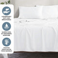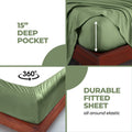 The breathable bamboo fabric naturally regulates temperature and wicks moisture away, ensuring a fresh and dry sleep environment even on hot or humid nights. Oversized and fitted with deep pockets to accommodate mattresses up to 18 inches thick, this set maintains a perfect, wrinkle-resistant fit night after night.