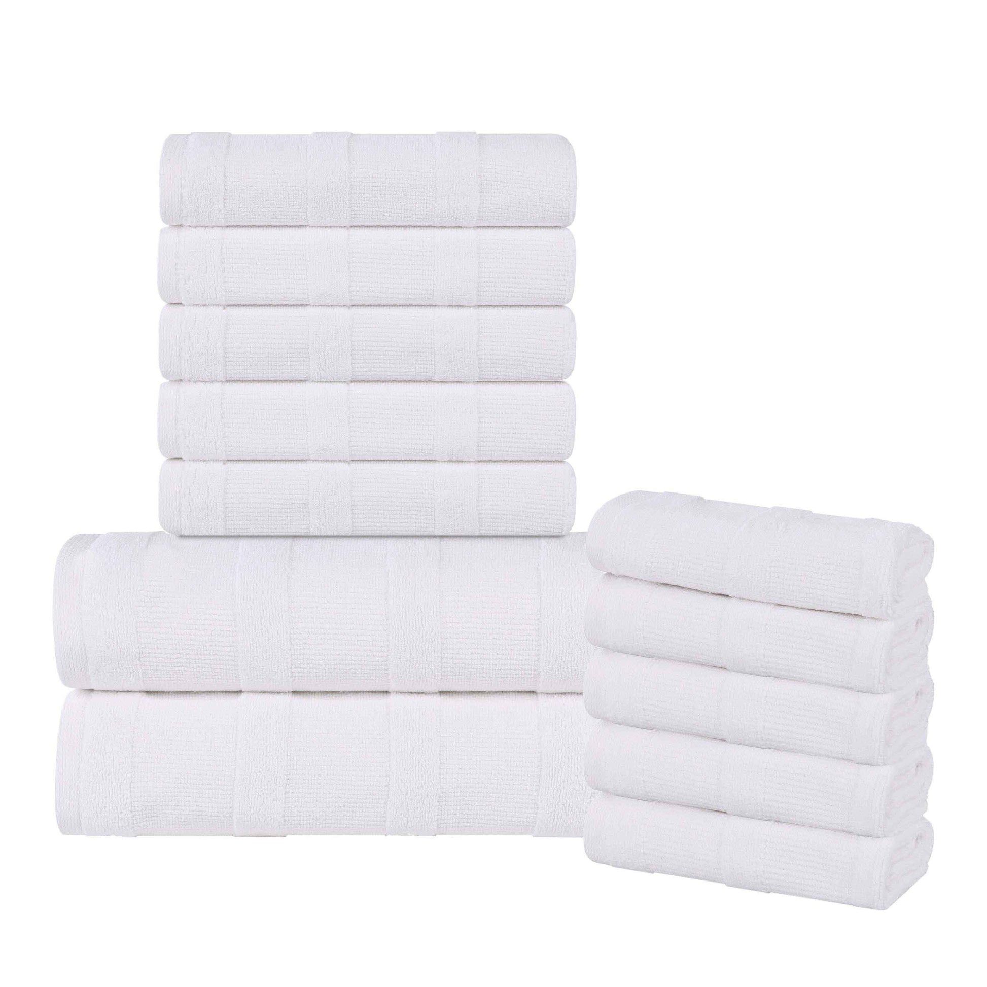 Upgrade your bath routine with the luxury and comfort of the Superior Roma Cotton Ribbed 12 Piece Assorted Towel Set. Crafted from naturally soft cotton, each towel is soft on your skin and highly absorbent to keep you warm and dry after you step out of the shower or bath. The medium towel weight gives each towel a lofty feel to transform your bathroom into a personal spa. Featuring a ribbed high-low design that is fluffy and quick drying, this bathroom towel set is perfect for everyday use.