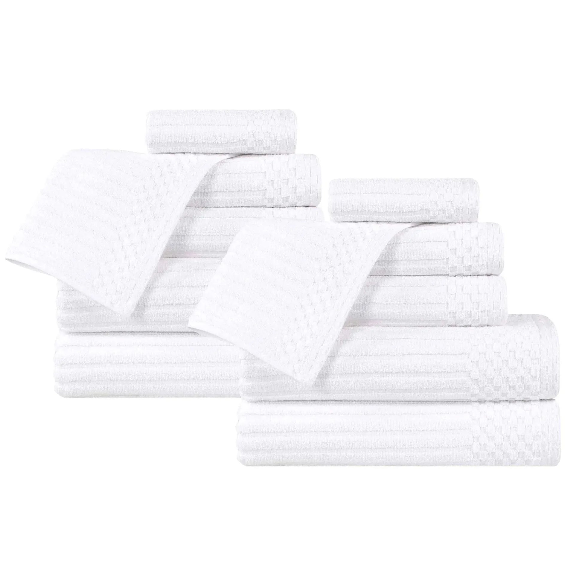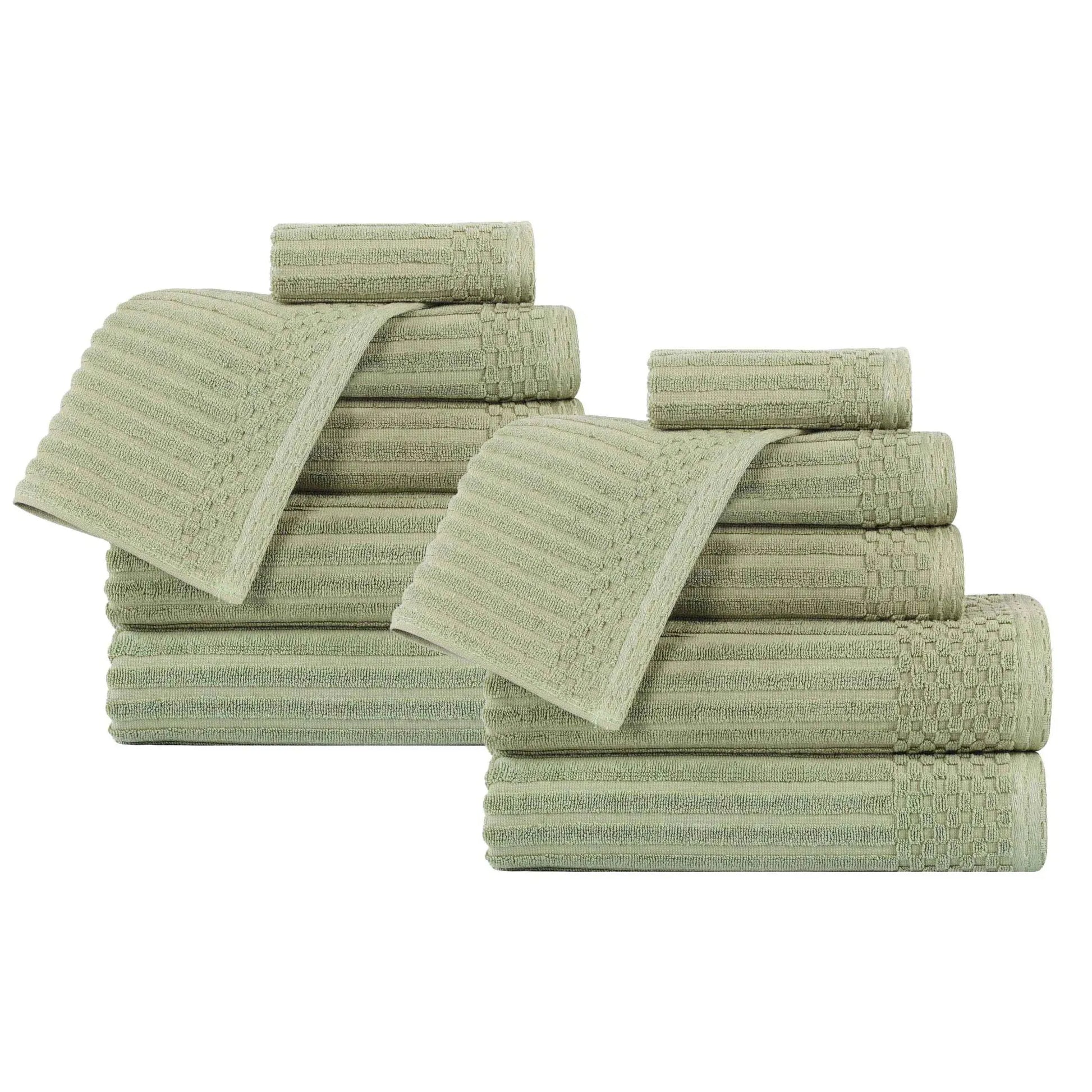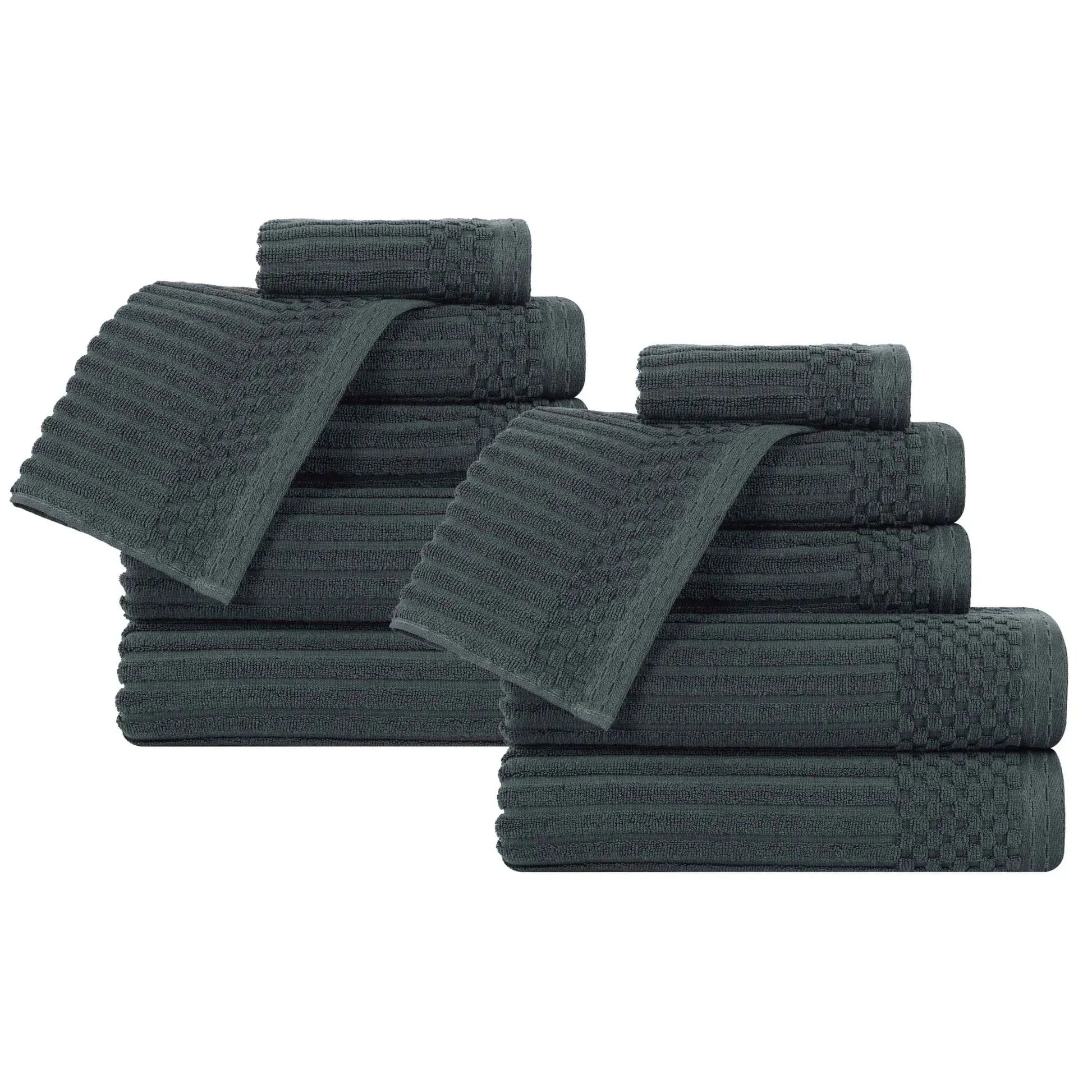 Soho Ribbed Cotton Absorbent Medium Weight 12 Piece Towel Set