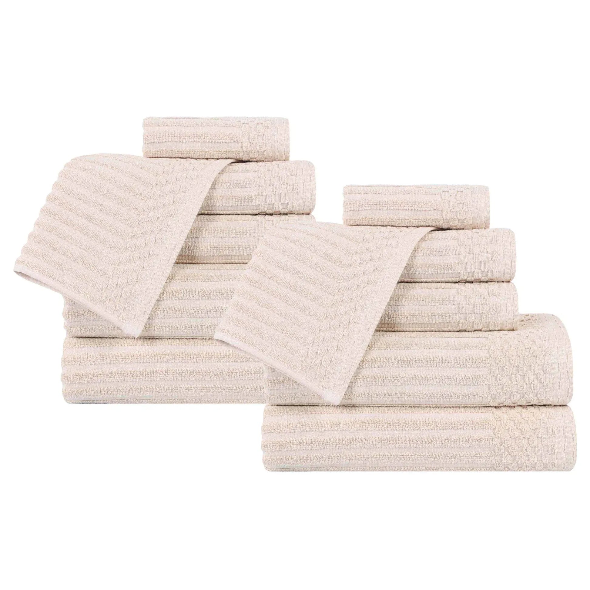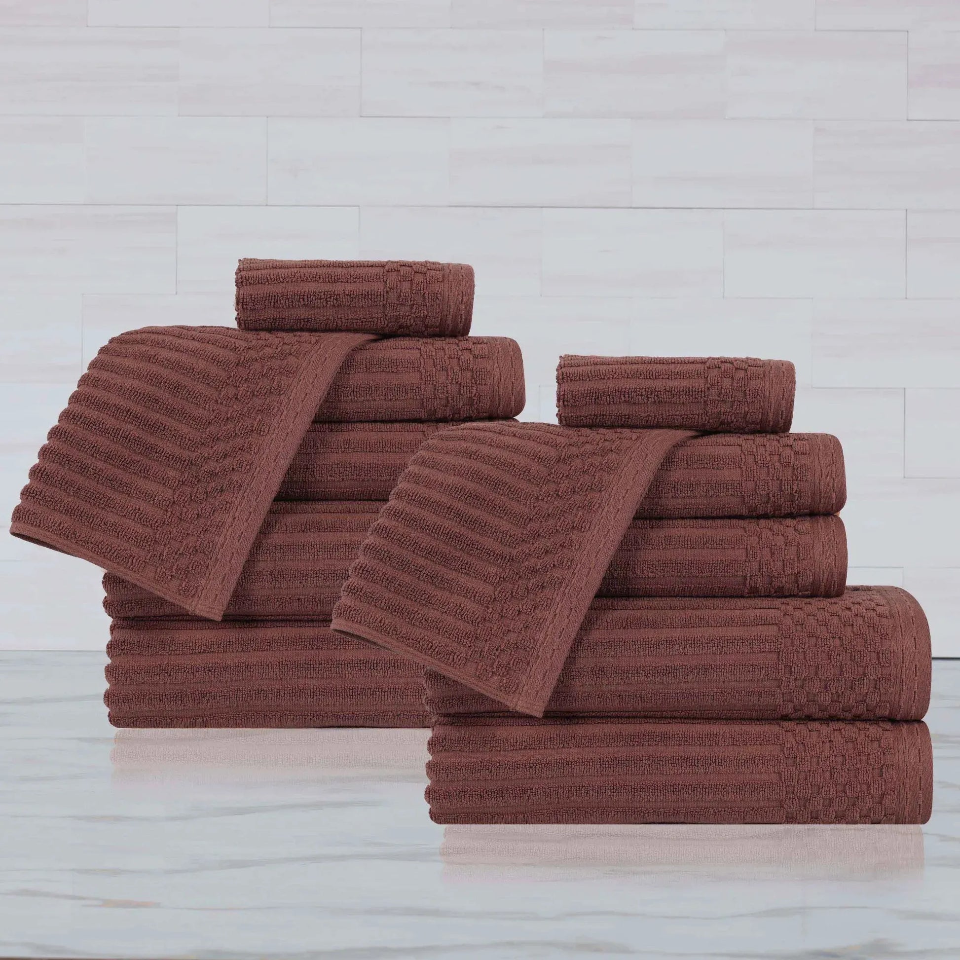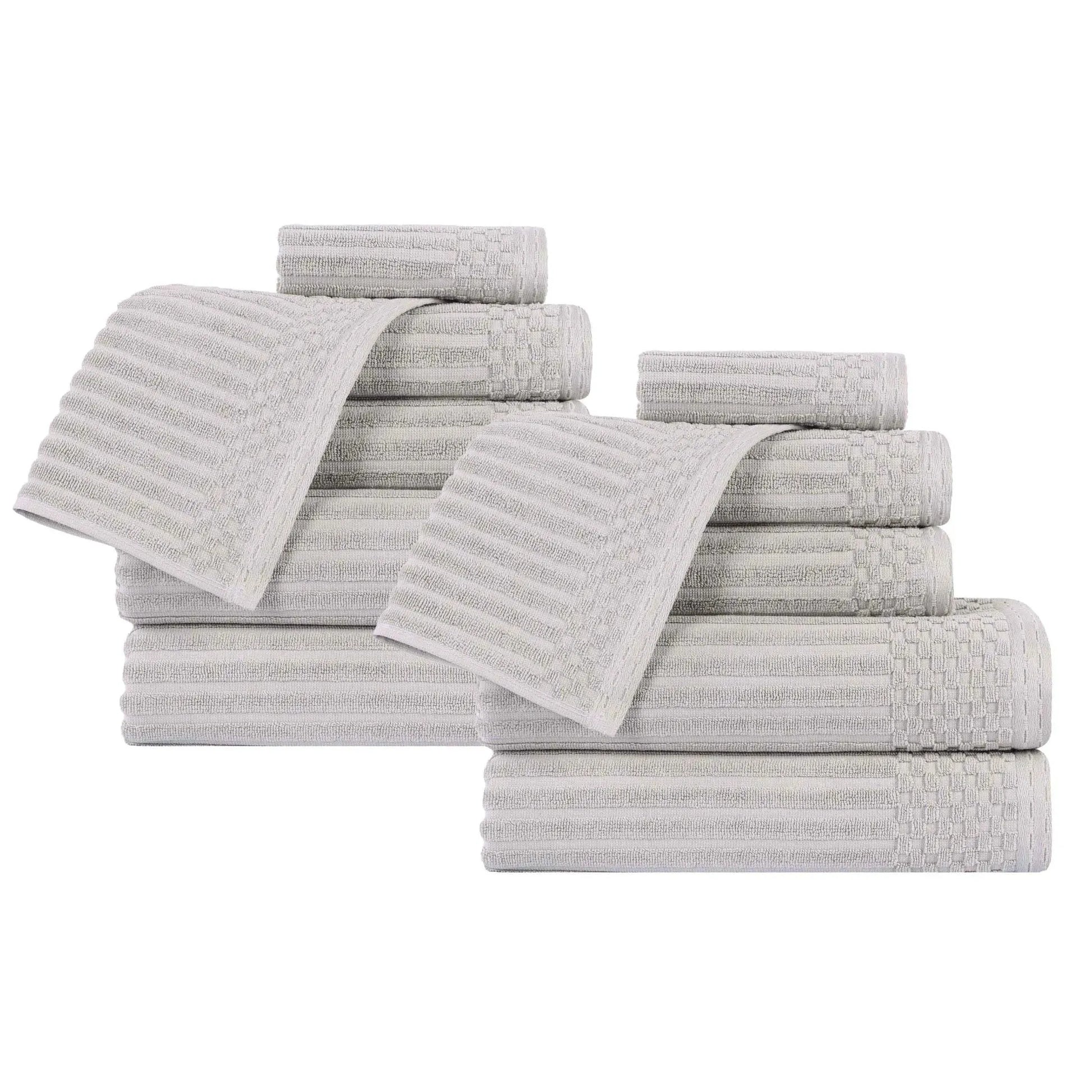 Soho Ribbed Cotton Absorbent Medium Weight 12 Piece Towel Set