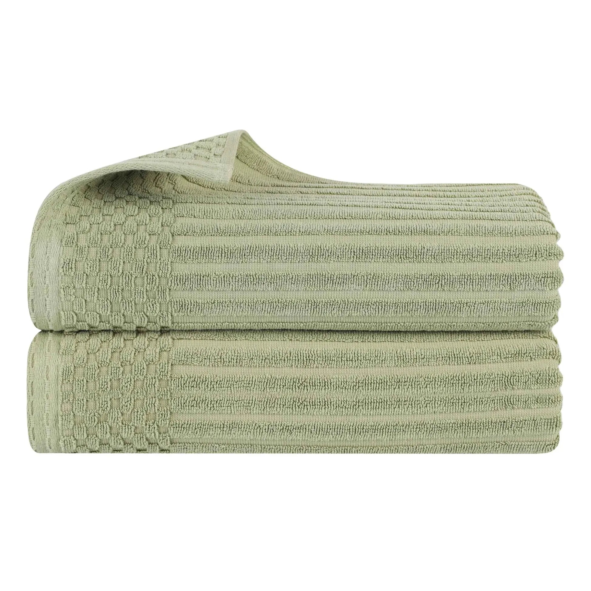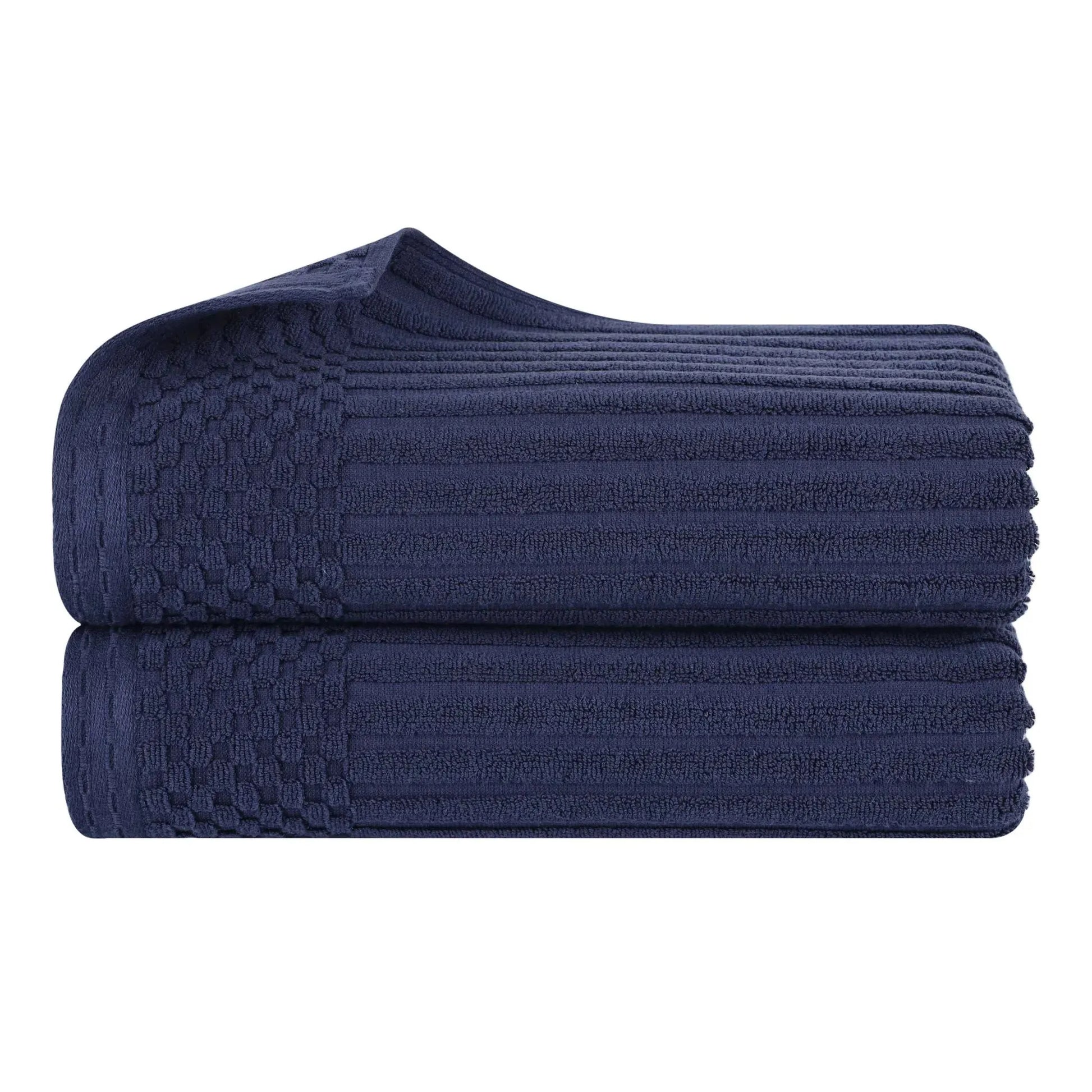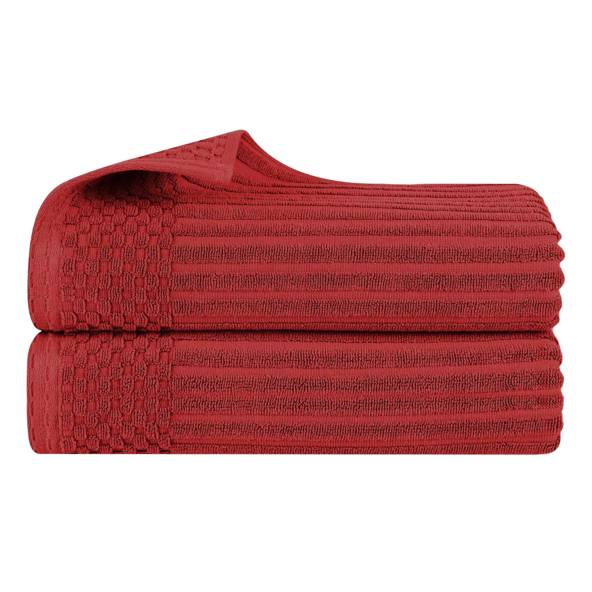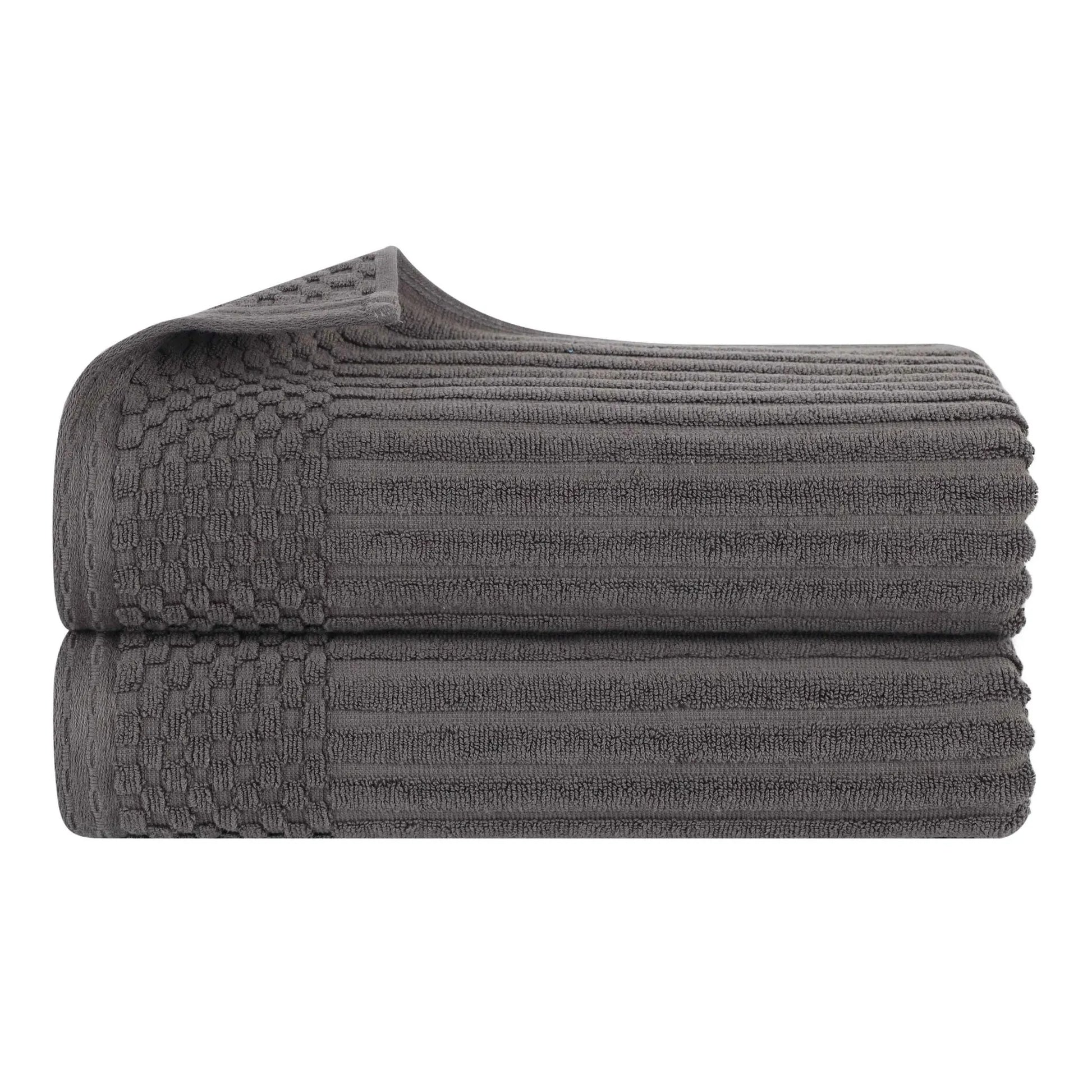 Bring your bathroom back to life with the Ribbed Textured Cotton Bath Sheet Ultra-Absorbent Towel Set. The ribbed texture features a checkered pattern along the border of the towel that will effortlessly make a stylish statement and wow your guests. Each towel is made with a singly-ply construction to ensure that you will get dried quickly and comfortably after each use. The towel is crafted with premium quality Cotton which will withstand many washes. This incredibly soft towel set includes two bath sheets in an assortment of solid colors to match any modern or transitional style.