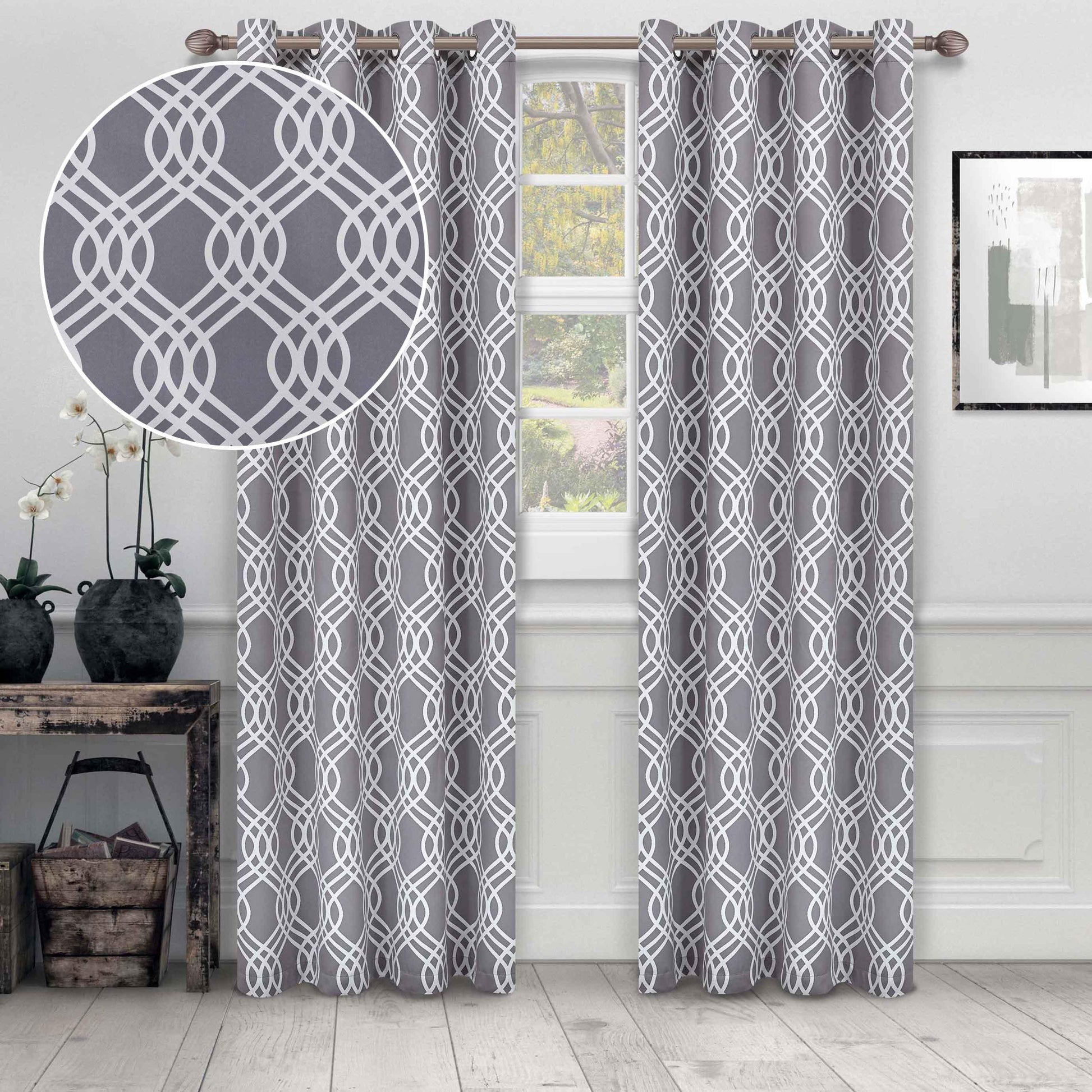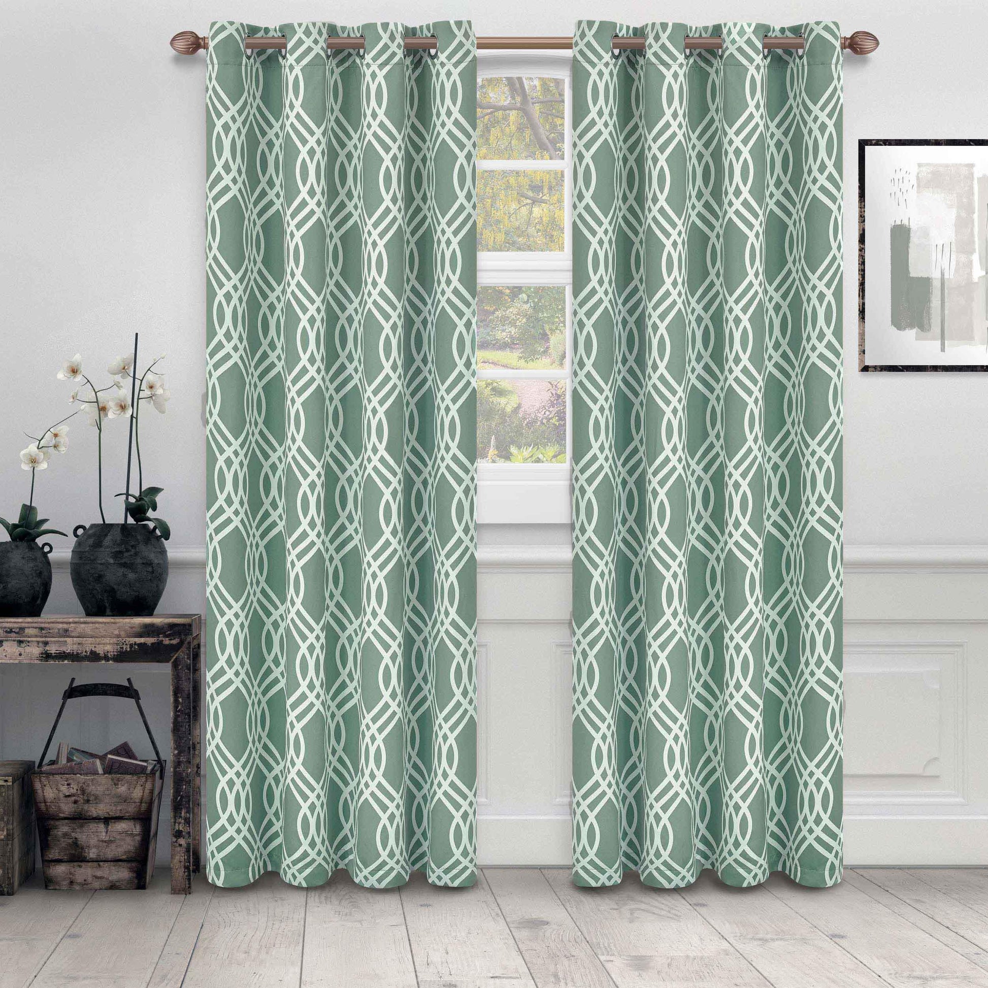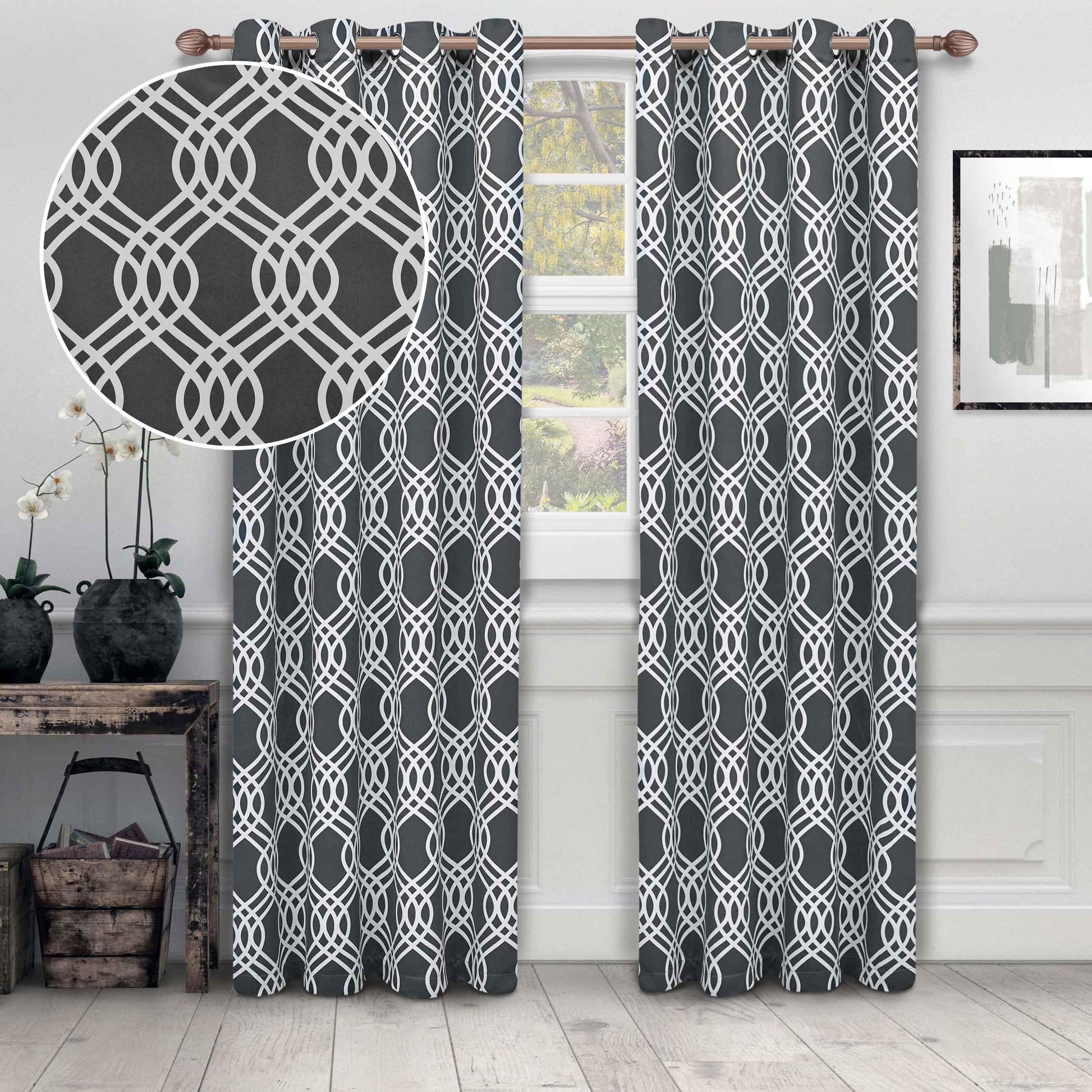 Ribbon Trellis Washable Room Darkening Blackout Curtains, Set of 2