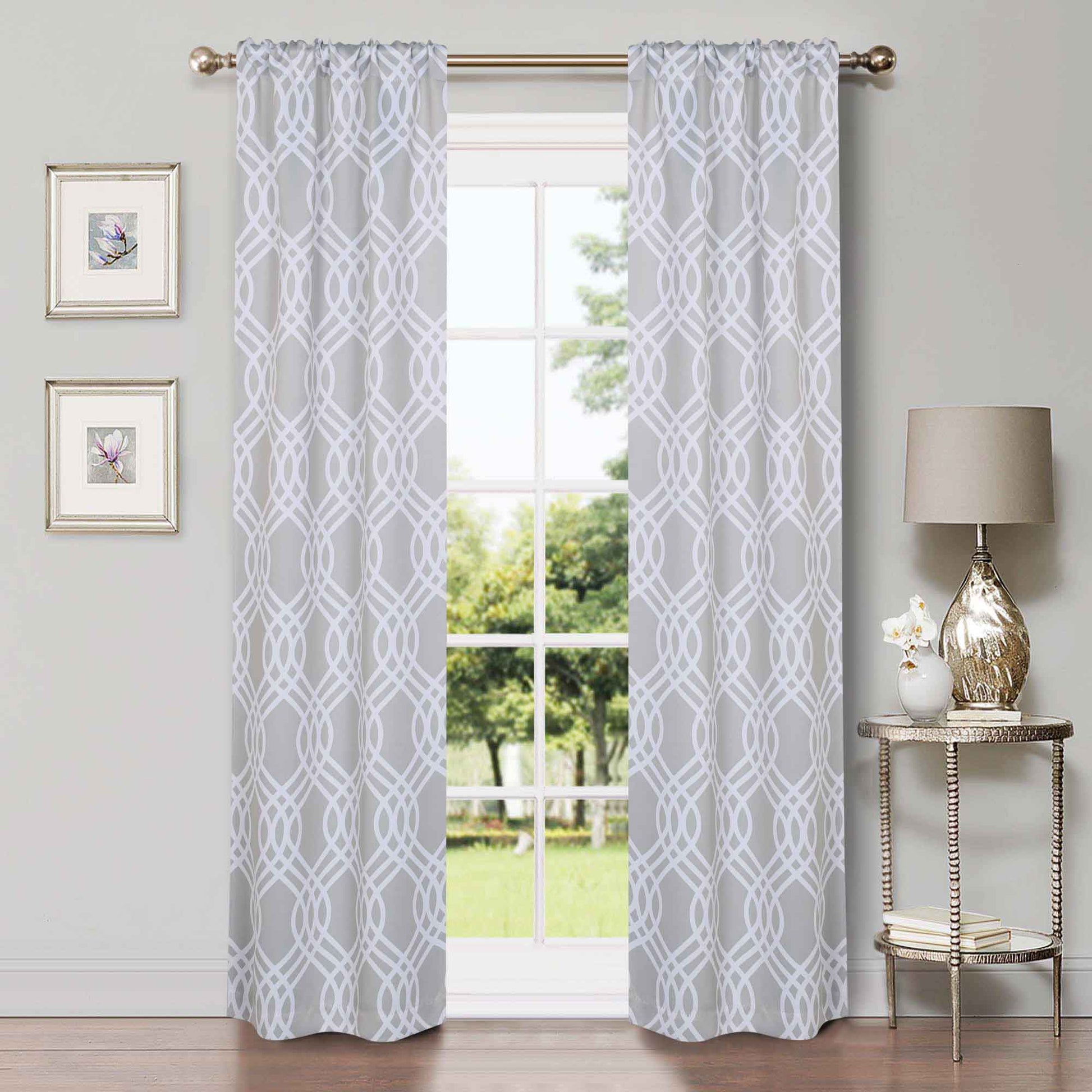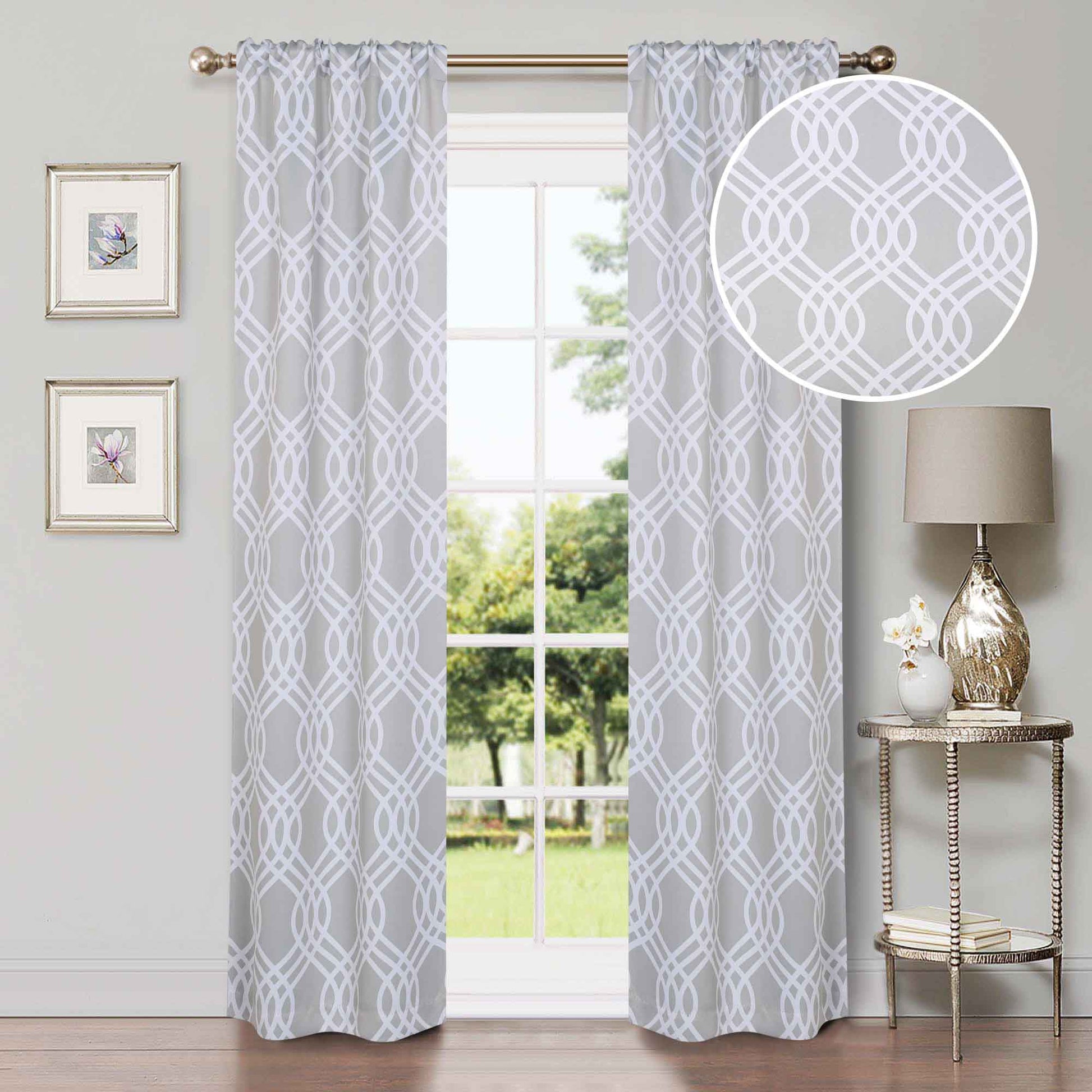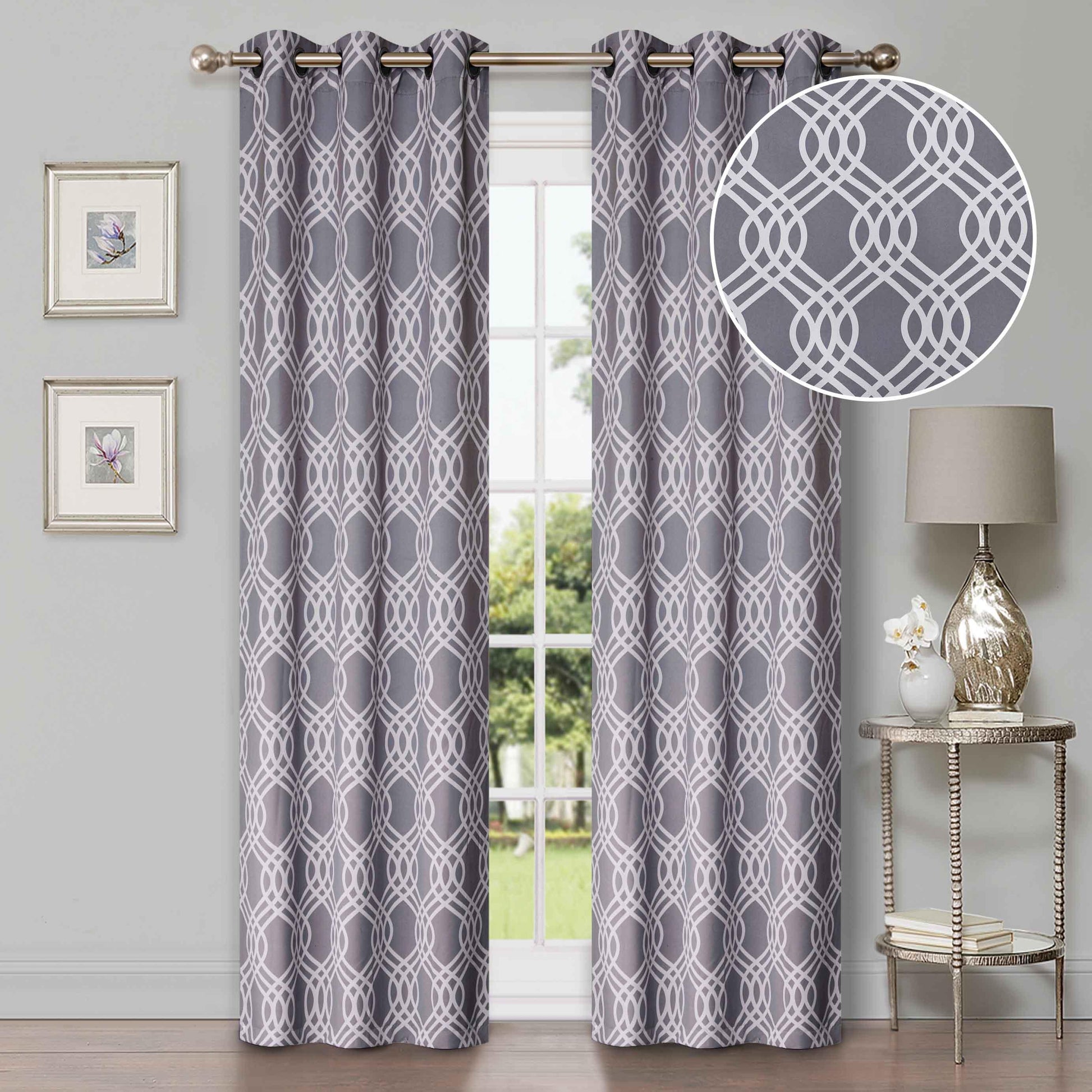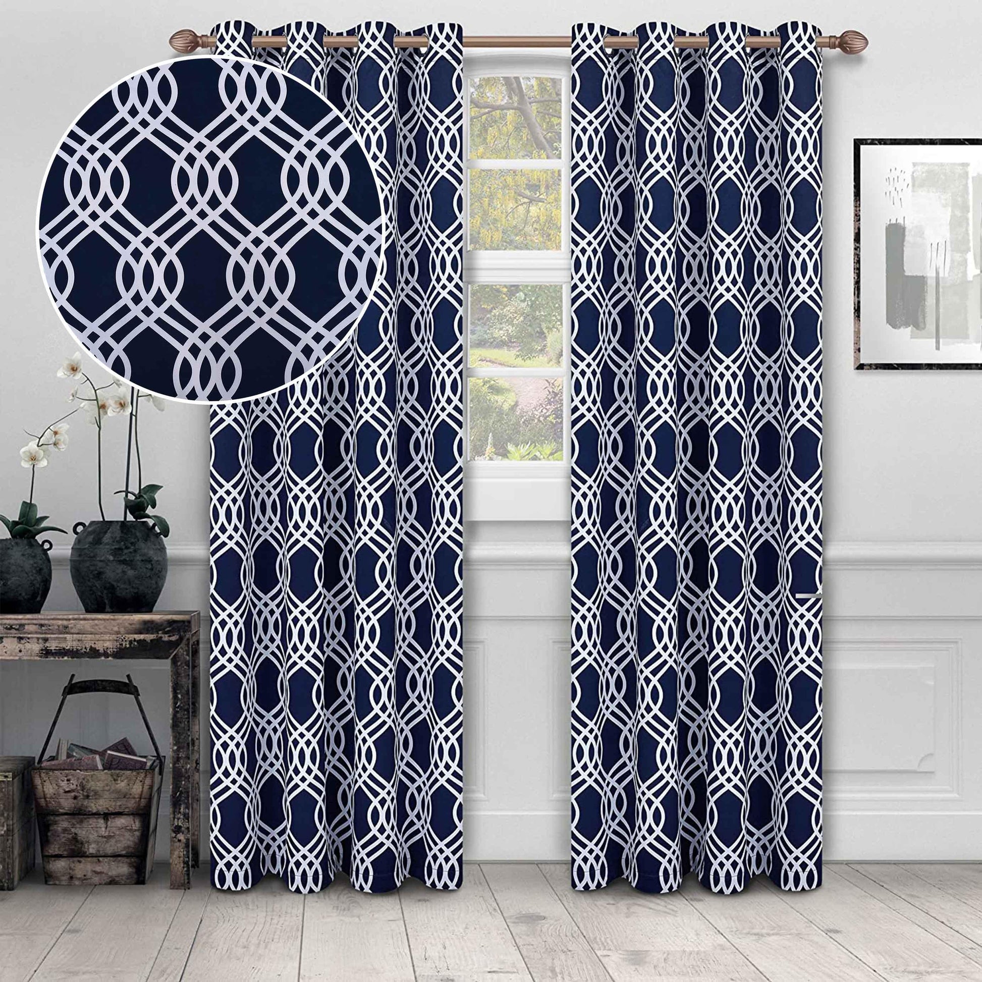 Ribbon Trellis Washable Room Darkening Blackout Curtains, Set of 2