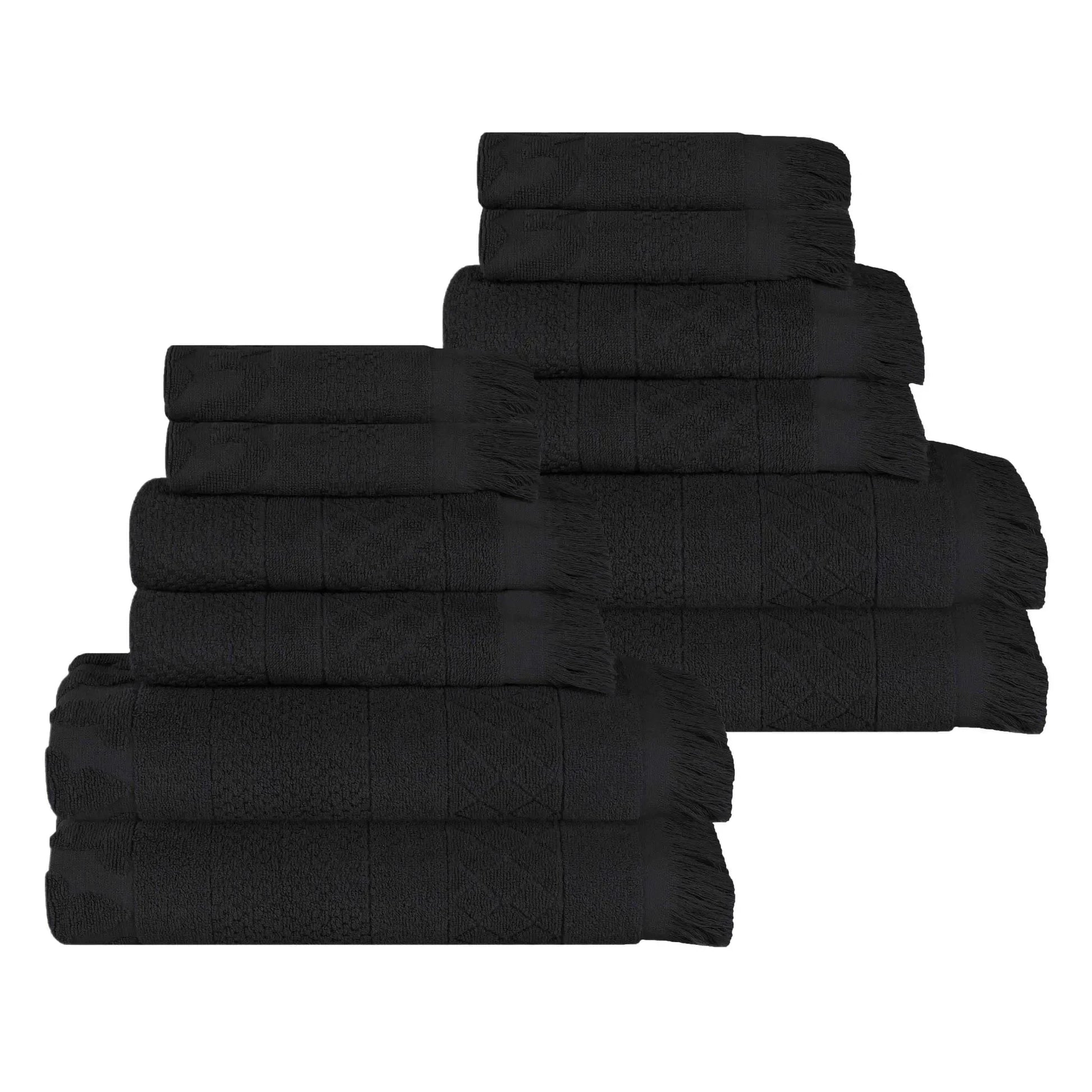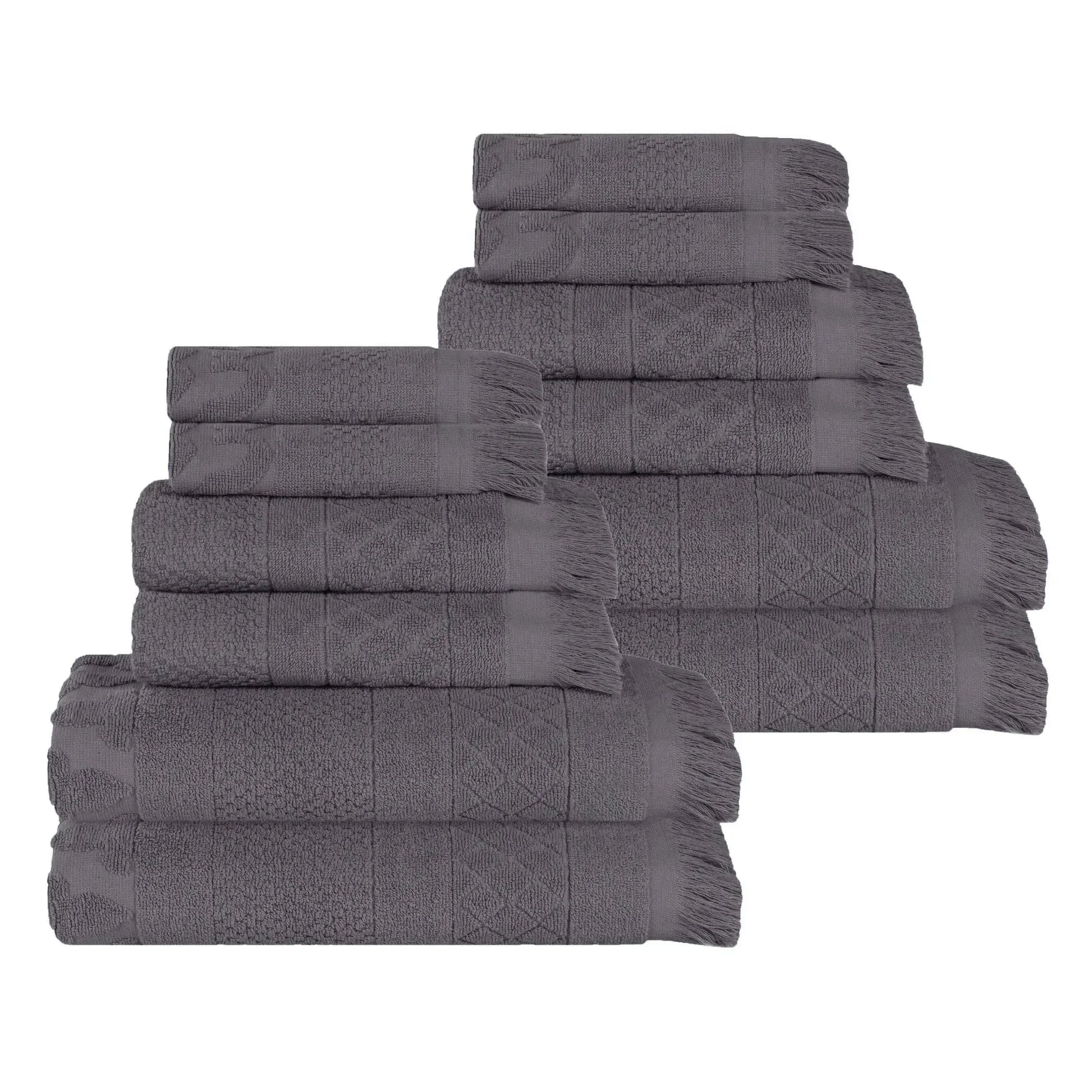 Rolla Cotton Geometric Jacquard Plush Soft Absorbent 12 Piece Towel Set