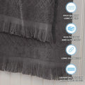 Elevate your home essentials to new heights of versatility and luxury with the Superior Rolla Cotton Geometric Jacquard Plush Soft Absorbent 12 Piece Towel Set. These Cotton towels are crafted for a soft, absorbent, and luxurious experience. Boasting a geometric pattern with frayed edges, bring unique style to your guest or master bathroom with this bundle. Each towel is finished with a durable single-ply to withstand countless washes and last you years to come. Featuring a hanging loop on each piece, enjoy both convenience and comfort with this versatile set.
