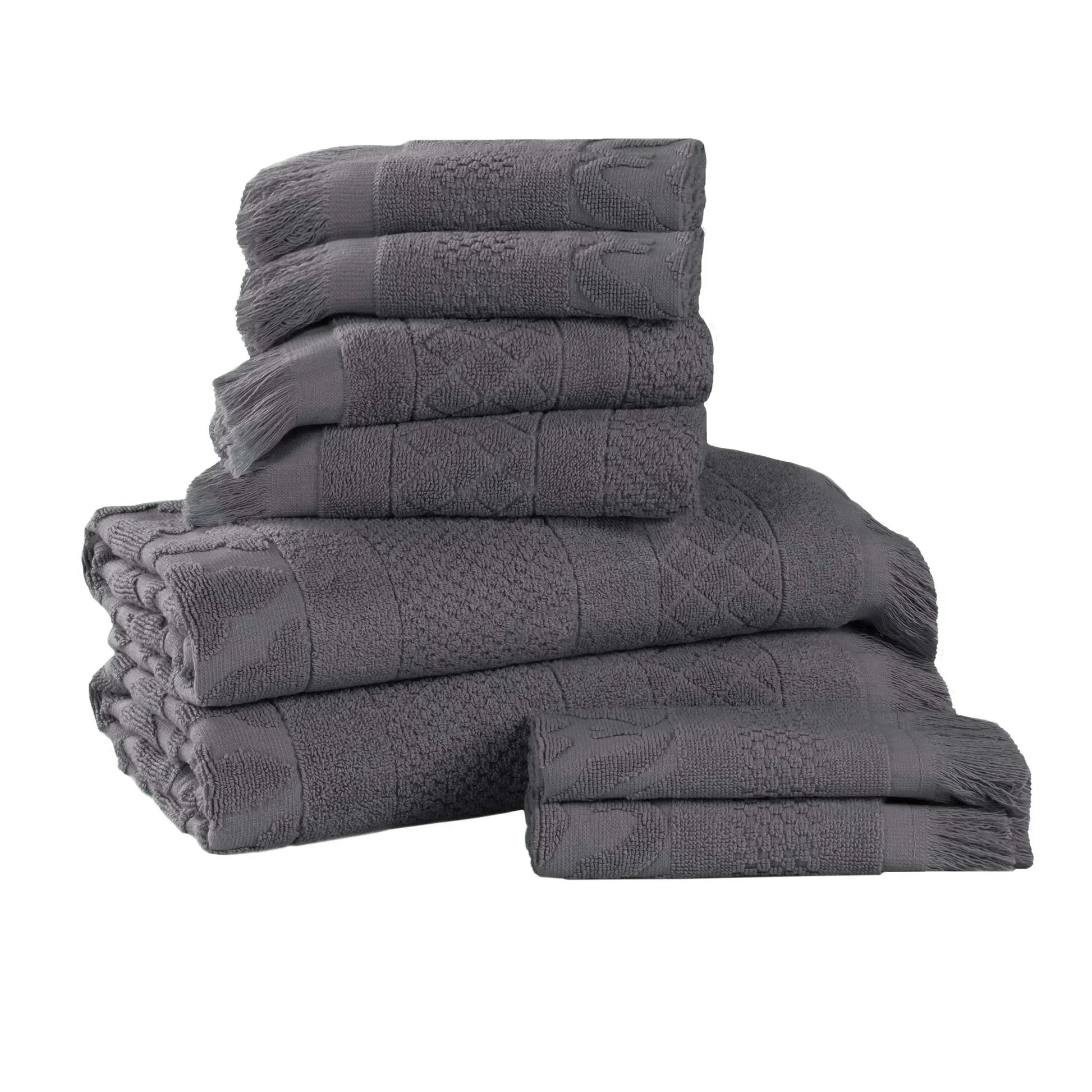 Rolla Cotton Geometric Jacquard Plush Soft Absorbent 8 Piece Towel Set