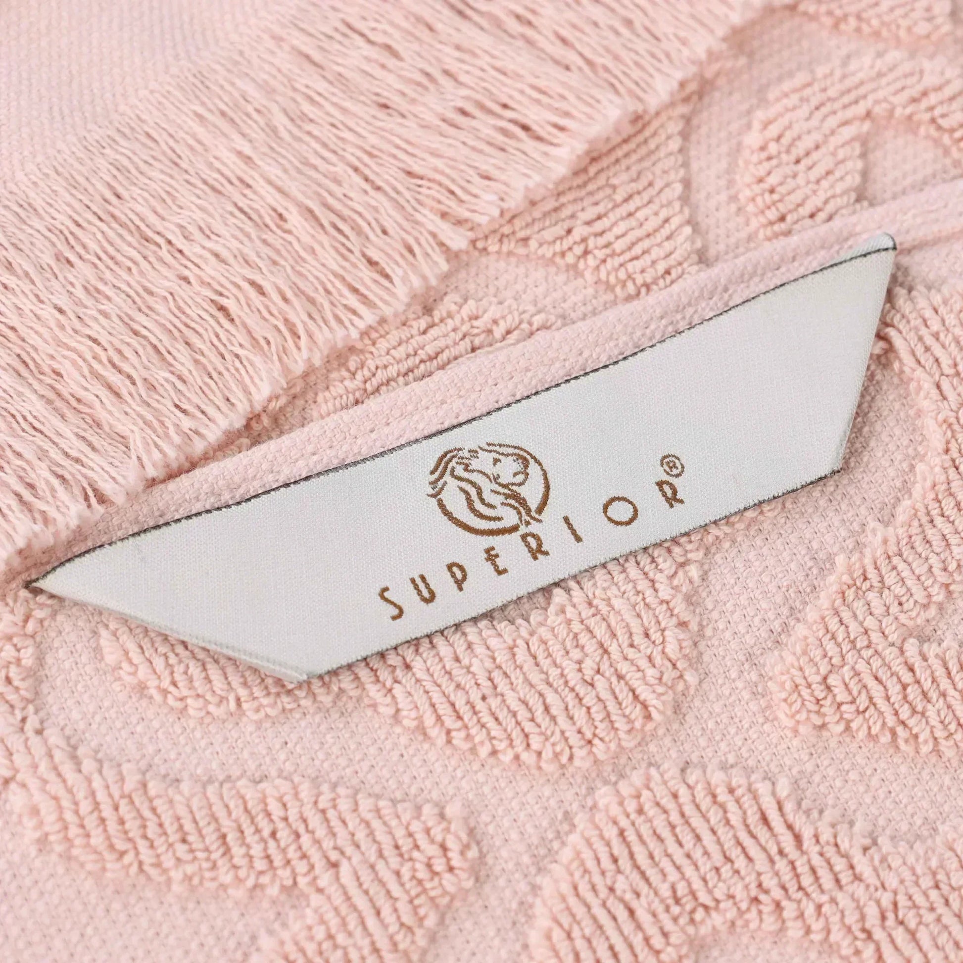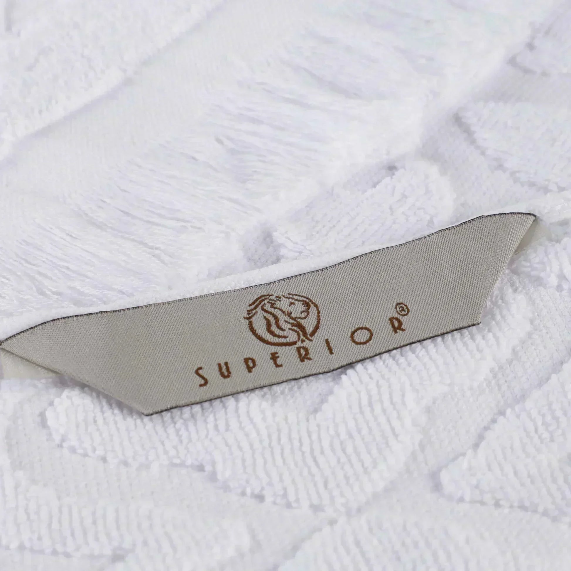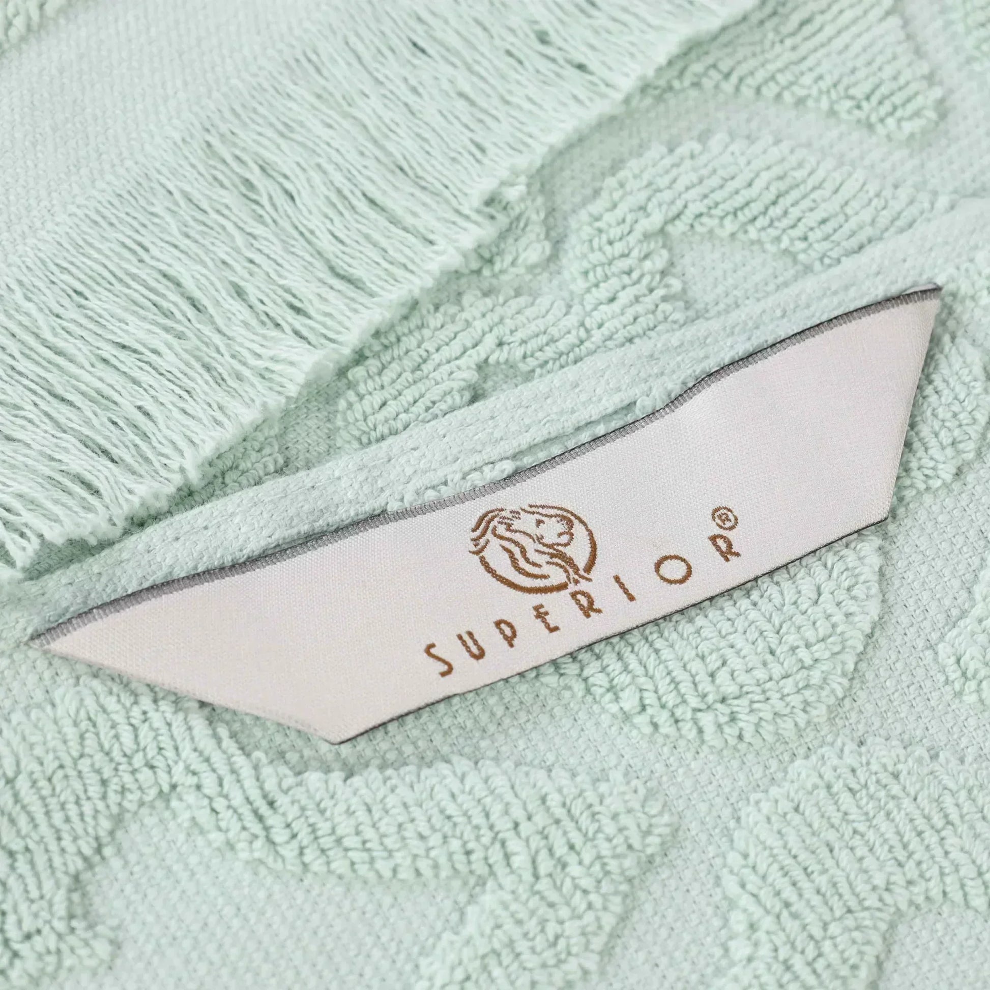 Effortlessly incorporate an aura of elegance into your bathroom routine with the captivating Superior Rolla Cotton Geometric Jacquard Plush Soft Absorbent 8 Piece Towel Set. These Cotton towels are crafted for a soft, absorbent, and luxurious experience. Boasting a geometric pattern with frayed edges, bring unique style to your guest or master bathroom with this bundle. Each towel is finished with a durable single-ply to withstand countless washes and last you years to come. Featuring a hanging loop on each piece, enjoy both convenience and comfort with this versatile set.