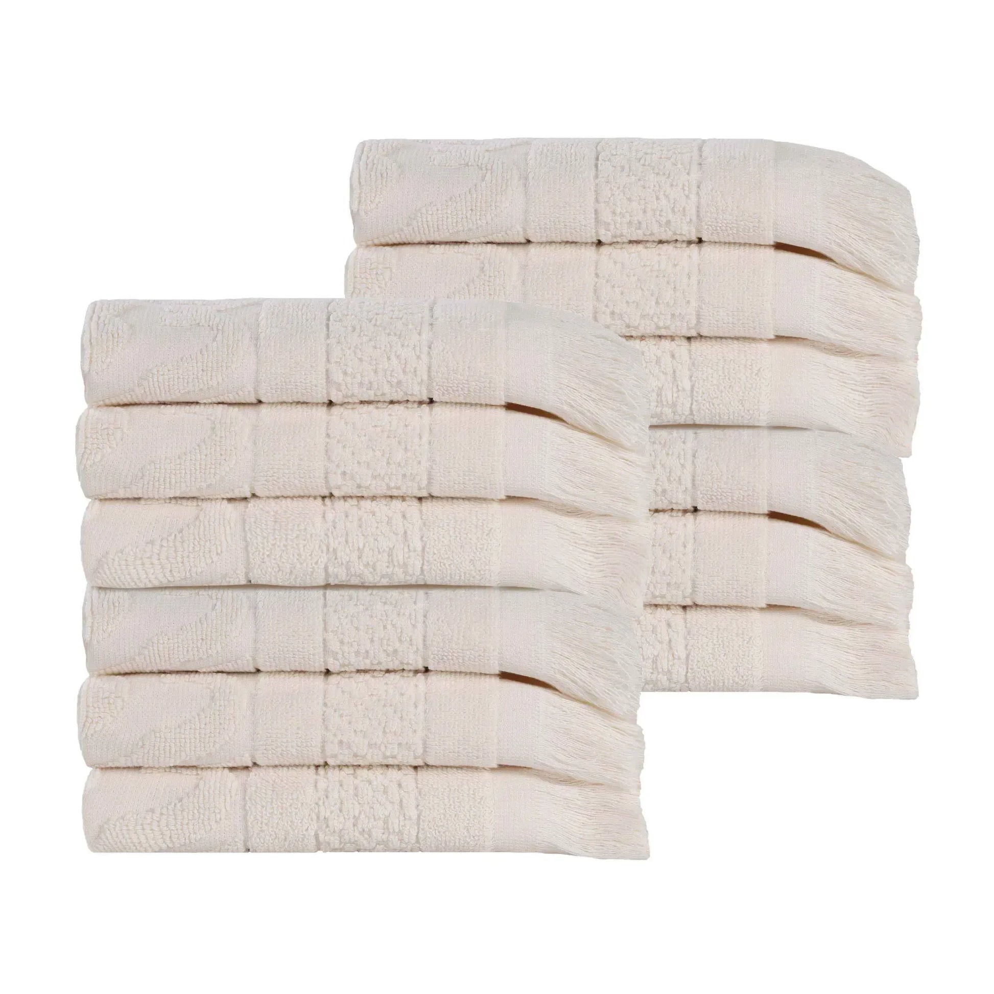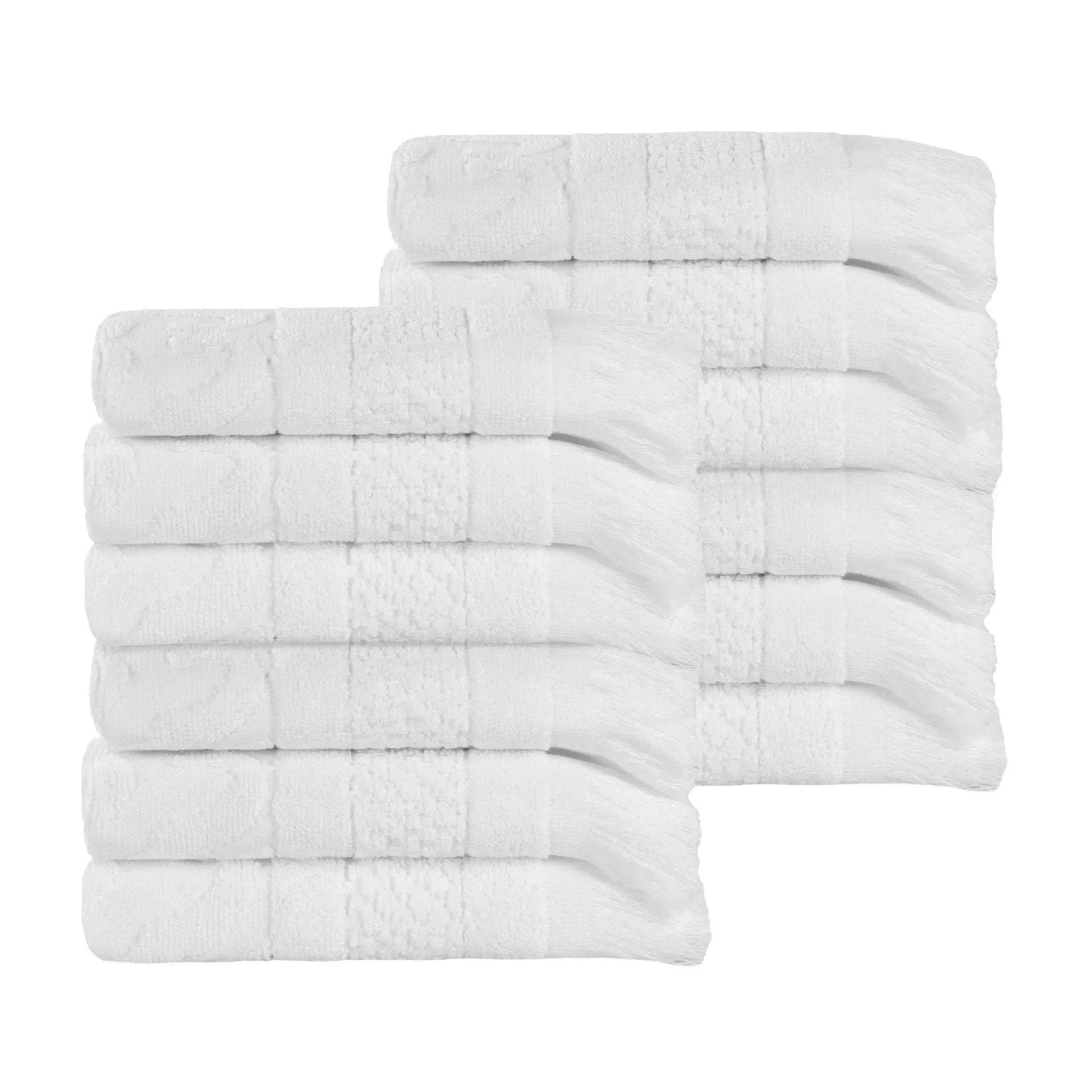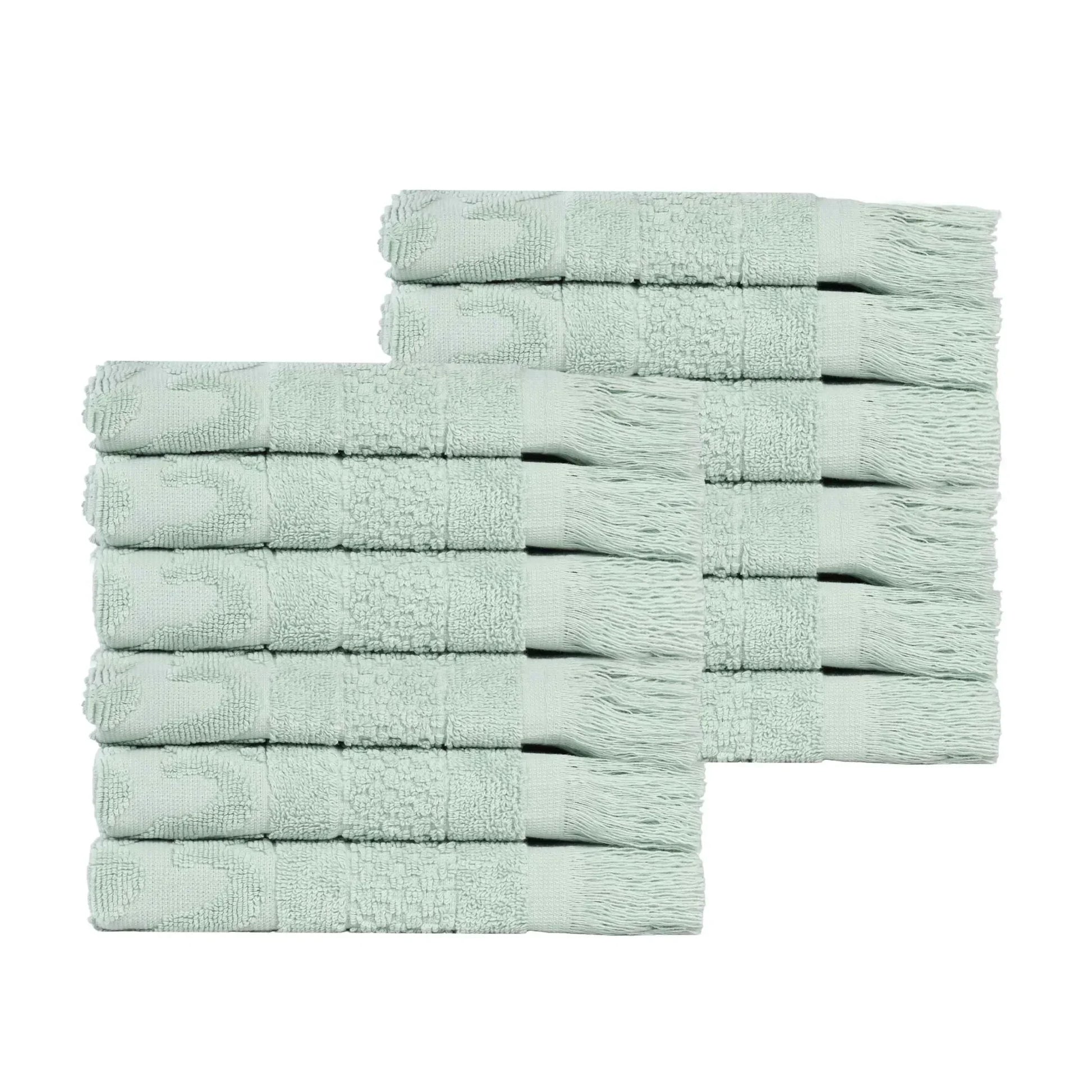 Rolla Cotton Geometric Jacquard Plush Face Towel Washcloth Set of 12
