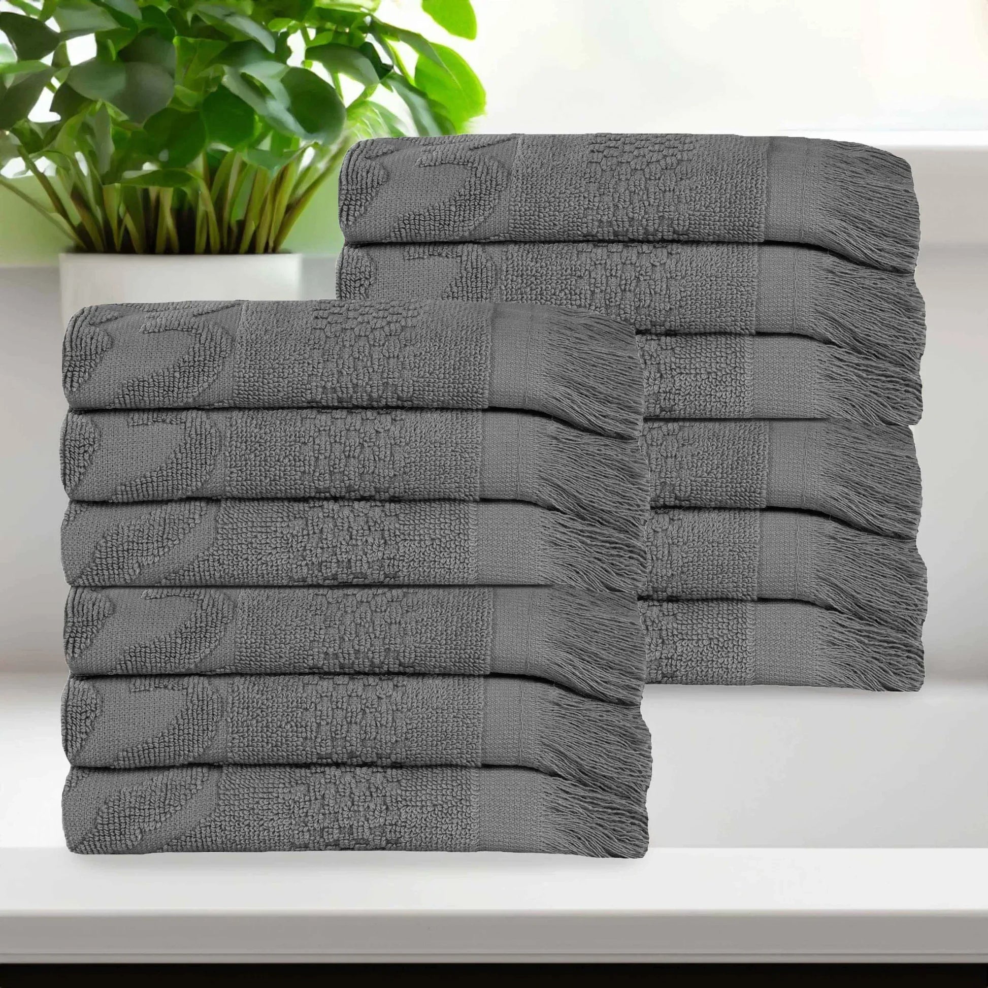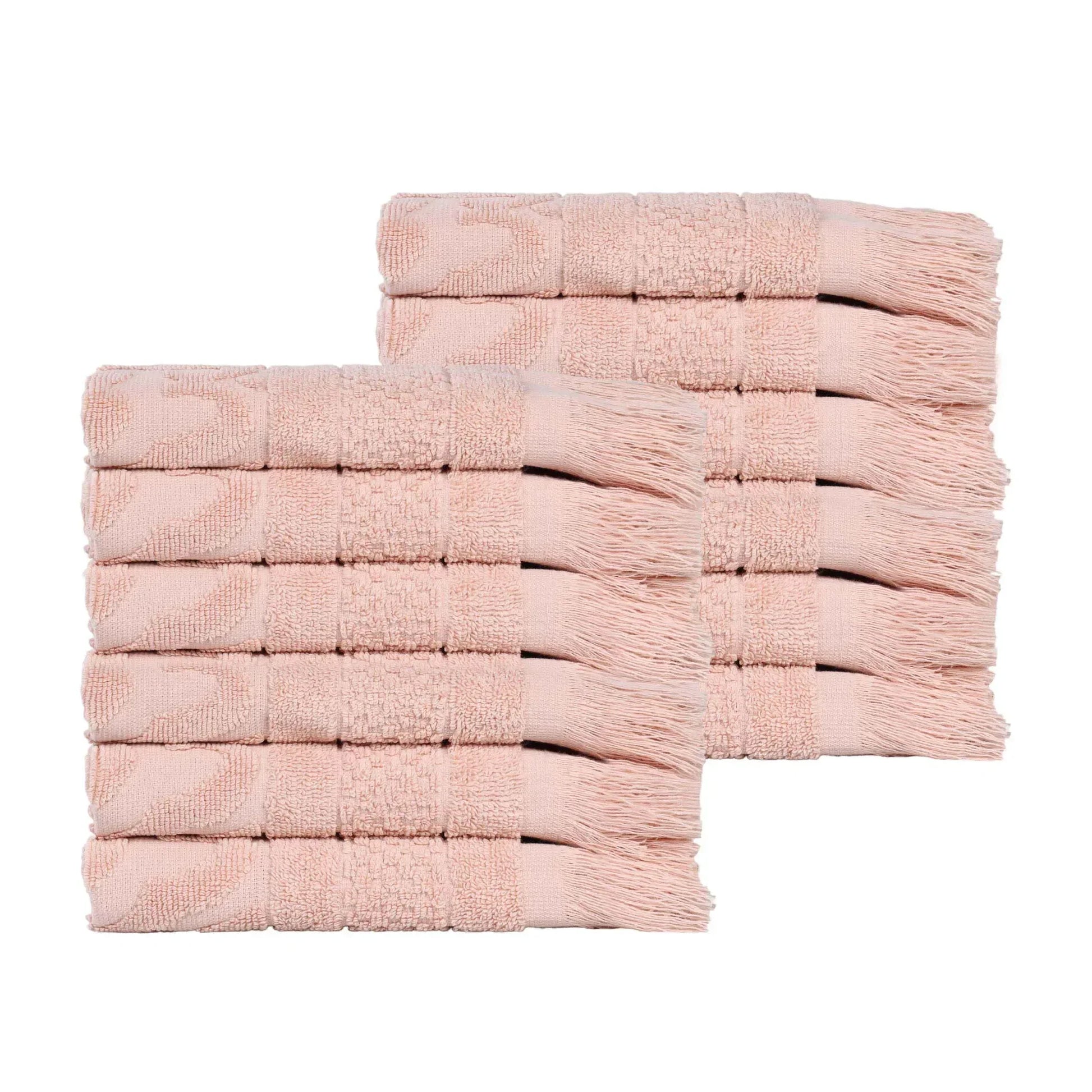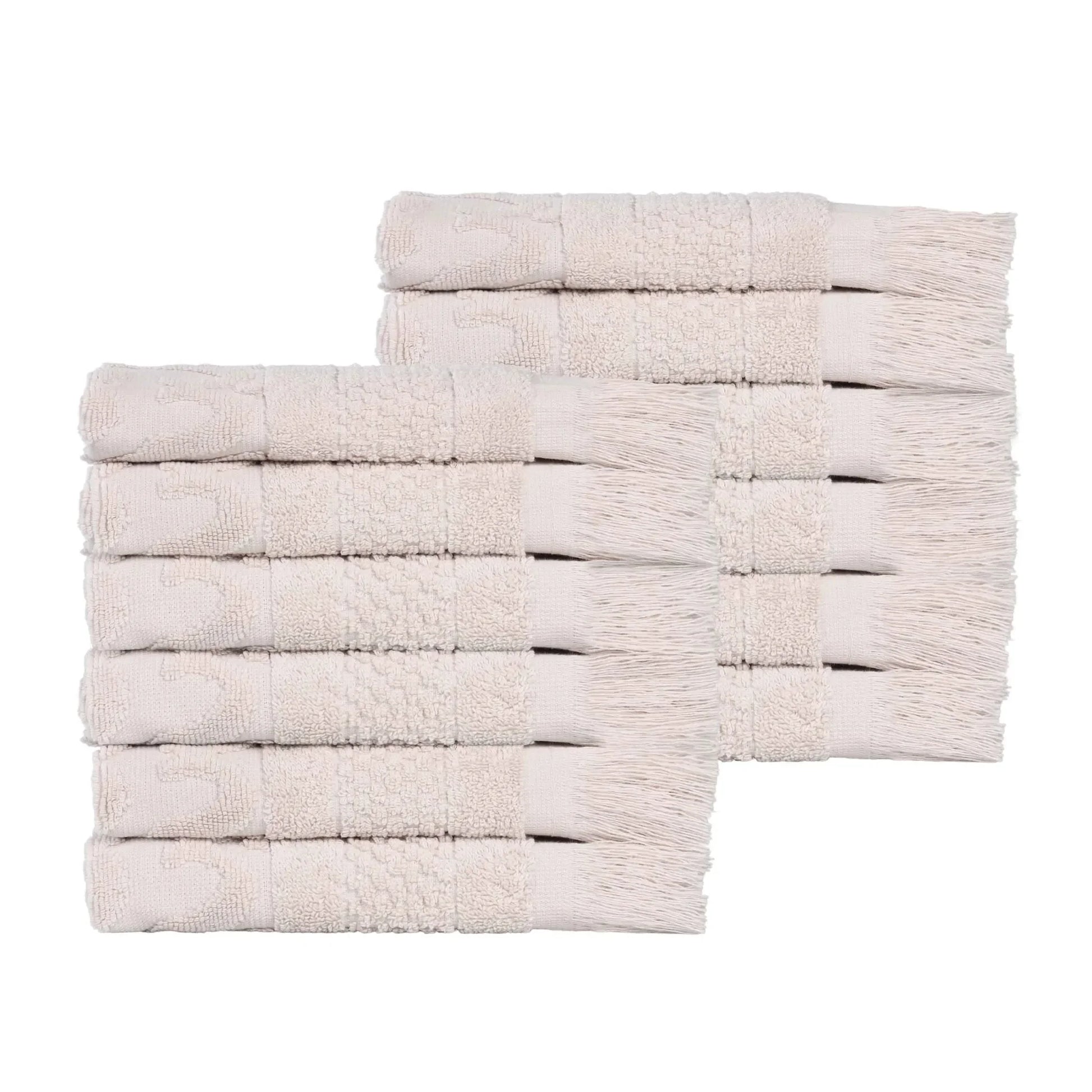 Rolla Cotton Geometric Jacquard Plush Face Towel Washcloth Set of 12