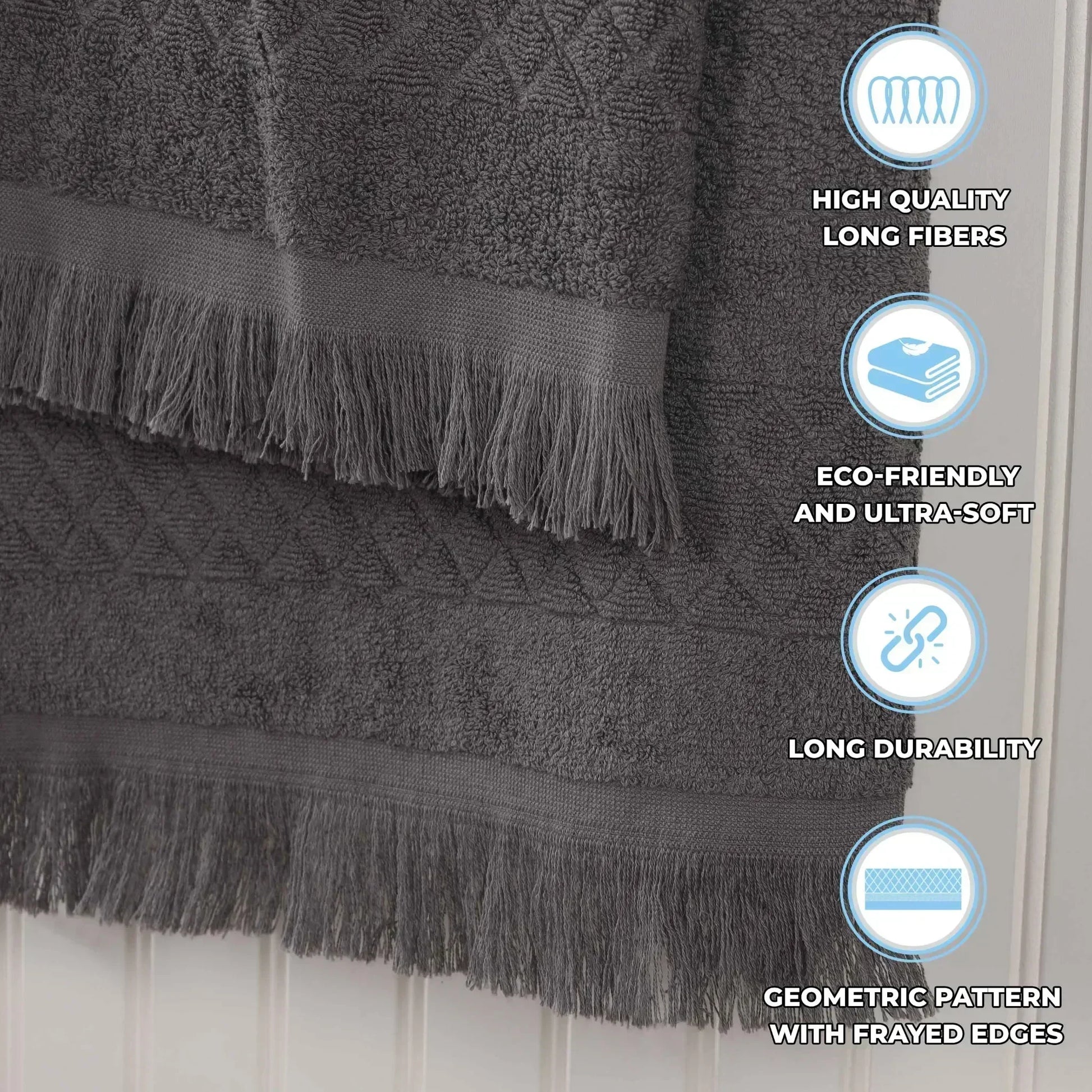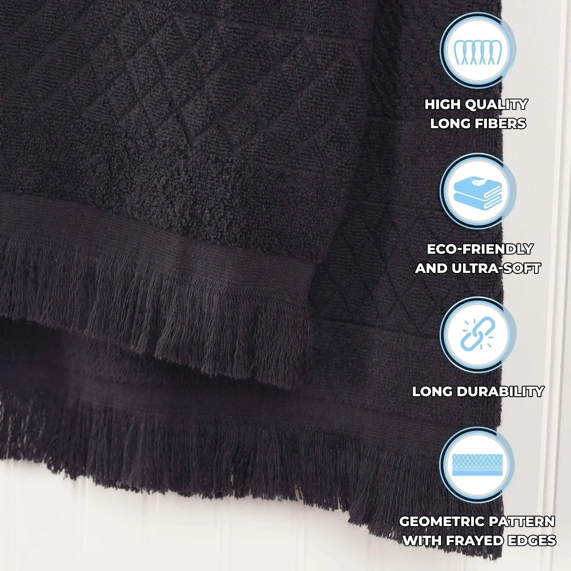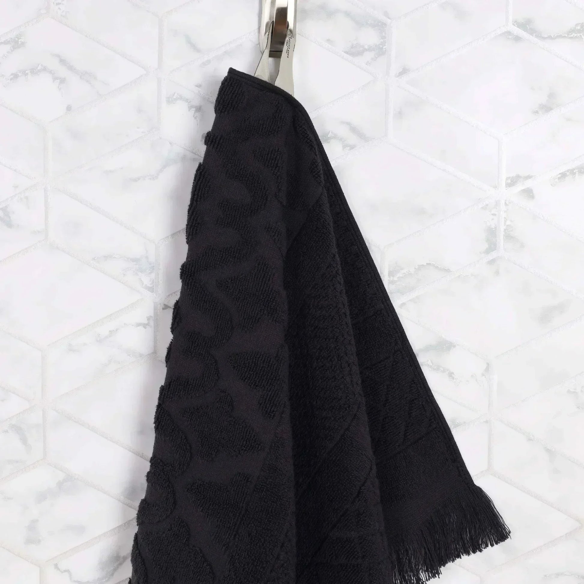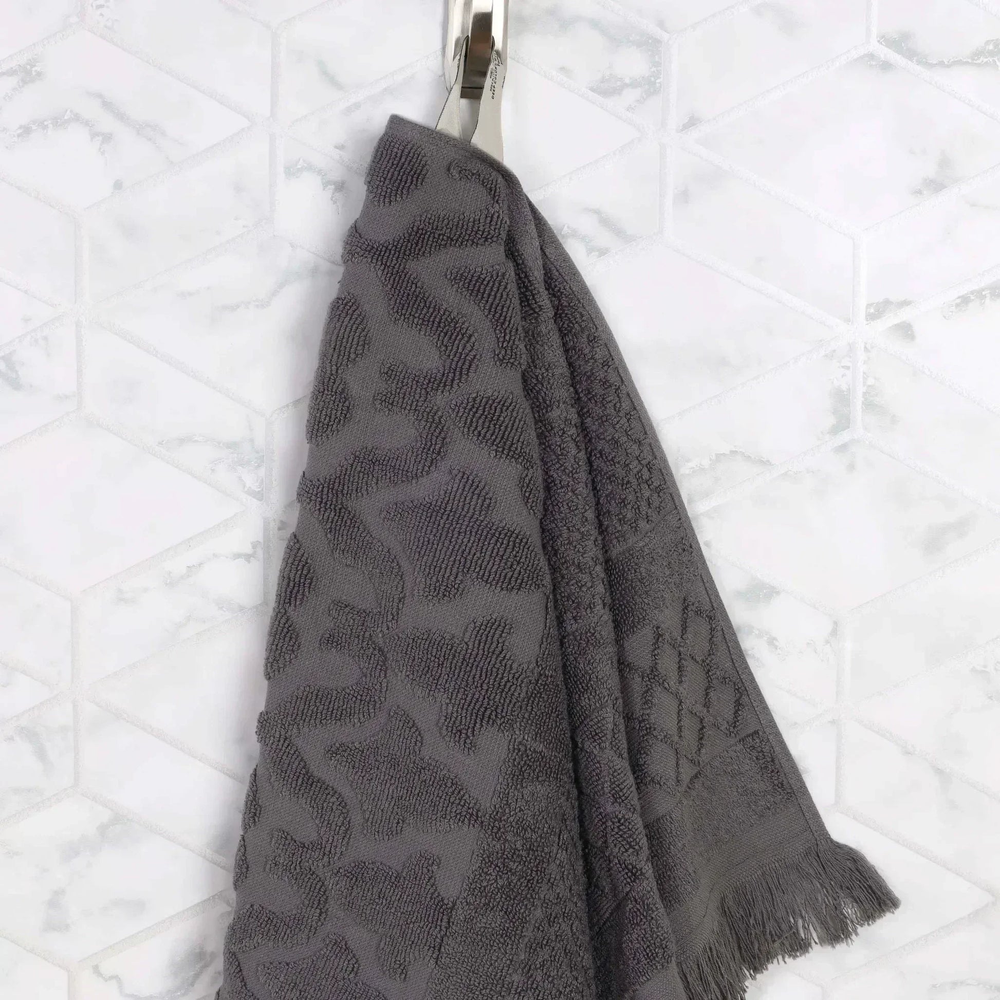 Seamlessly combine opulence and practicality with the lavish Superior Rolla Cotton Geometric Jacquard Plush Soft Absorbent Hand Towel Set of 6. These Cotton towels are crafted for a soft, absorbent, and luxurious experience. Boasting a geometric pattern with frayed edges, bring unique style to your guest or master bathroom with this bundle. Each towel is finished with a durable single-ply to withstand countless washes and last you years to come. Featuring a hanging loop on each piece, enjoy both convenience and comfort with this versatile set.