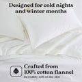 - Additional Information: Elevate your style with the distinctive look of Cotton Flannel fabric – a warm, wrinkle-resistant choice that exudes comfort. Naturally soft to the touch and gets softer with each wash; Insulating and breathable to keep you warmer and more comfortable when the temperature drops. Available in Standard and King sizes to perfectly fit your bed.
