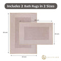 Impress your guests with the modern-styled and essential Rome Non-Slip Bath Mat Set. These practical, durable, and machine washable rugs are everything you want to complete your home bathrooms. Offering more than just a soft surface, these modern-styled rugs will surely bring an elegant touch to any bathroom or kitchen decor. Made of Nylon fibers over a non-slip latex backing, this set can withstand high foot traffic, fit conveniently under most doors, and easily be rolled or folded for storage. Invest in this bath mat set to elevate your home decor, available in sets of 2 pieces and your color choice of Taupe/ Grey, Cream/ Mauve, or Tan/ Mauve.
