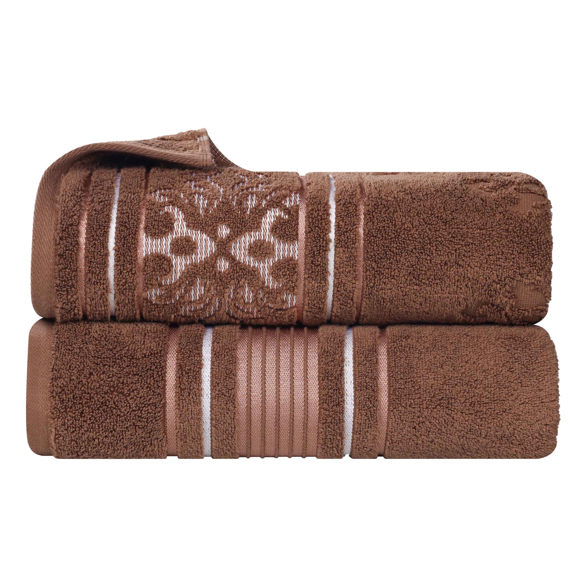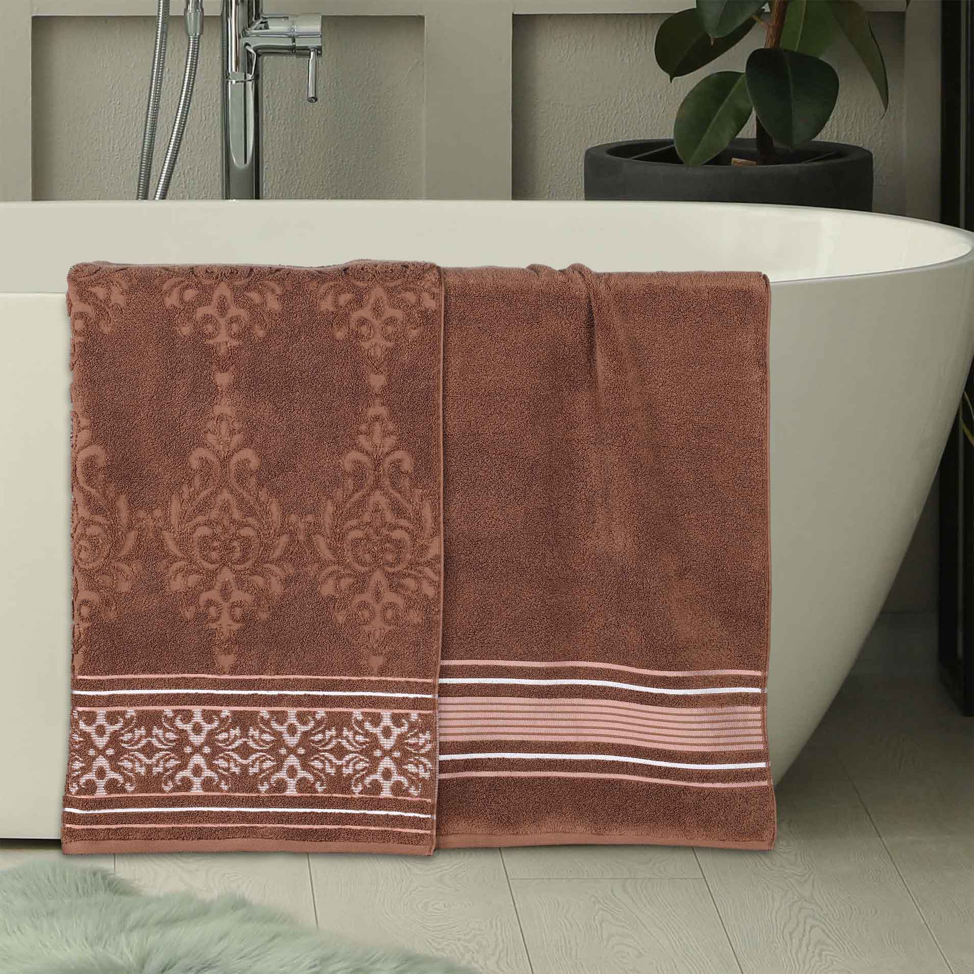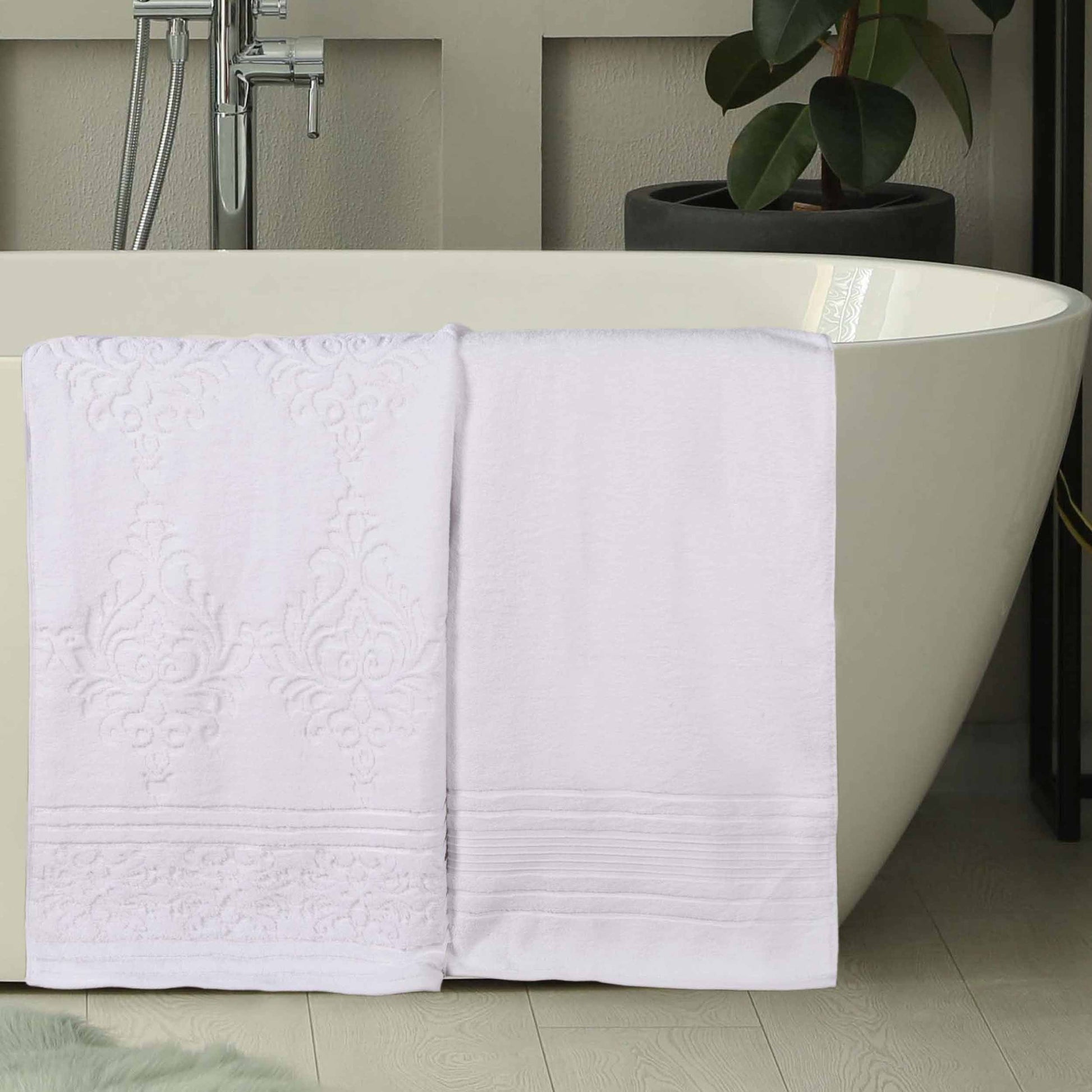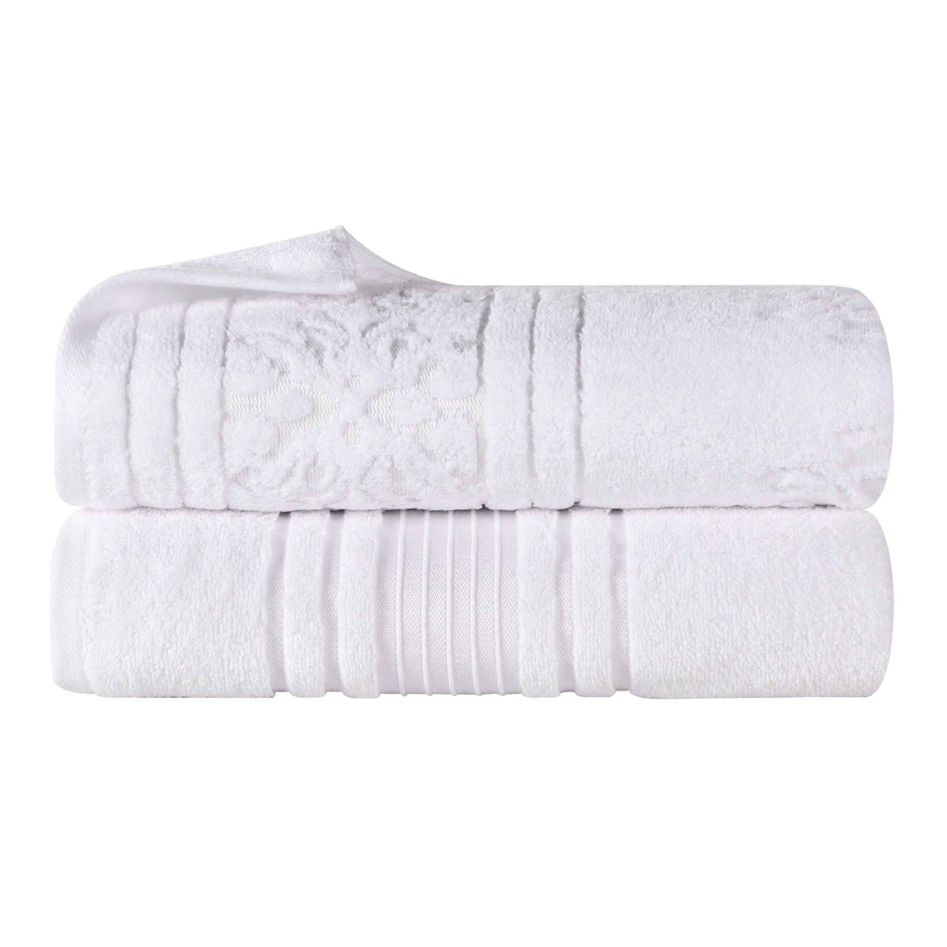 Transform your bathroom to a haven of self-care and luxury with our Sadie Zero Twist Cotton Floral Solid and Jacquard Bath Sheet Set. These 100% Cotton towels are crafted with a zero twist technique for a softer, more absorbent, and more luxurious towel those of regularly twisted towels. Featuring an assortment of solid and jacquard towels that boast an elegant floral motif, bring unique style to your guest or master bathroom with this duo. Each towel is finished with secure hemmed edges to avoid fraying and a durable single-ply to withstand countless washes and last you years to come. Finished with a hanging loop on each piece, enjoy both convenience and comfort with this versatile set.