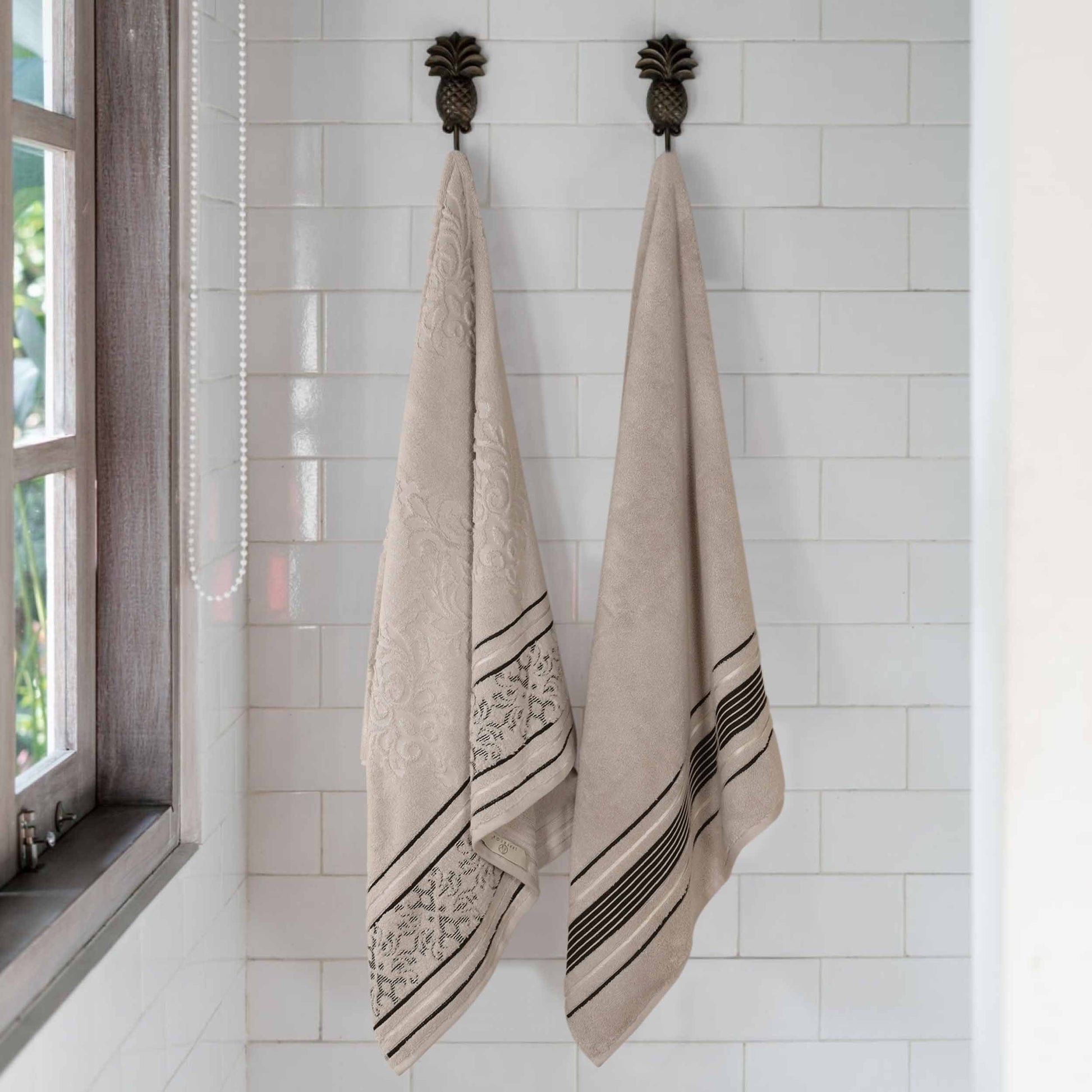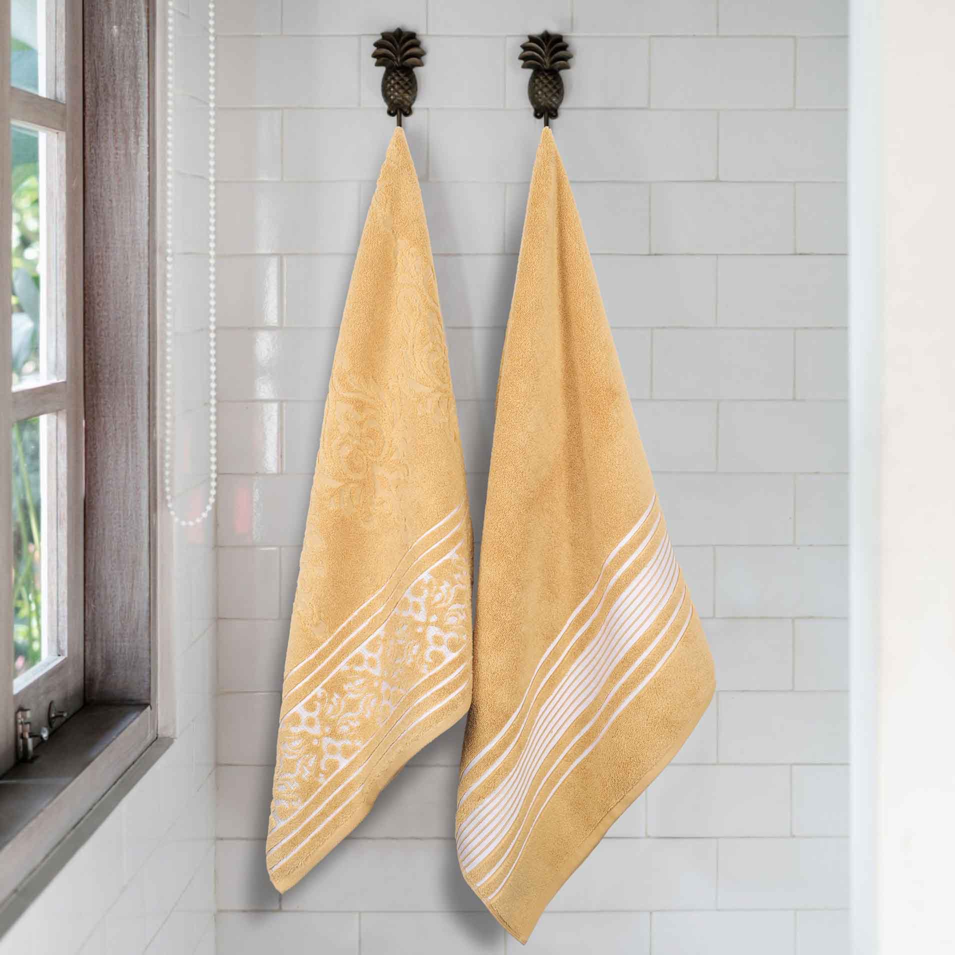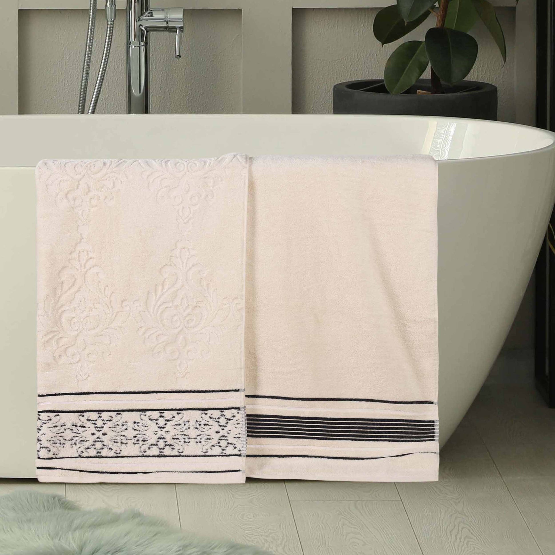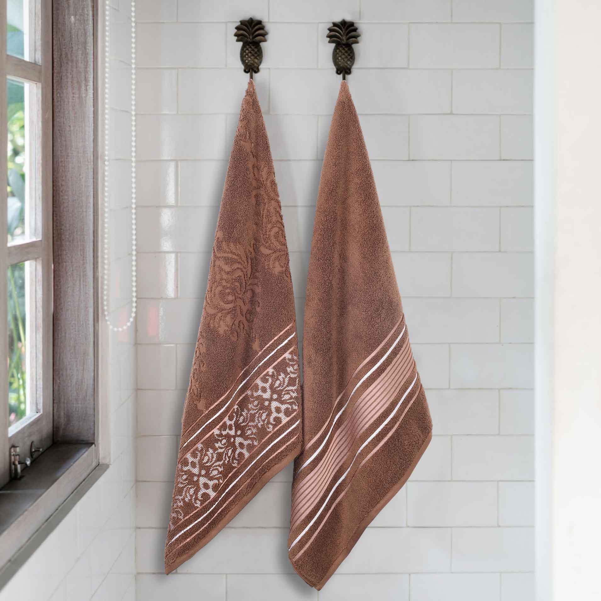 Transform your bathroom to a haven of self-care and luxury with our Sadie Zero Twist Cotton Floral Solid and Jacquard Bath Sheet Set. These 100% Cotton towels are crafted with a zero twist technique for a softer, more absorbent, and more luxurious towel those of regularly twisted towels. Featuring an assortment of solid and jacquard towels that boast an elegant floral motif, bring unique style to your guest or master bathroom with this duo. Each towel is finished with secure hemmed edges to avoid fraying and a durable single-ply to withstand countless washes and last you years to come. Finished with a hanging loop on each piece, enjoy both convenience and comfort with this versatile set.