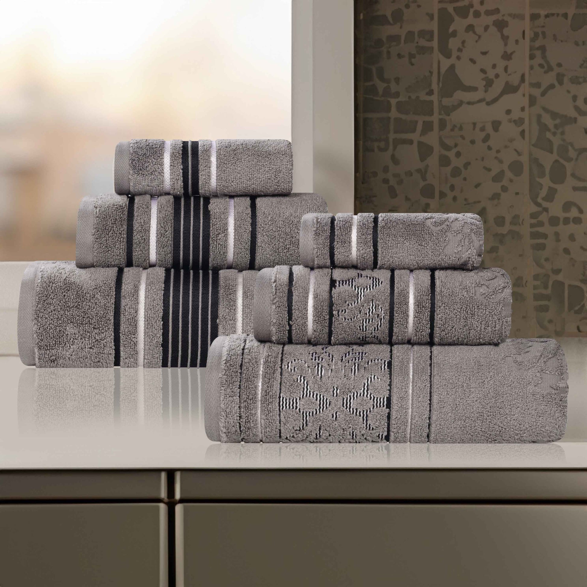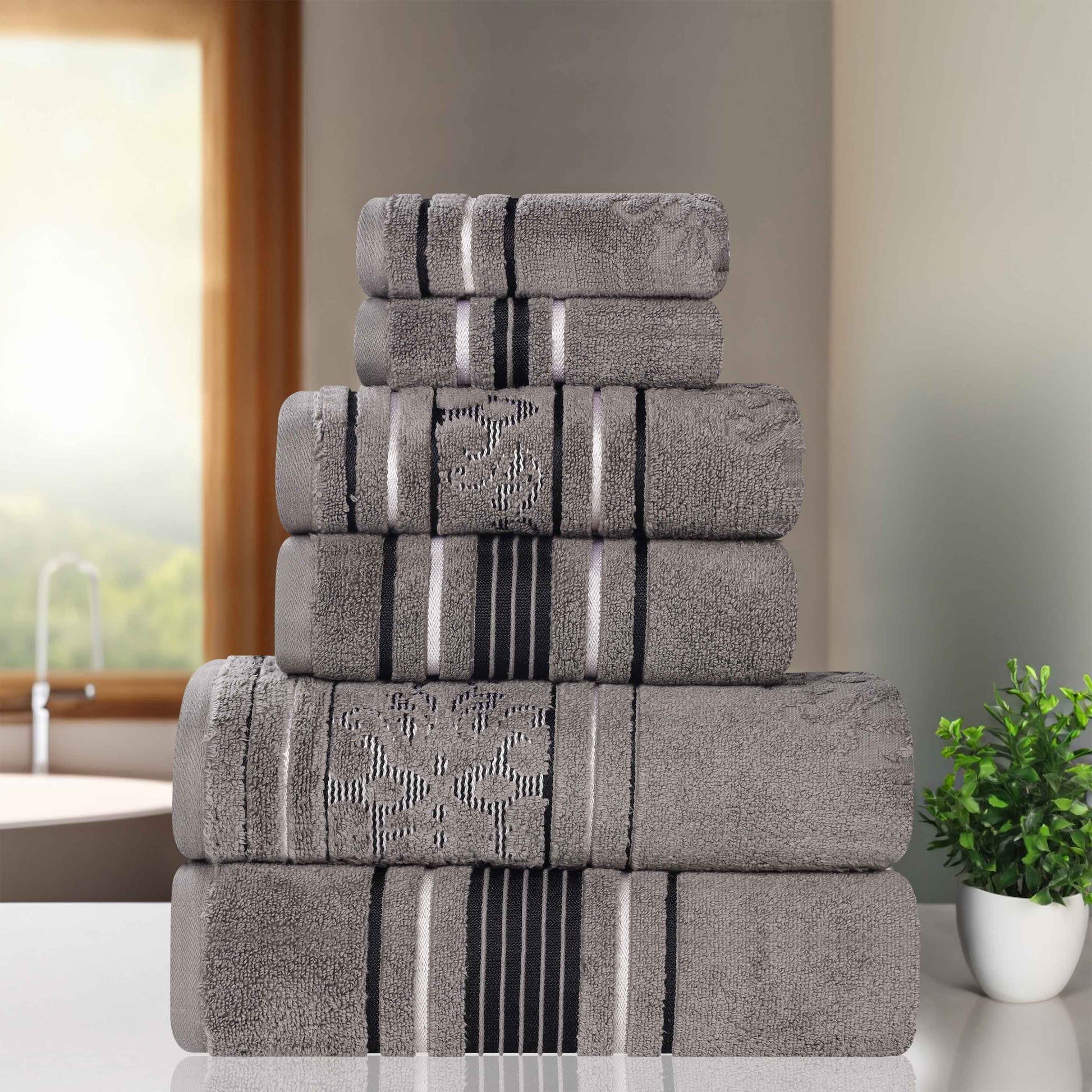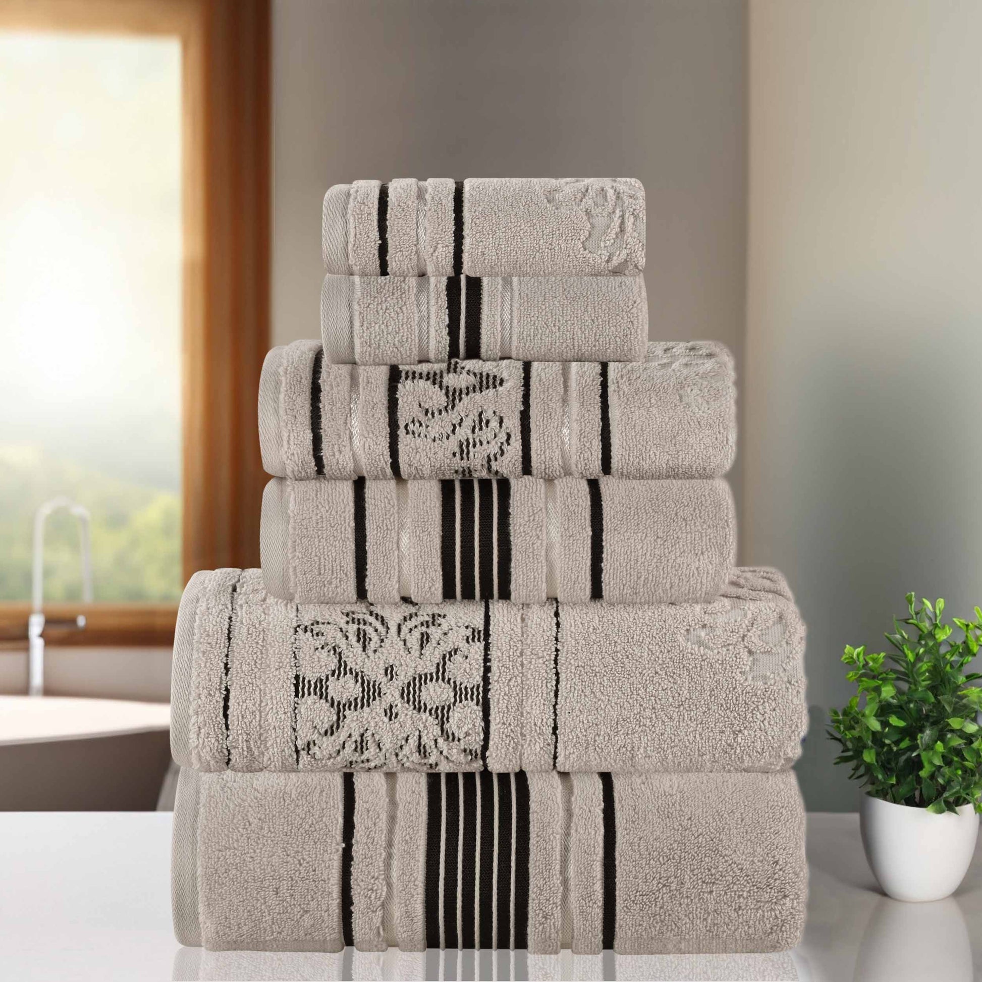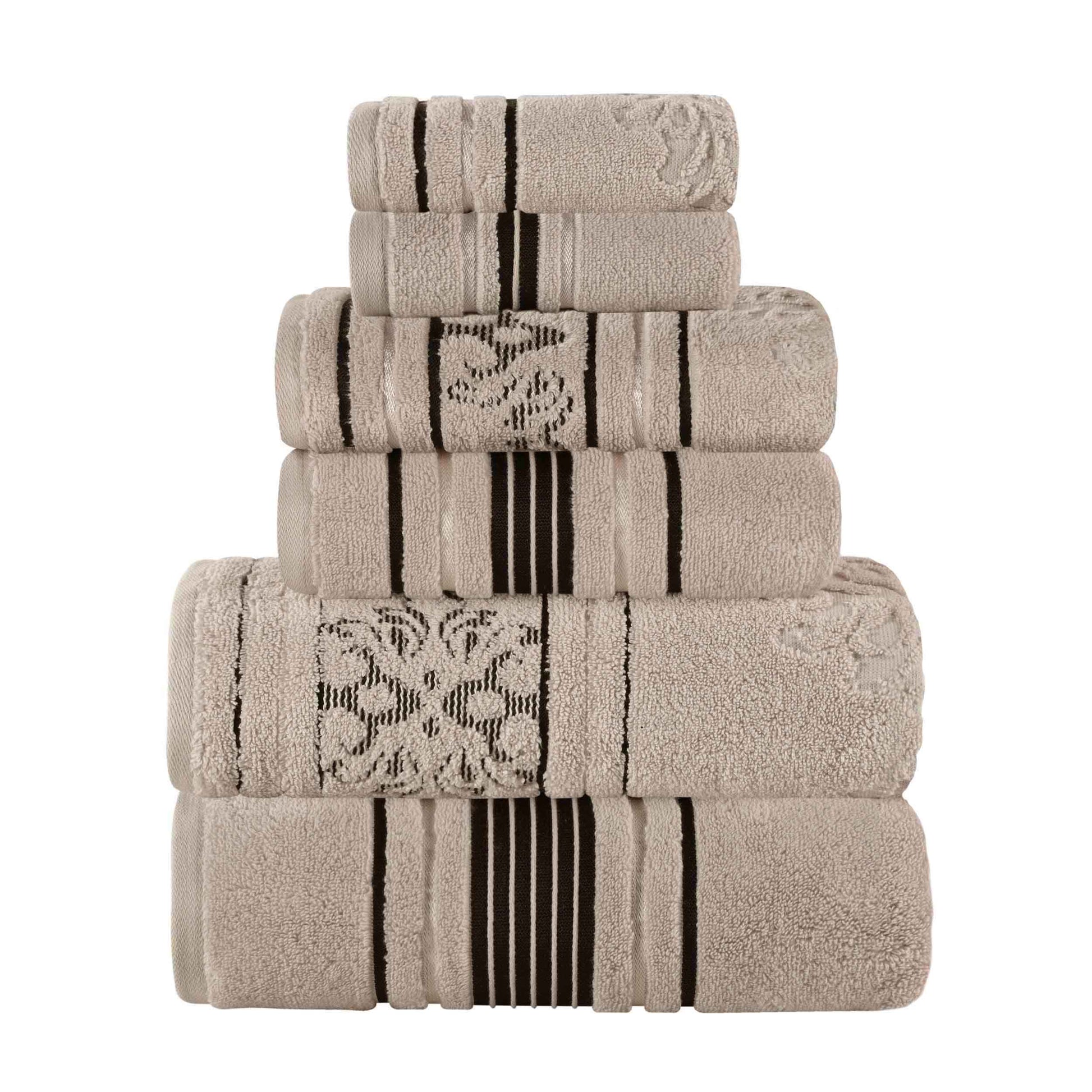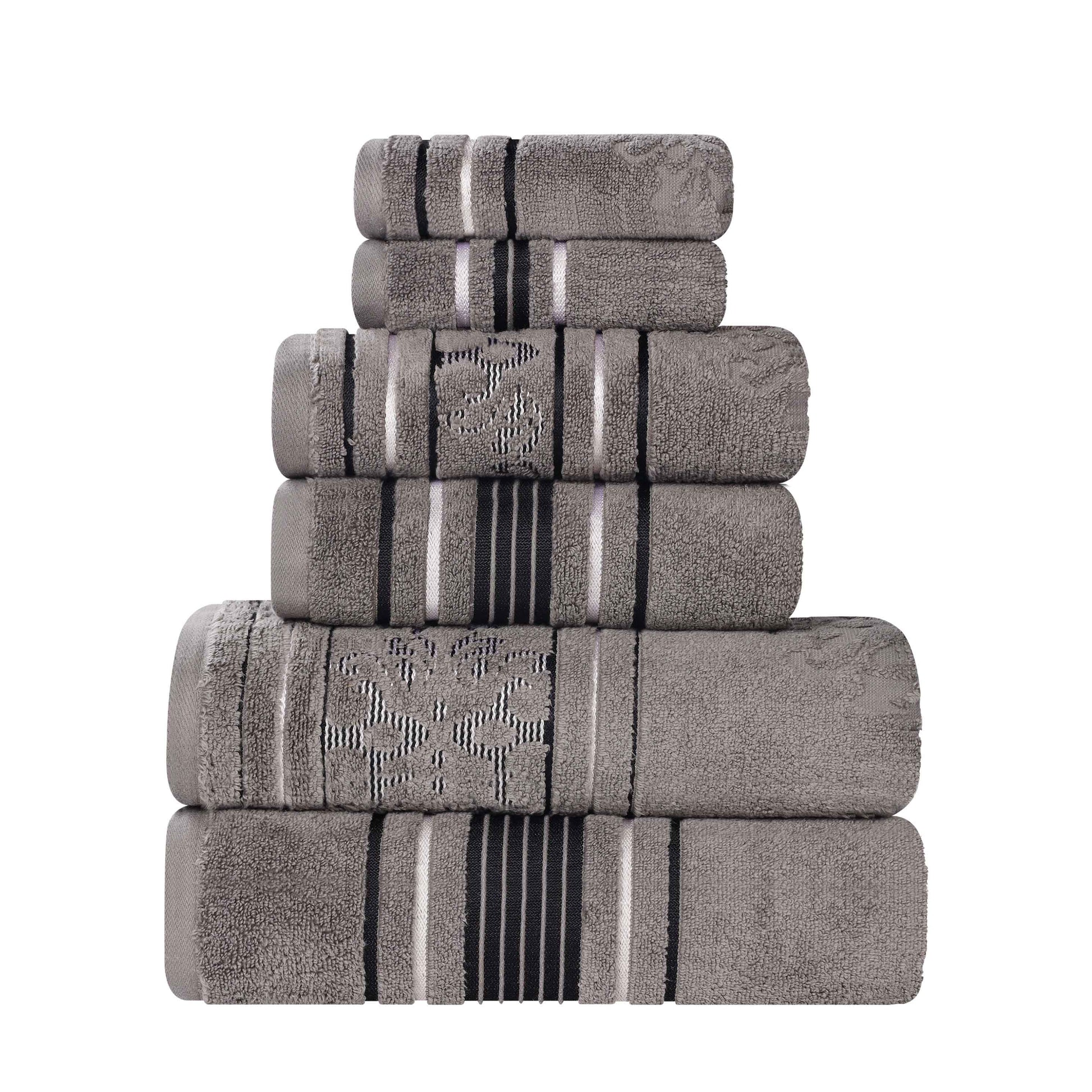 Sadie Zero Twist Cotton Solid and Jacquard Floral 6 Piece Towel Set