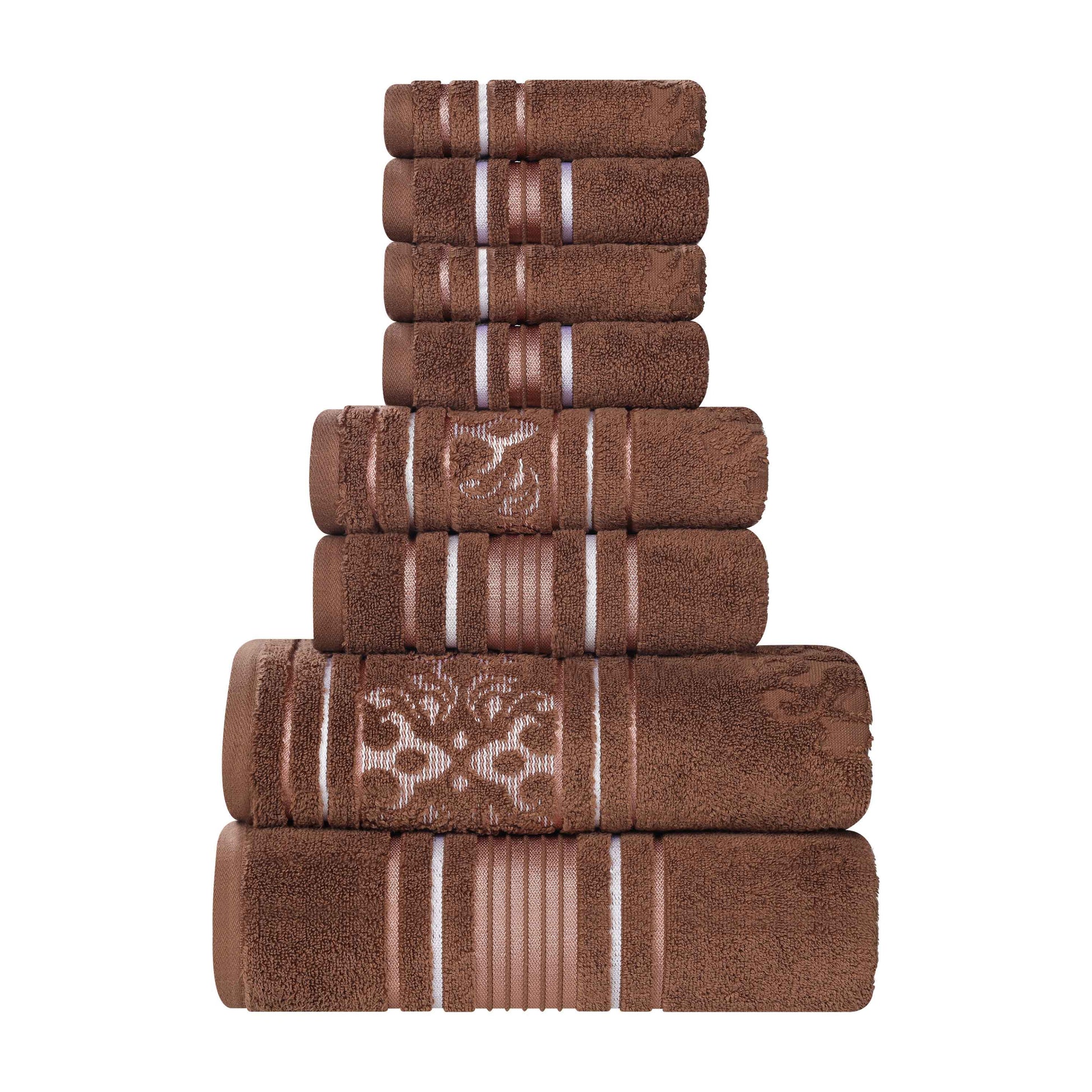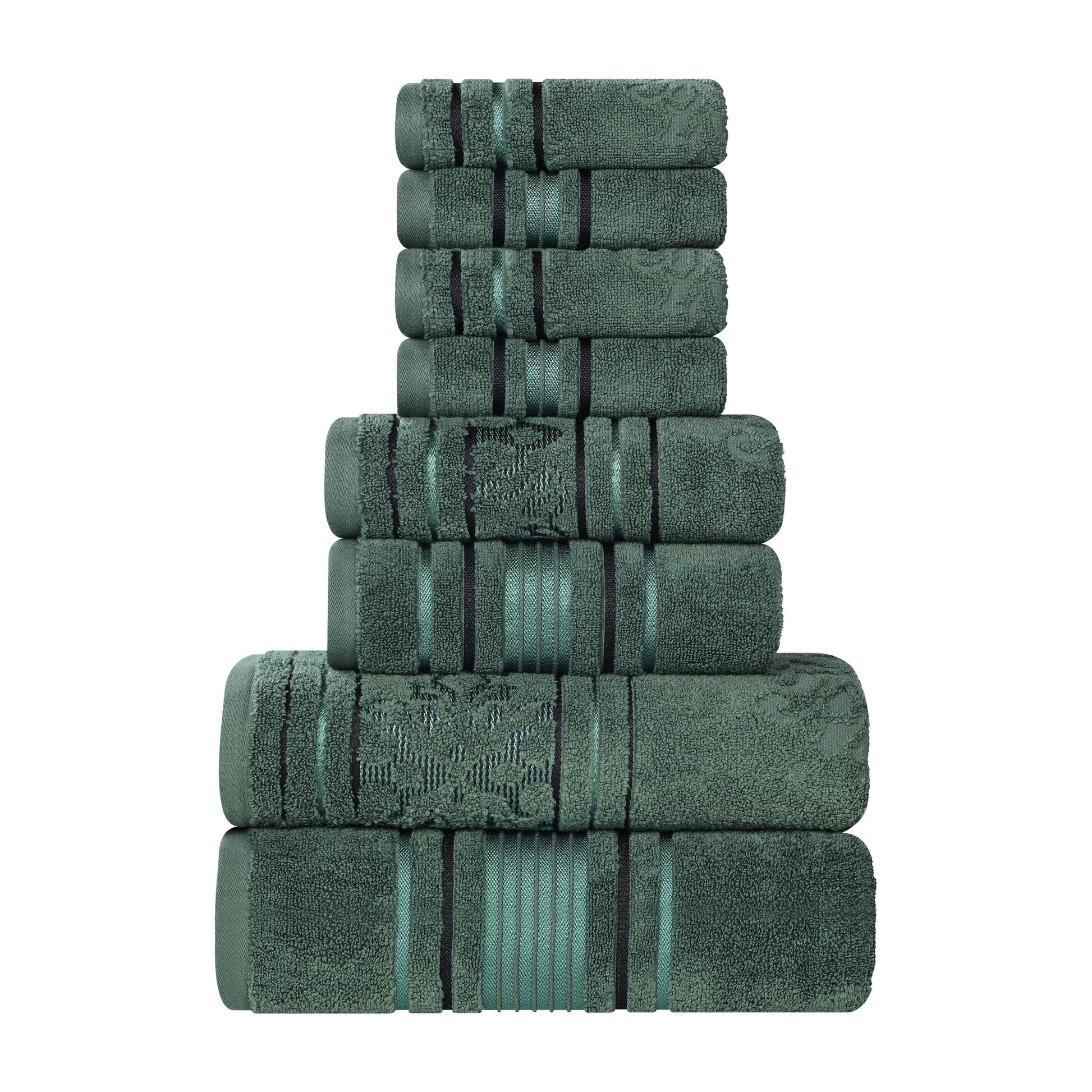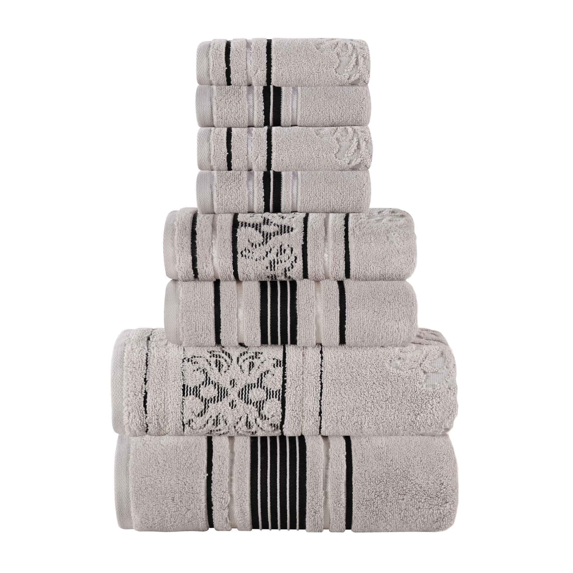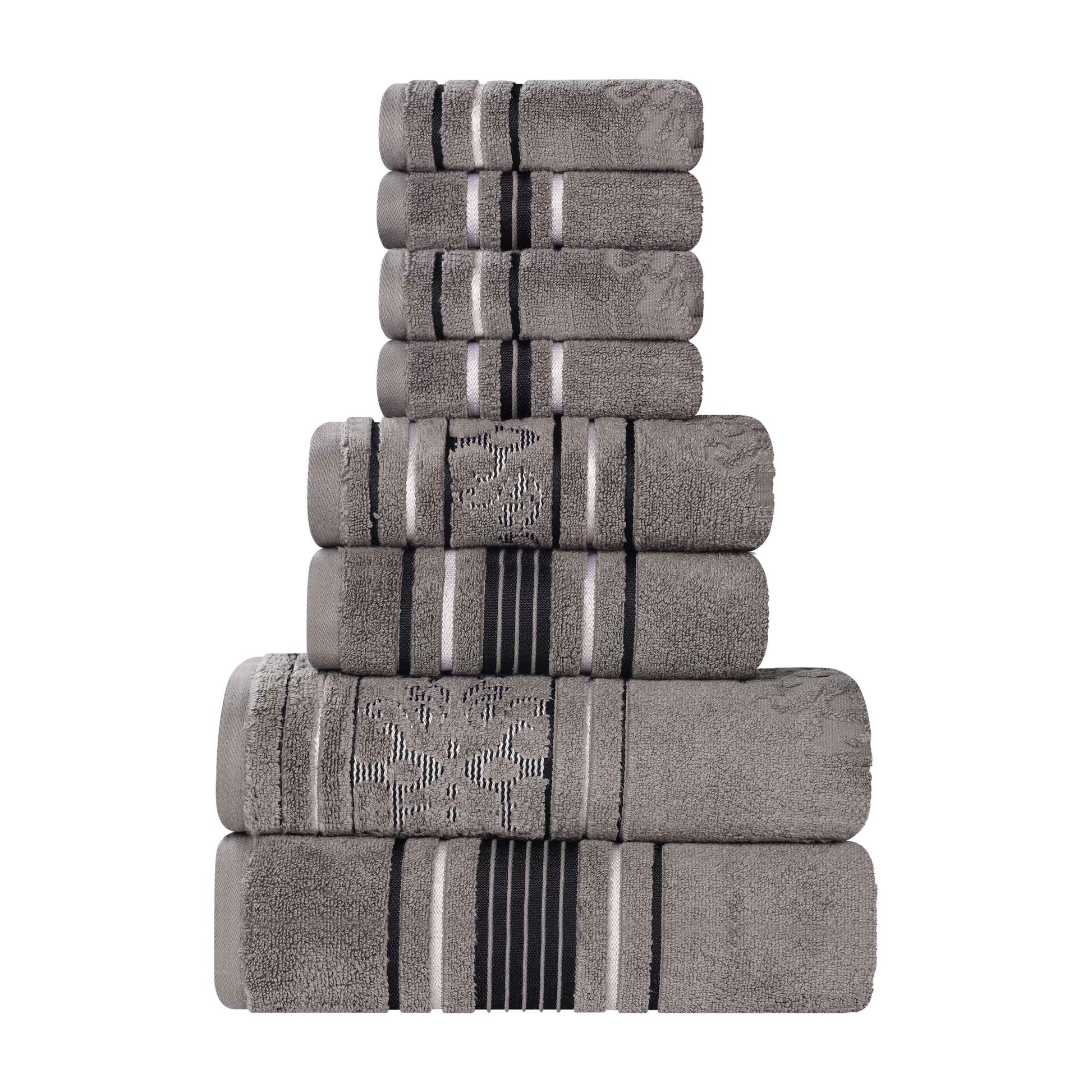 Sadie Zero Twist Cotton Solid and Jacquard Floral 8 Piece Towel Set