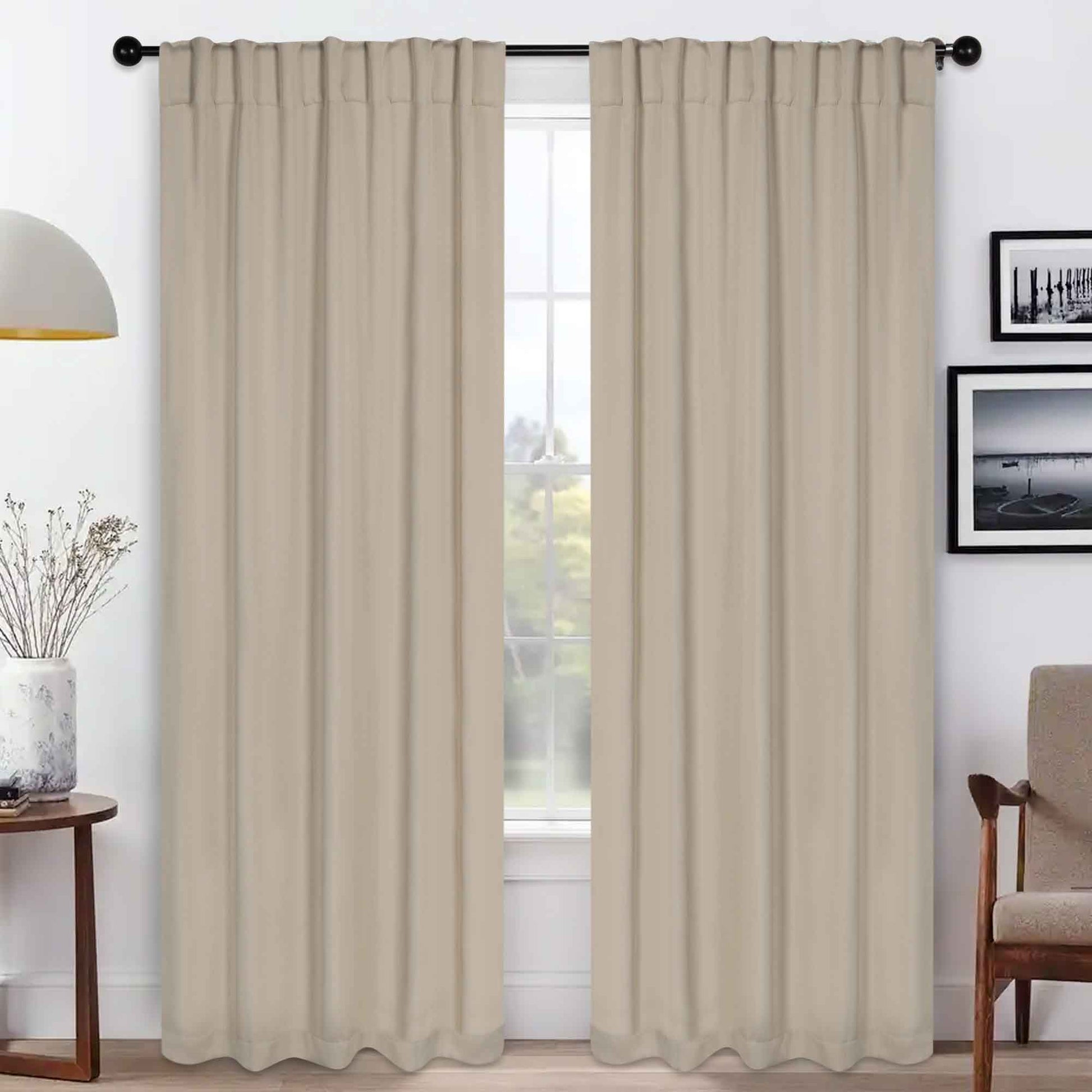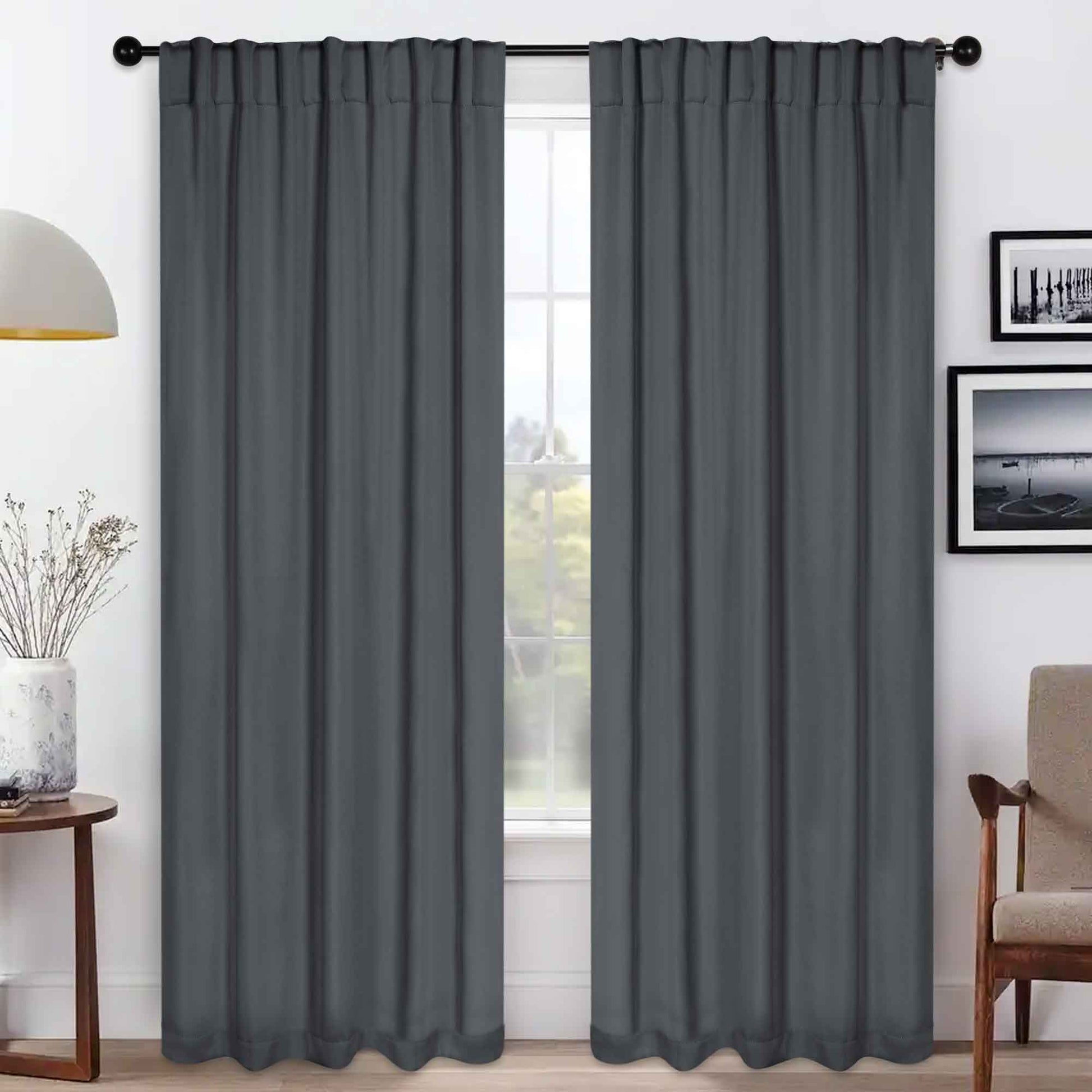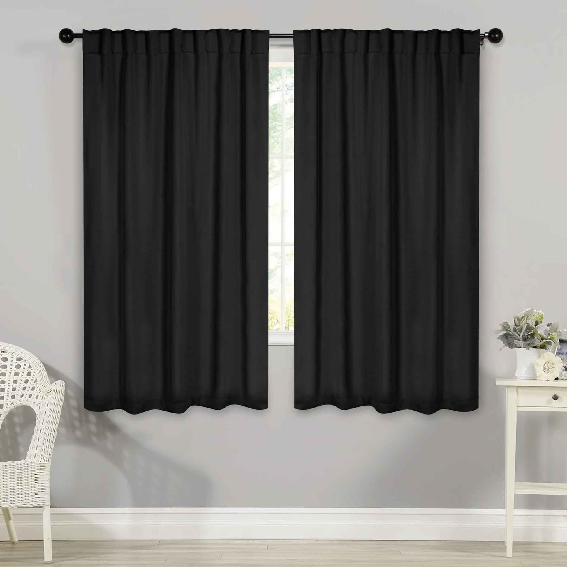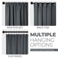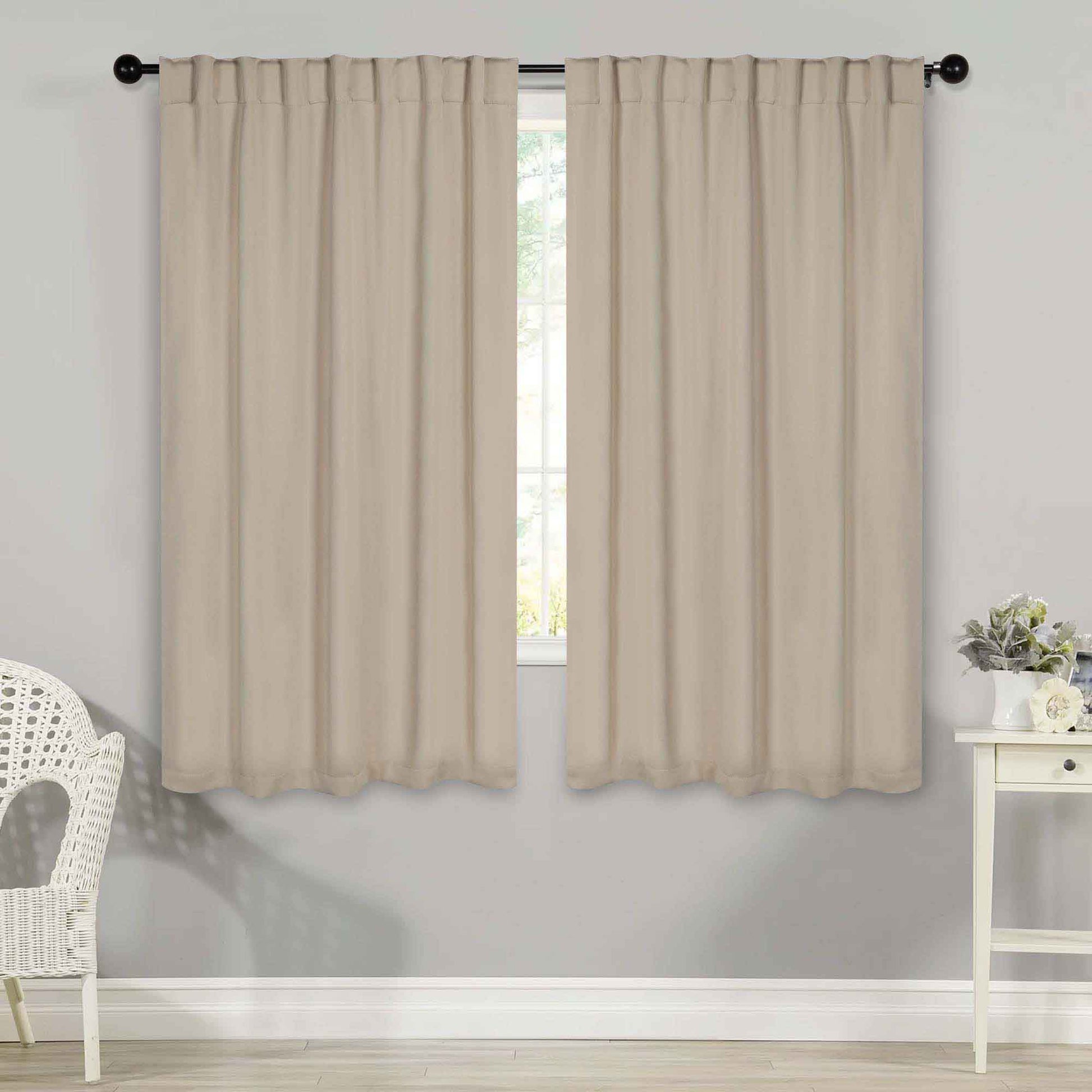 - Additional Features: 4†back tab header offers three stylish installation options: neat and streamlined back tabs, a rod pocket, or the ability to attach clip rings (sold separately). Blocks up to 70-80% sunlight and UV rays, helps reduce noise, and provides optimal privacy. Energy efficient and thermal insulating; Reduces room heat and cold loss through window to maintain cozy room temperature.