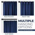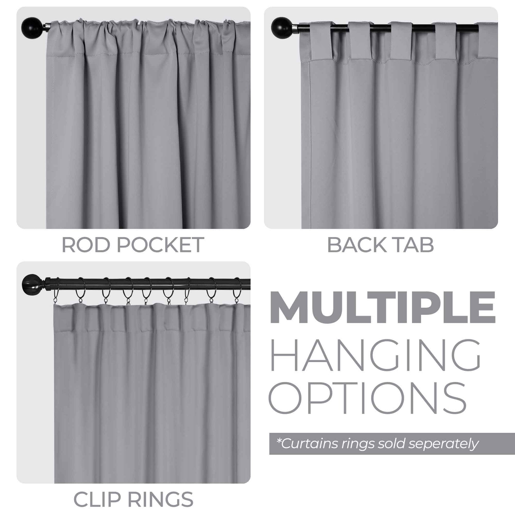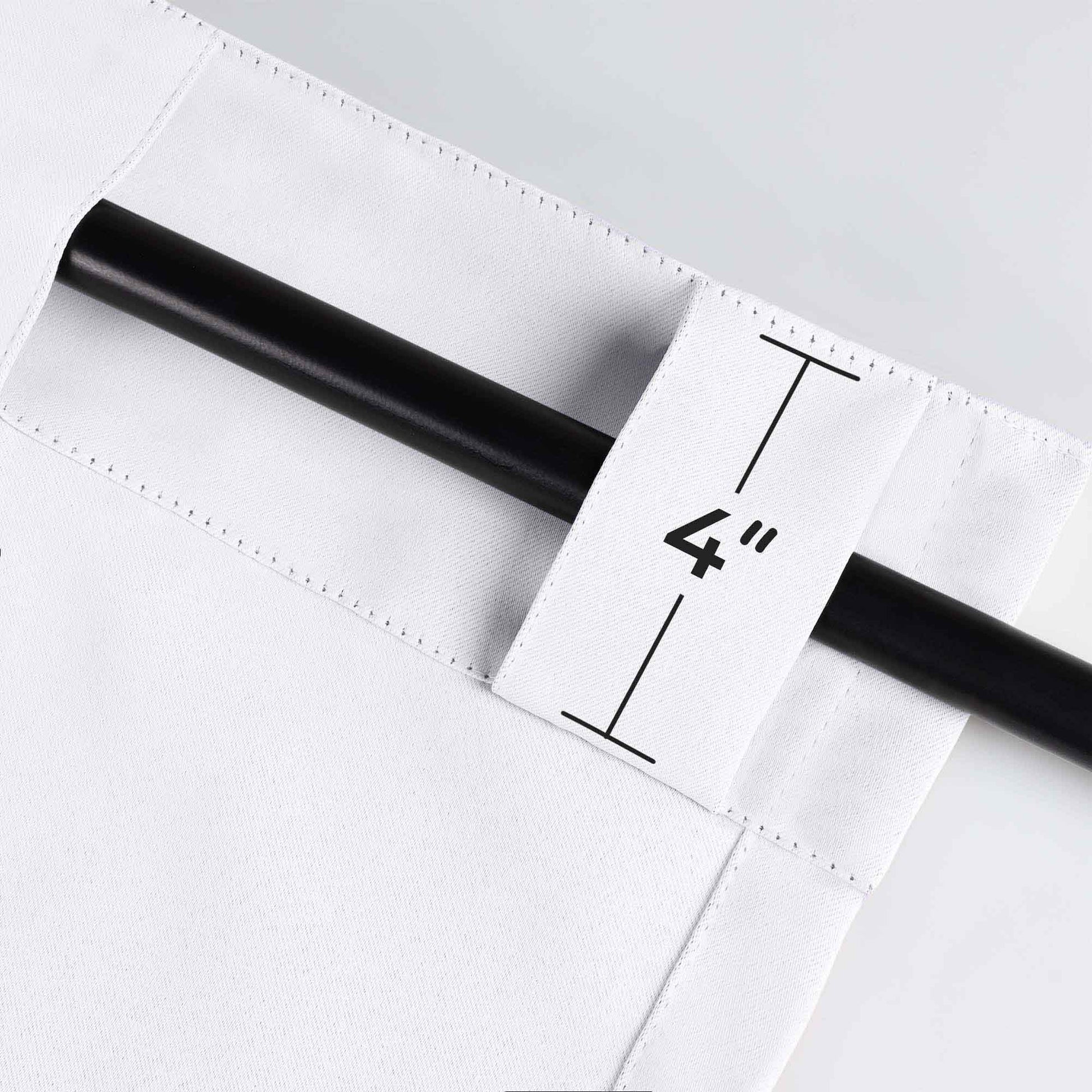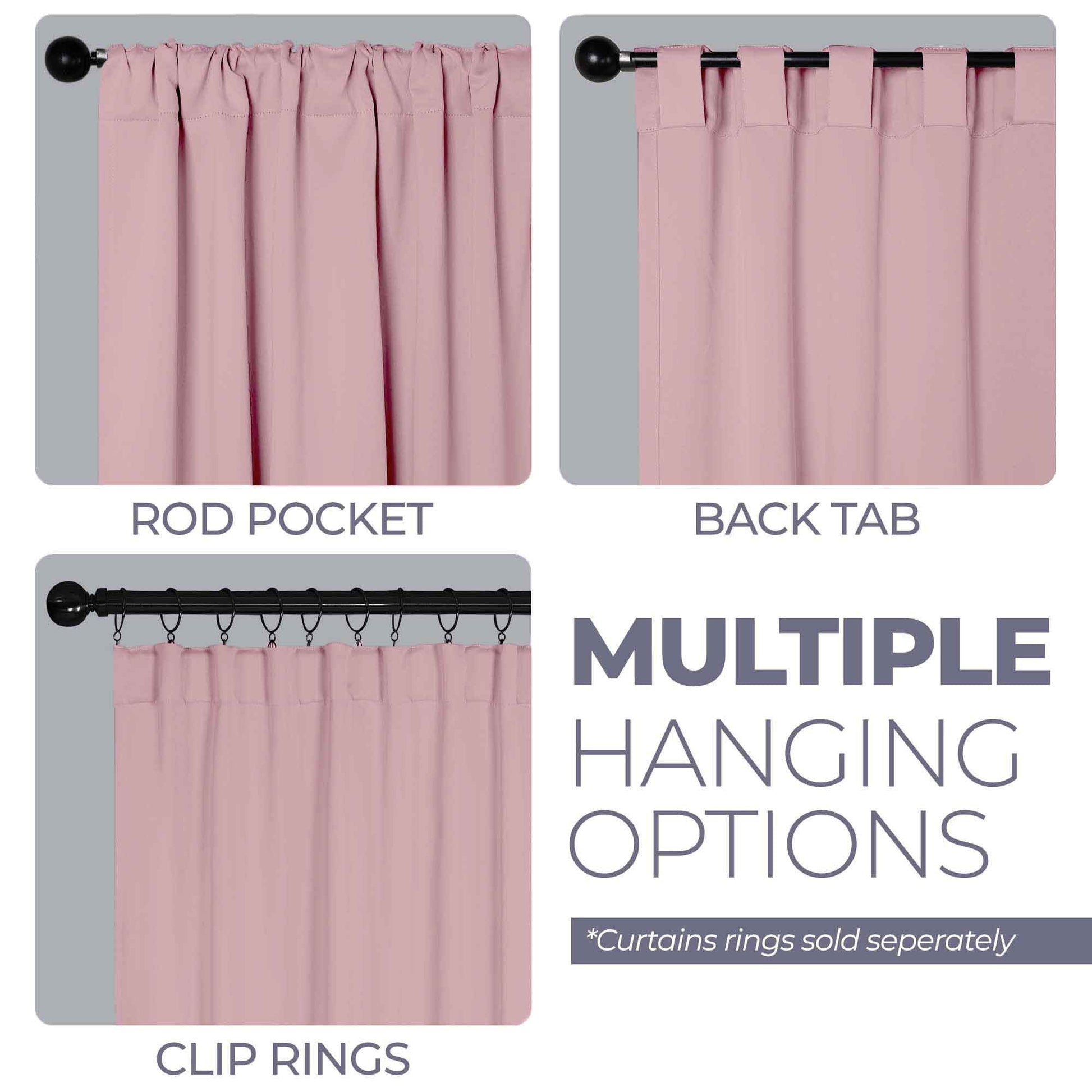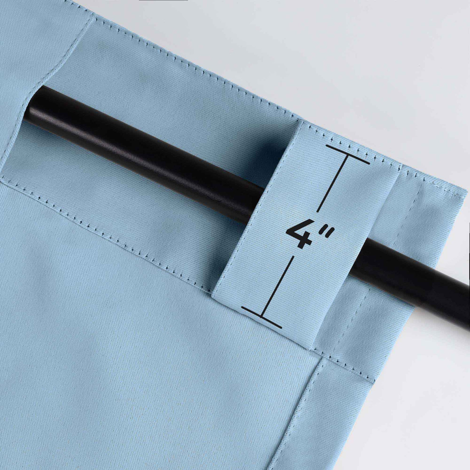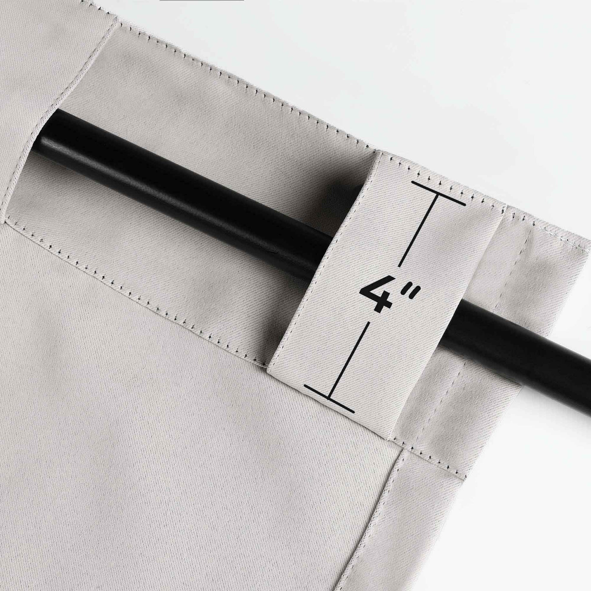 - Additional Features: 4†back tab header offers three stylish installation options: neat and streamlined back tabs, a rod pocket, or the ability to attach clip rings (sold separately). Blocks up to 70-80% sunlight and UV rays, helps reduce noise, and provides optimal privacy. Energy efficient and thermal insulating; Reduces room heat and cold loss through window to maintain cozy room temperature.