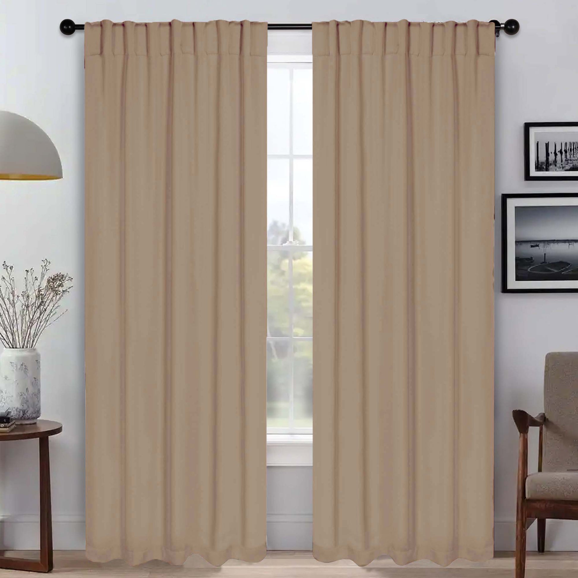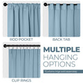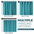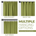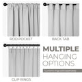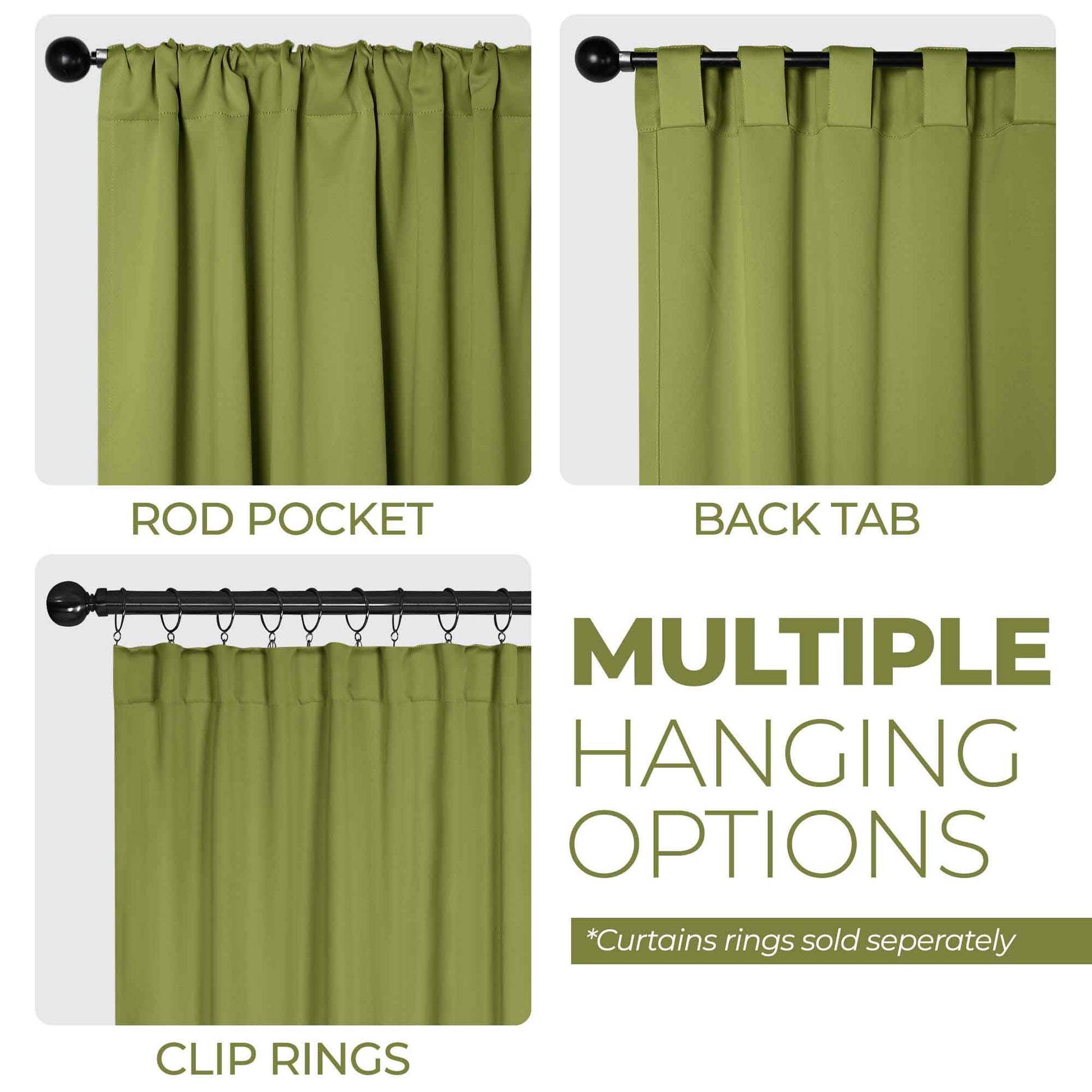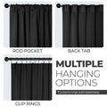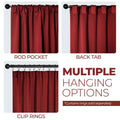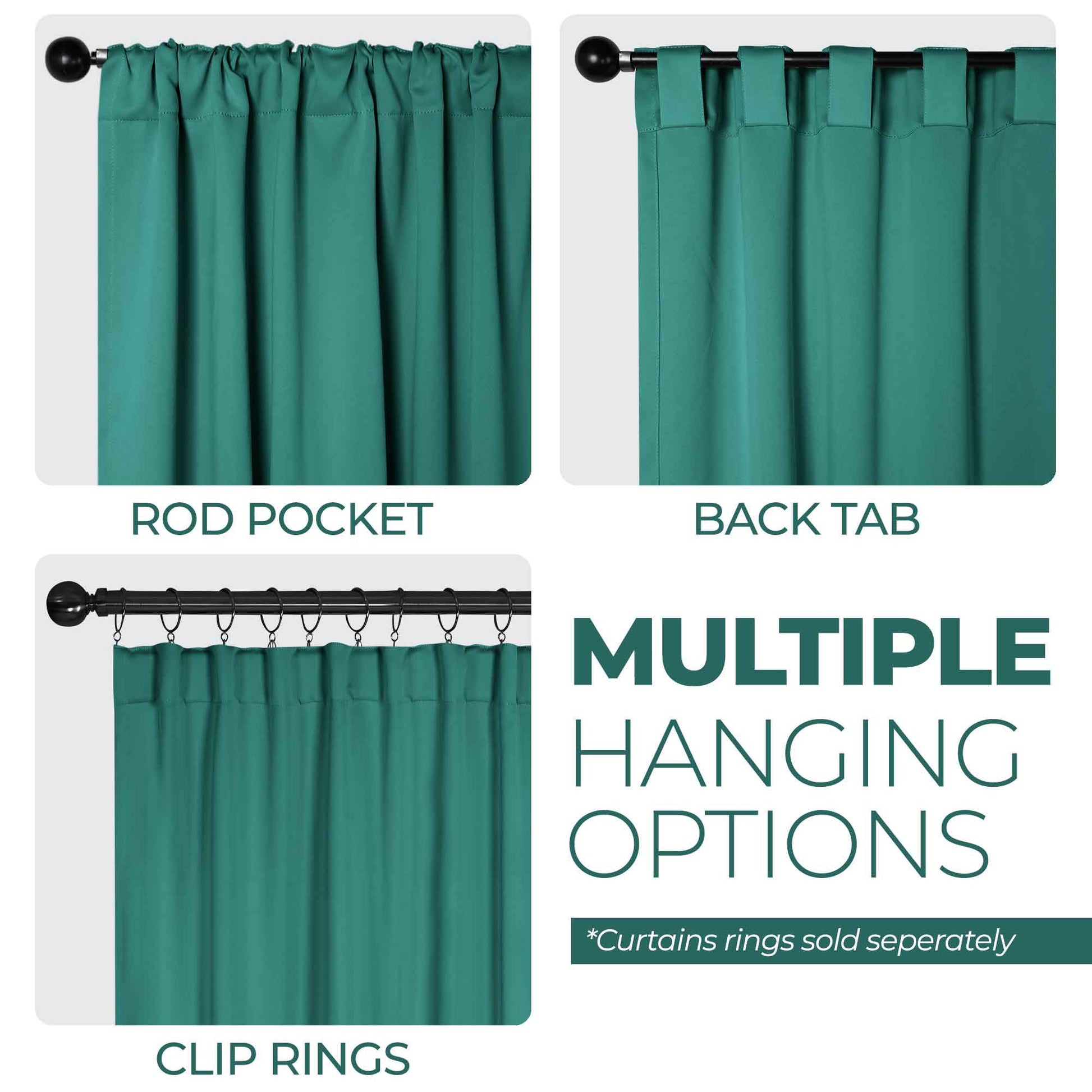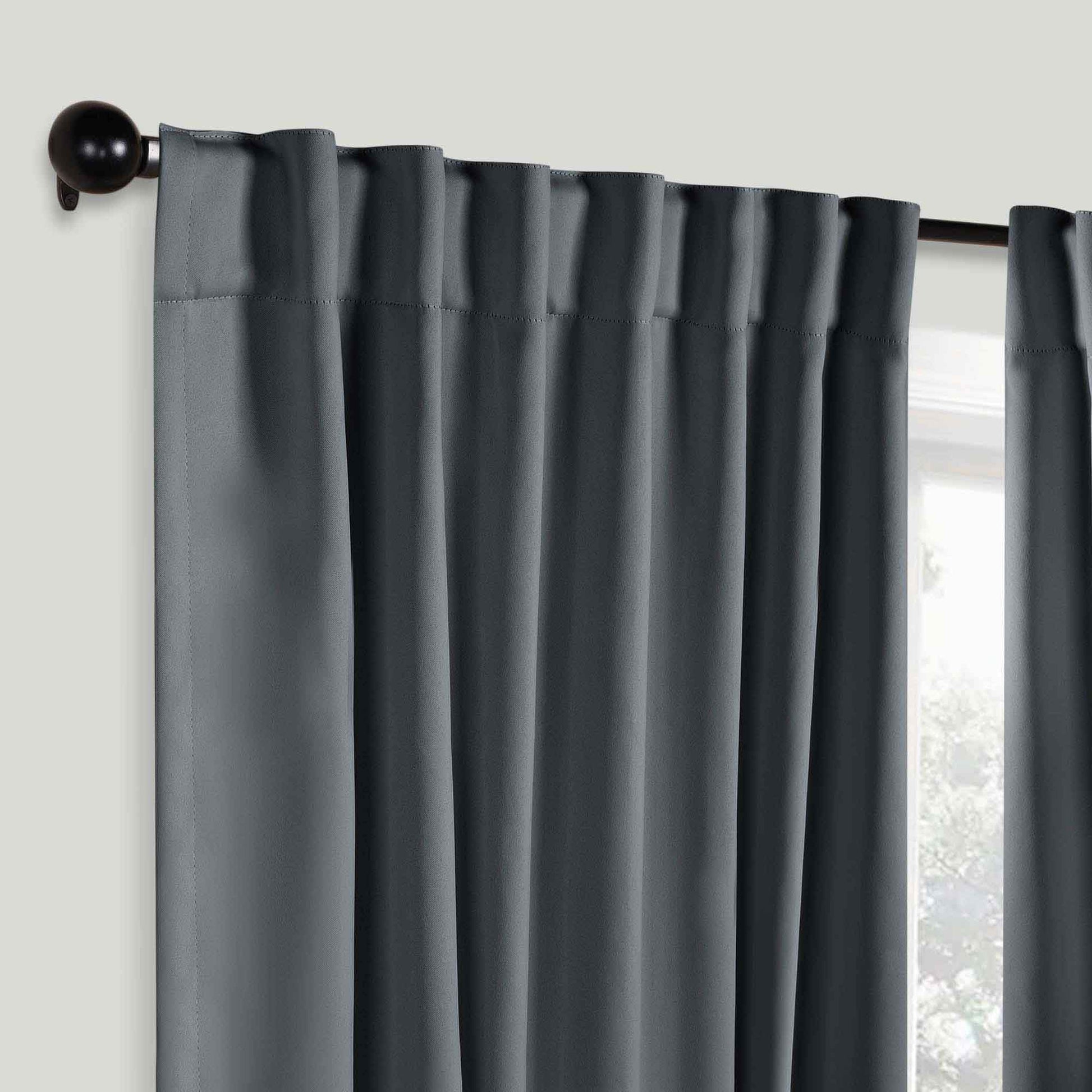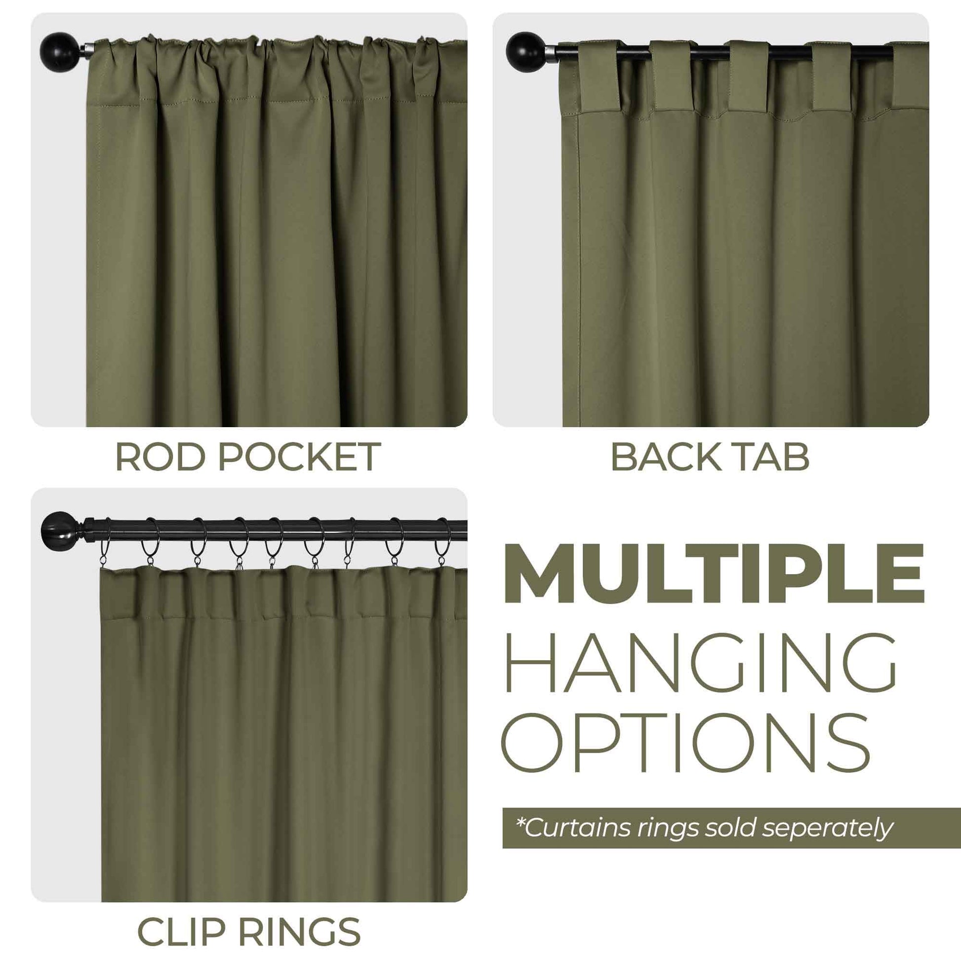 - Additional Features: 4†back tab header offers three stylish installation options: neat and streamlined back tabs, a rod pocket, or the ability to attach clip rings (sold separately). Blocks up to 70-80% sunlight and UV rays, helps reduce noise, and provides optimal privacy. Energy efficient and thermal insulating; Reduces room heat and cold loss through window to maintain cozy room temperature.