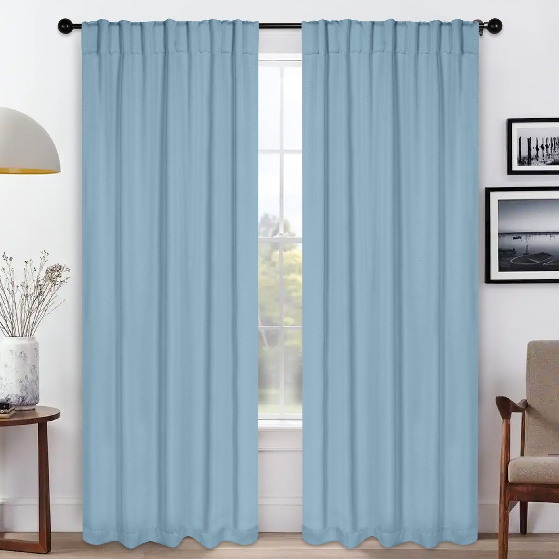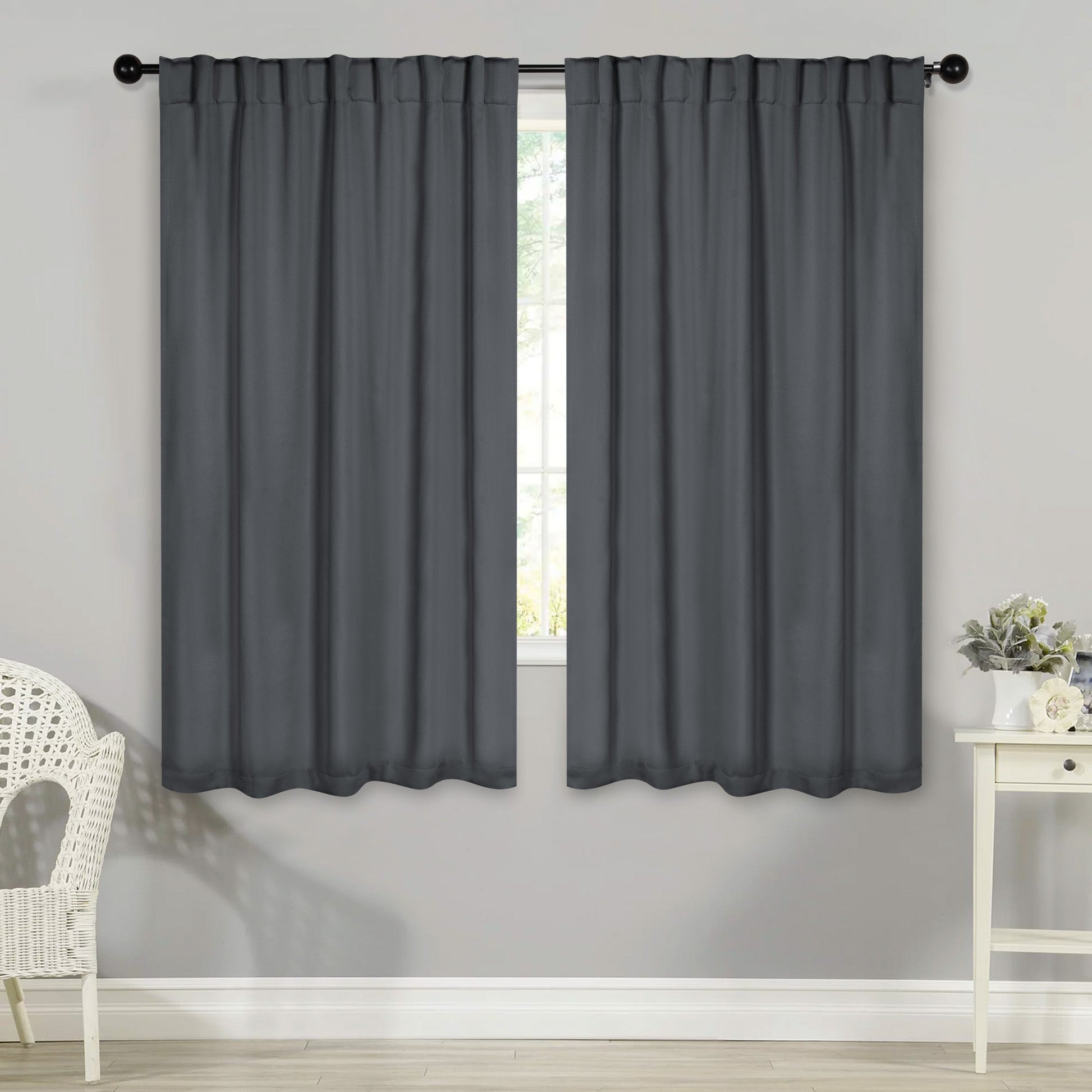 Block out unwanted sunlight and make your home more comfortable with our Solid Blackout Curtain Set. Made from a durble polyester material, these curtains are naturally hypoallergenic and wrinkle-resistant. Featuring a convenient back tab header, these curtains provide an easy installation and a modern flourish that will elevate the beauty of your home. These blackout curtains block up to 70% of sunlight and UV rays and are thermal insulating. Available in a wide range of versatile solid colors, these beautiful curtain panels are the perfect accent for any modern, traditional, or casual living spaces.