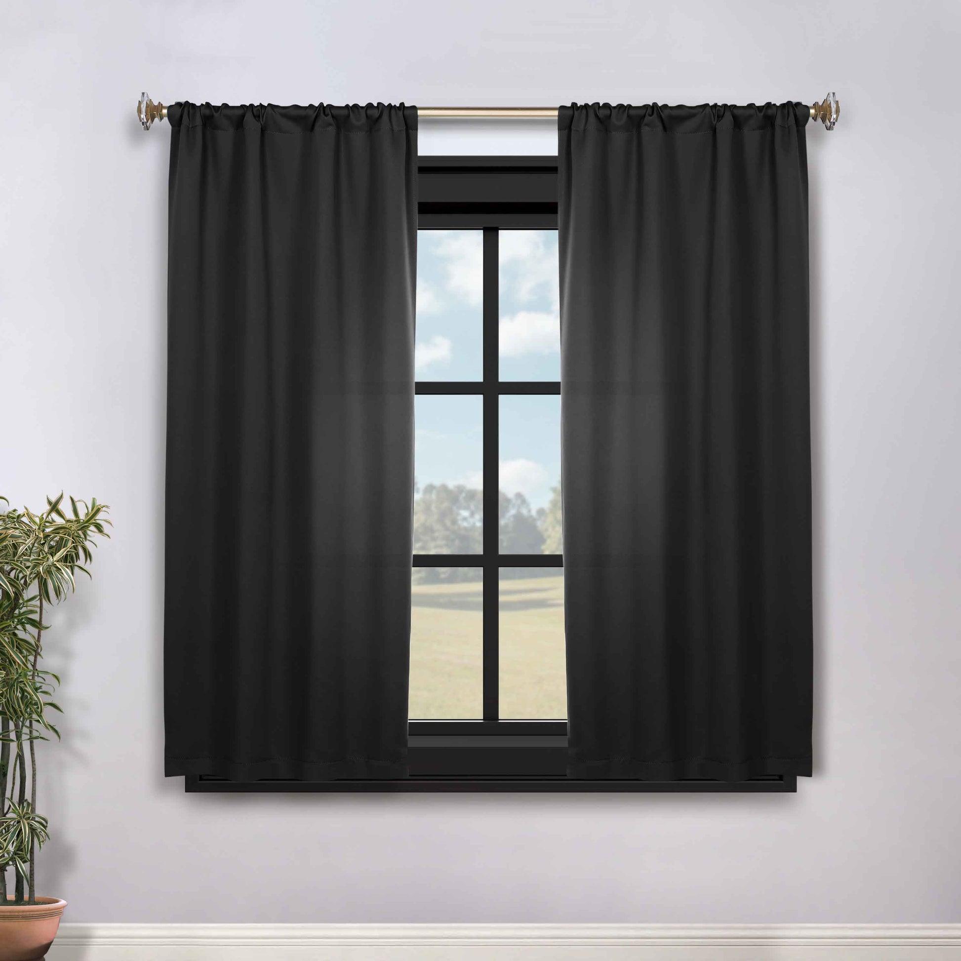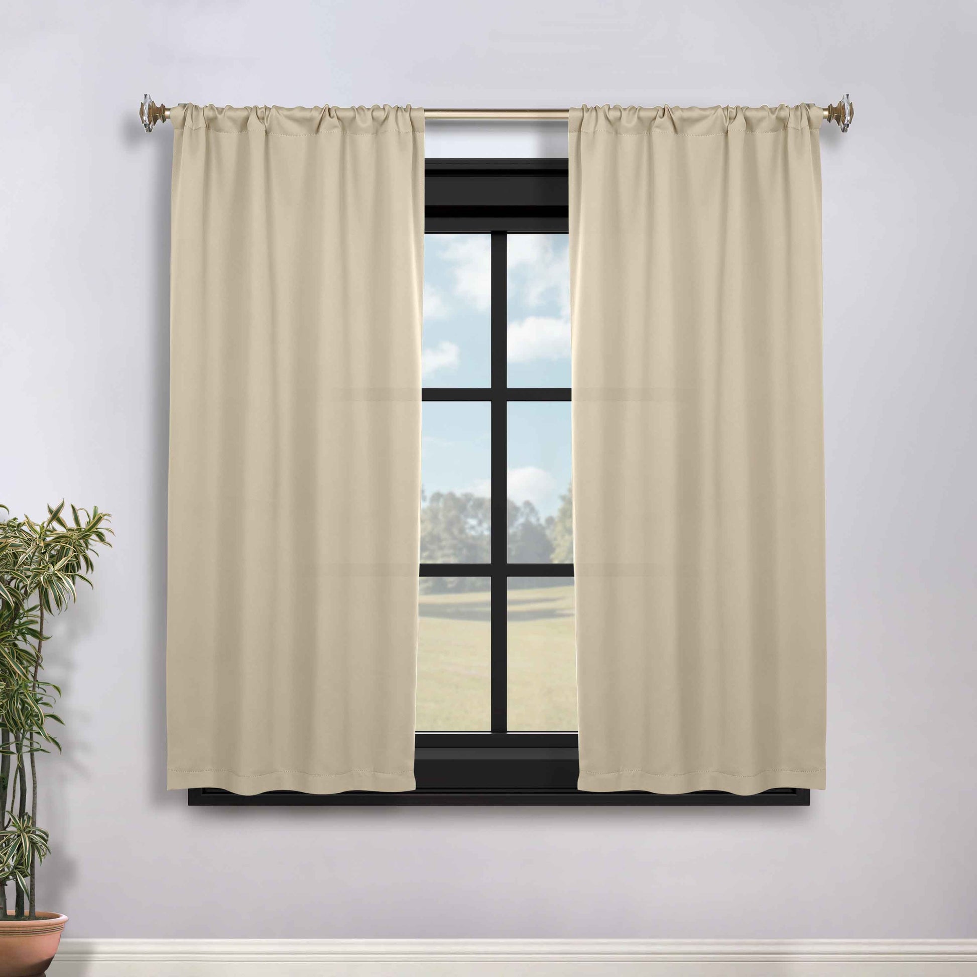 Solid Room Darkening Rod Pocket Blackout Curtain Panels, Set of 2