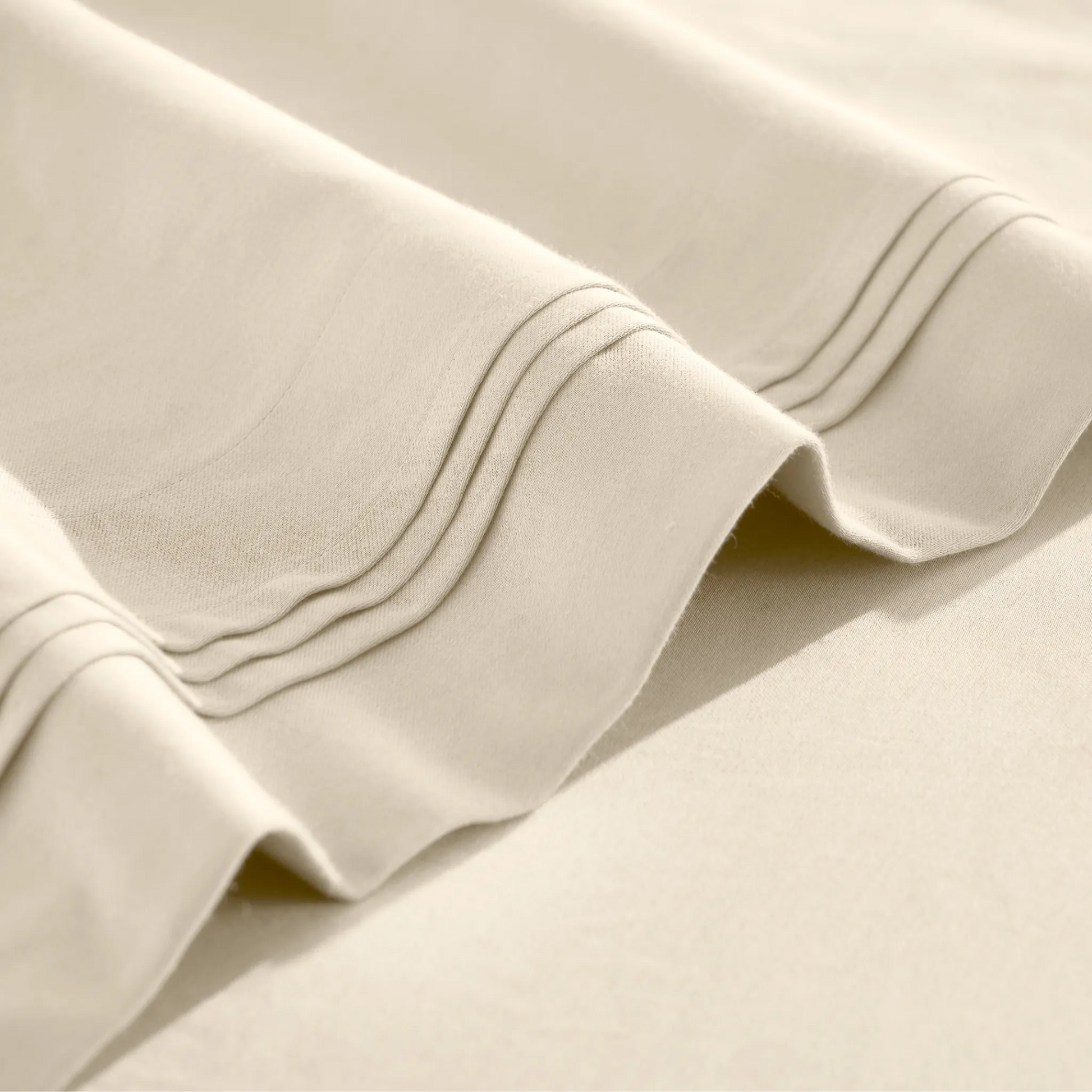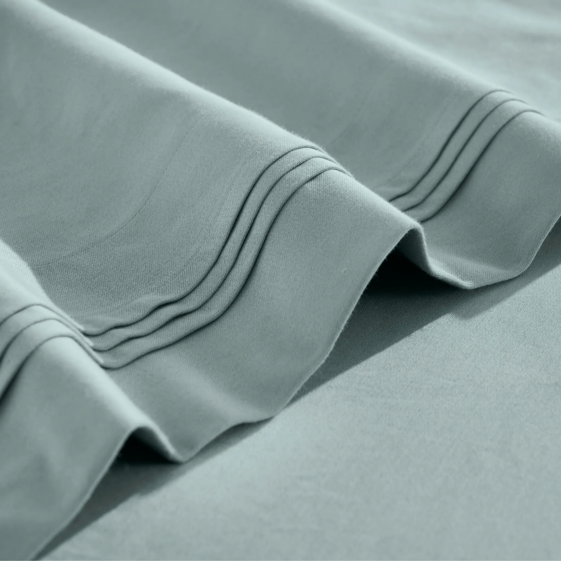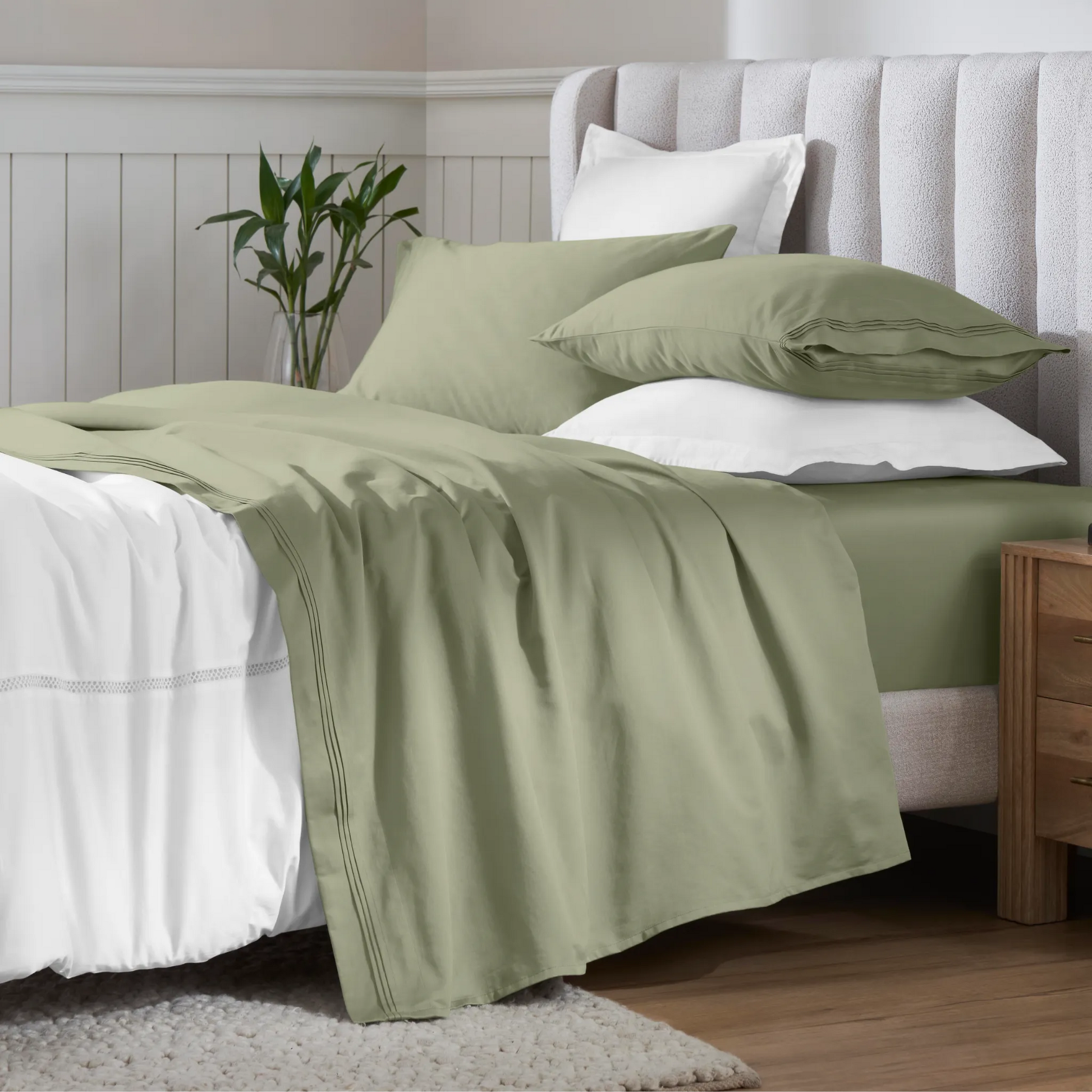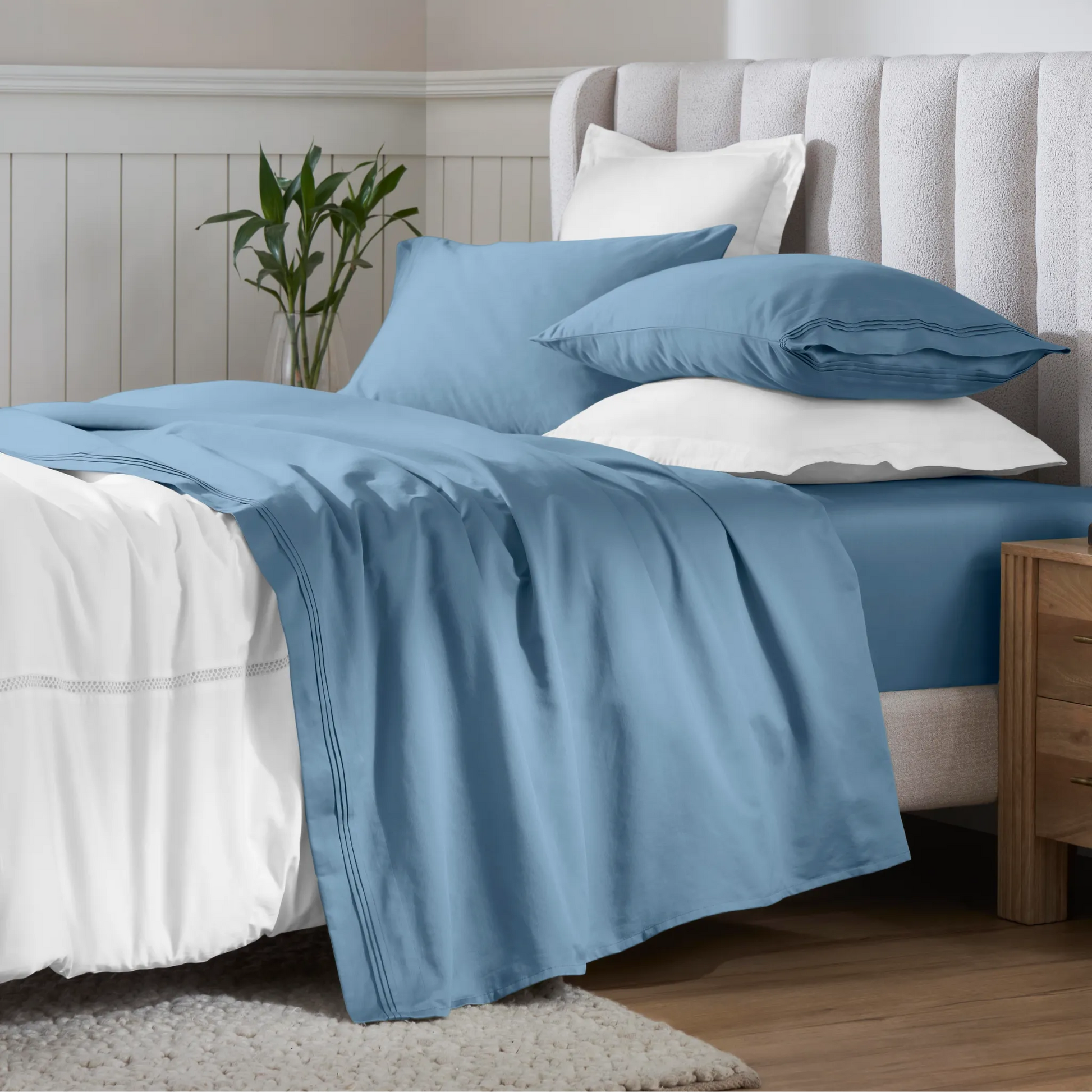 With a soft luster and tight construction, these cotton sheet sets maintain their integrity through repeated washing. Pillowcases feature a refined 4-inch hem, adding an elevated touch to your bed.