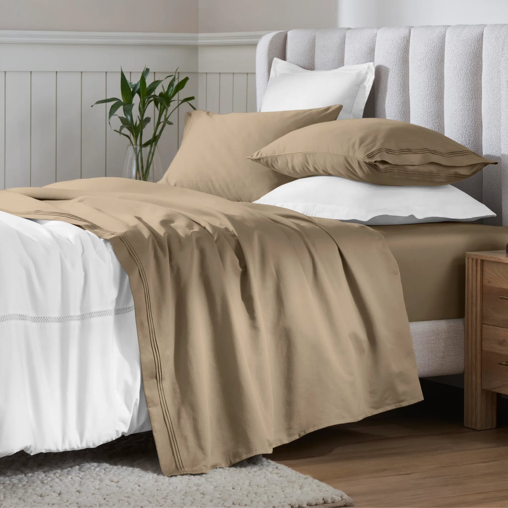 Upgrade your sleep experience with our sleep experience with our 650 thread count Egyptian cotton sheets set, crafted for strength, structure, and subtle elegance. These structured sheets strike the perfect balance between durability and style, offering a smooth finish without sacrificing substance.