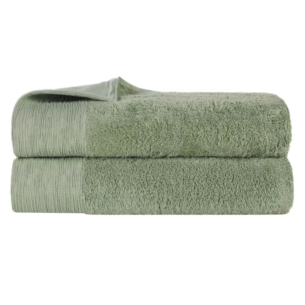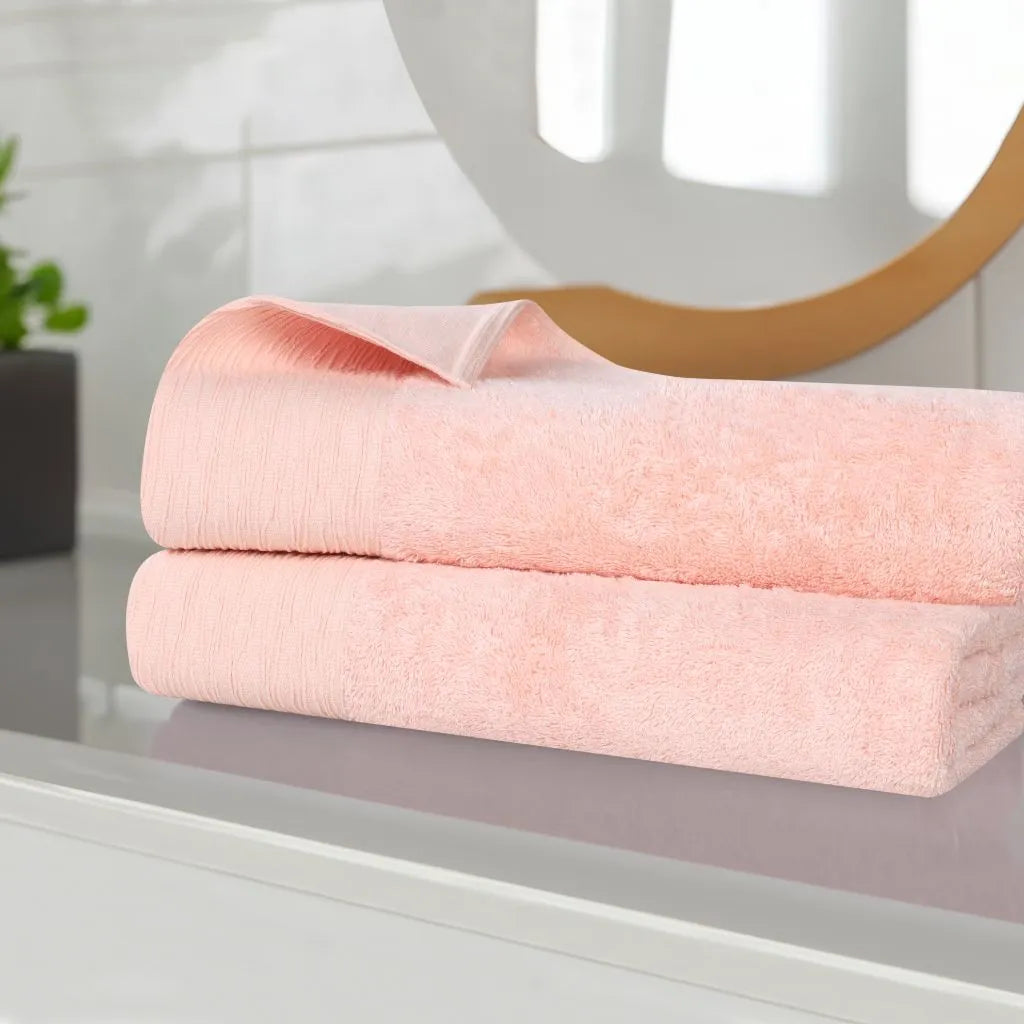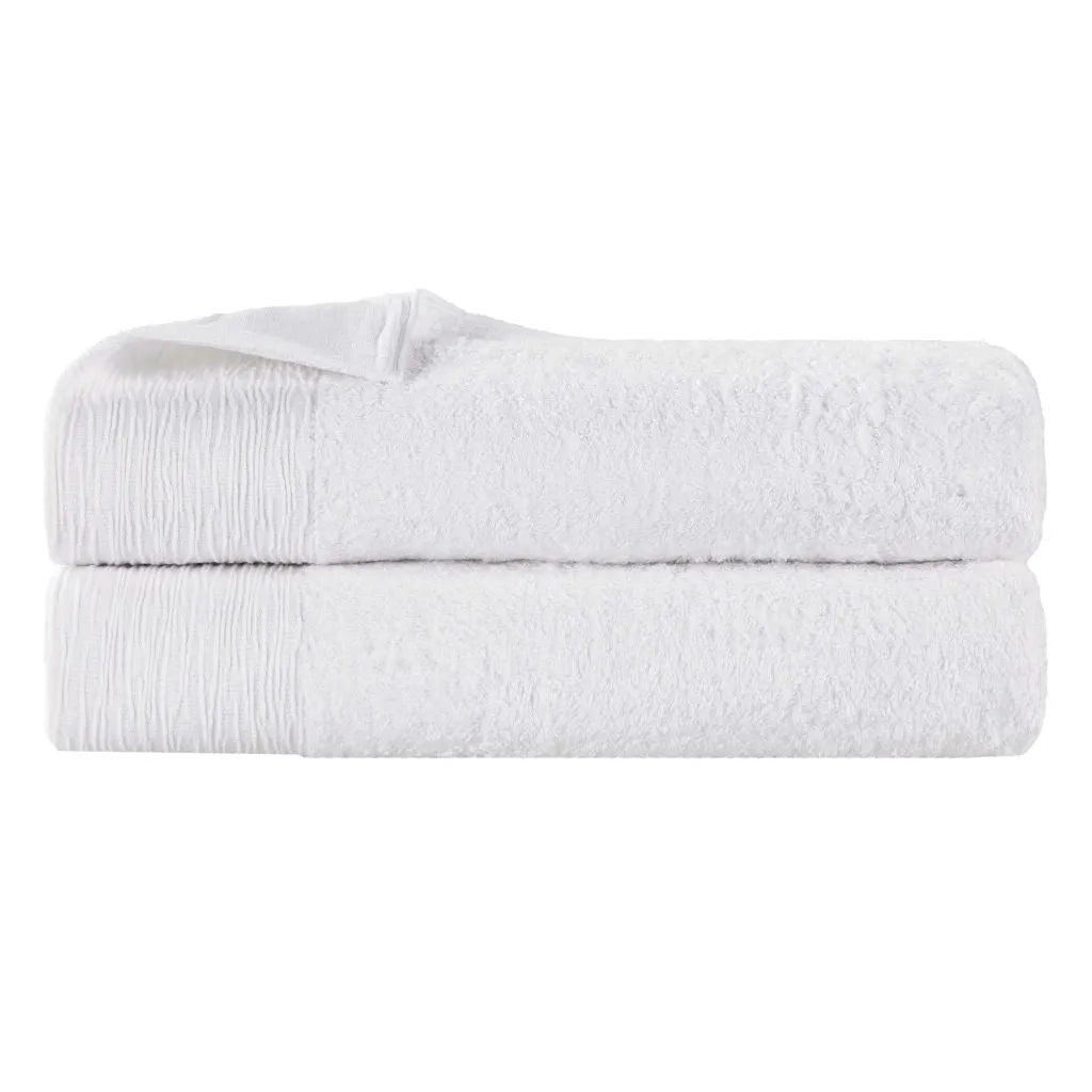 Immerse yourself in ultimate serenity with the Superior Rayon from Bamboo Eco-Friendly Fluffy Soft Modern Solid Bath Sheet Set of 2. This 40% Rayon from Bamboo, 60% Cotton towel set is crafted for a soft, absorbent, and luxurious experience. Boasting a classic solid design and wave textured border, bring a unique style to your guest or master bathroom with this bundle. Each towel is finished with secure hemmed edges to avoid fraying and a durable single-ply to withstand countless washes and last you years to come. Featuring a hanging loop on each piece, enjoy both convenience and comfort with this versatile set.