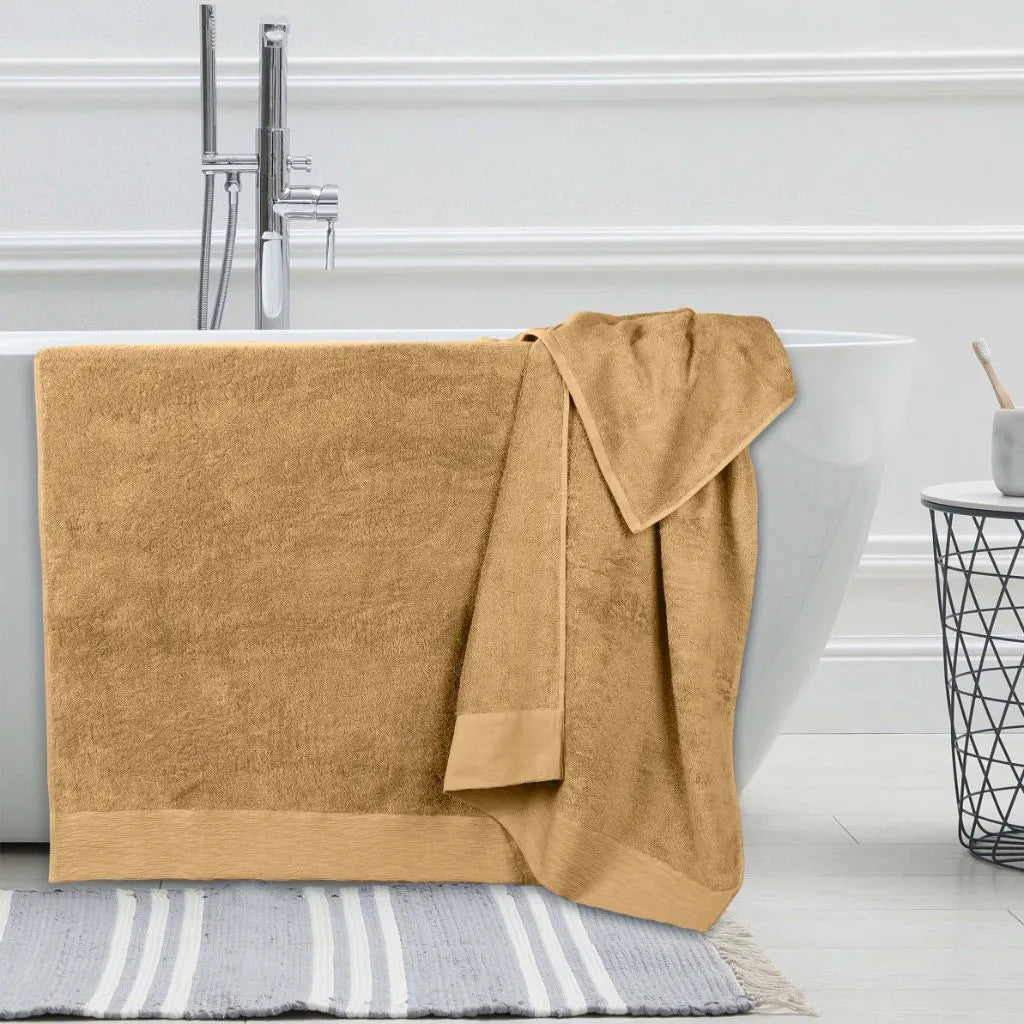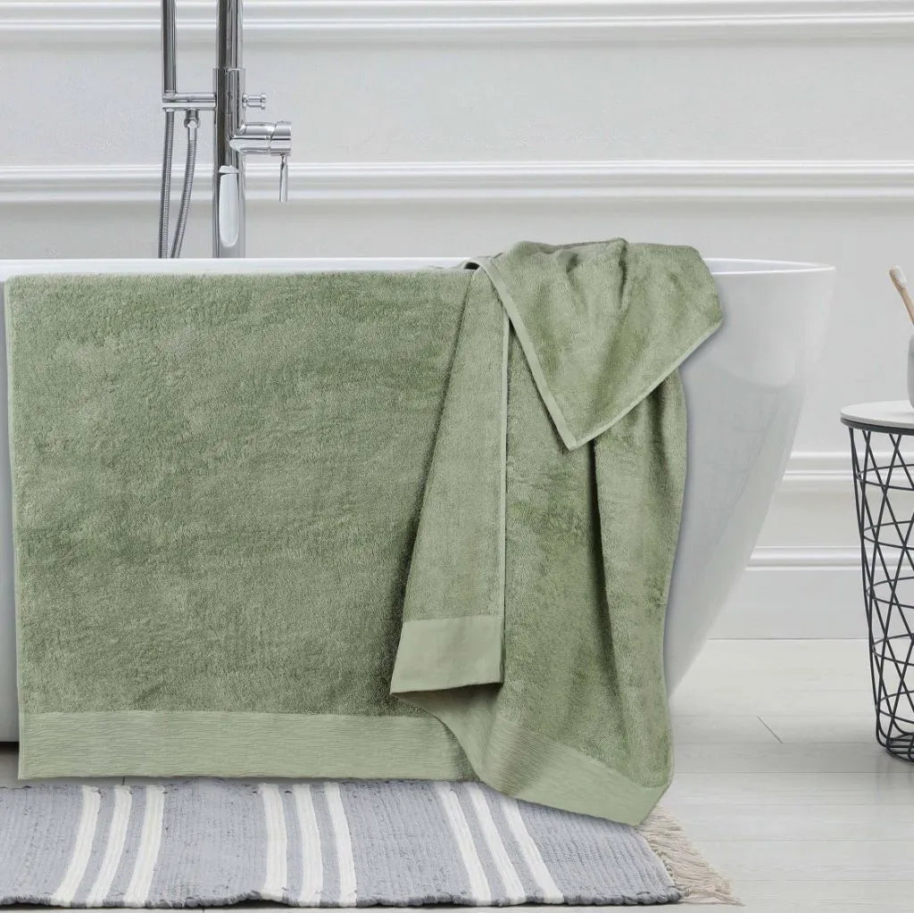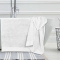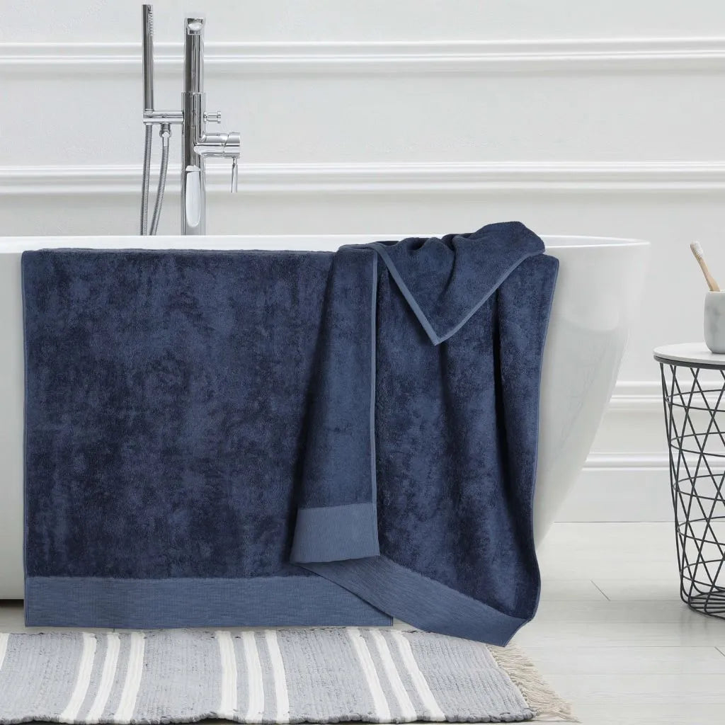 Immerse yourself in ultimate serenity with the Superior Rayon from Bamboo Eco-Friendly Fluffy Soft Modern Solid Bath Sheet Set of 2. This 40% Rayon from Bamboo, 60% Cotton towel set is crafted for a soft, absorbent, and luxurious experience. Boasting a classic solid design and wave textured border, bring a unique style to your guest or master bathroom with this bundle. Each towel is finished with secure hemmed edges to avoid fraying and a durable single-ply to withstand countless washes and last you years to come. Featuring a hanging loop on each piece, enjoy both convenience and comfort with this versatile set.