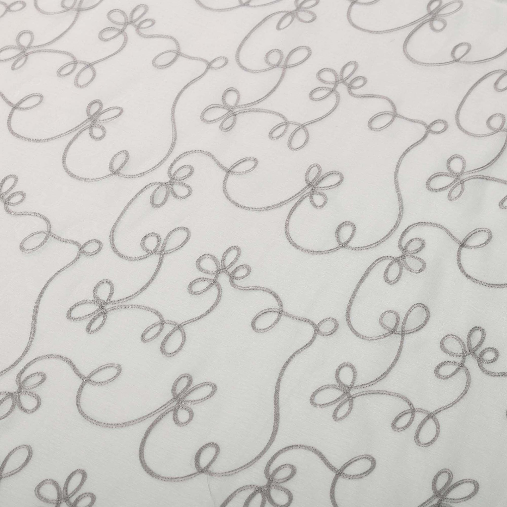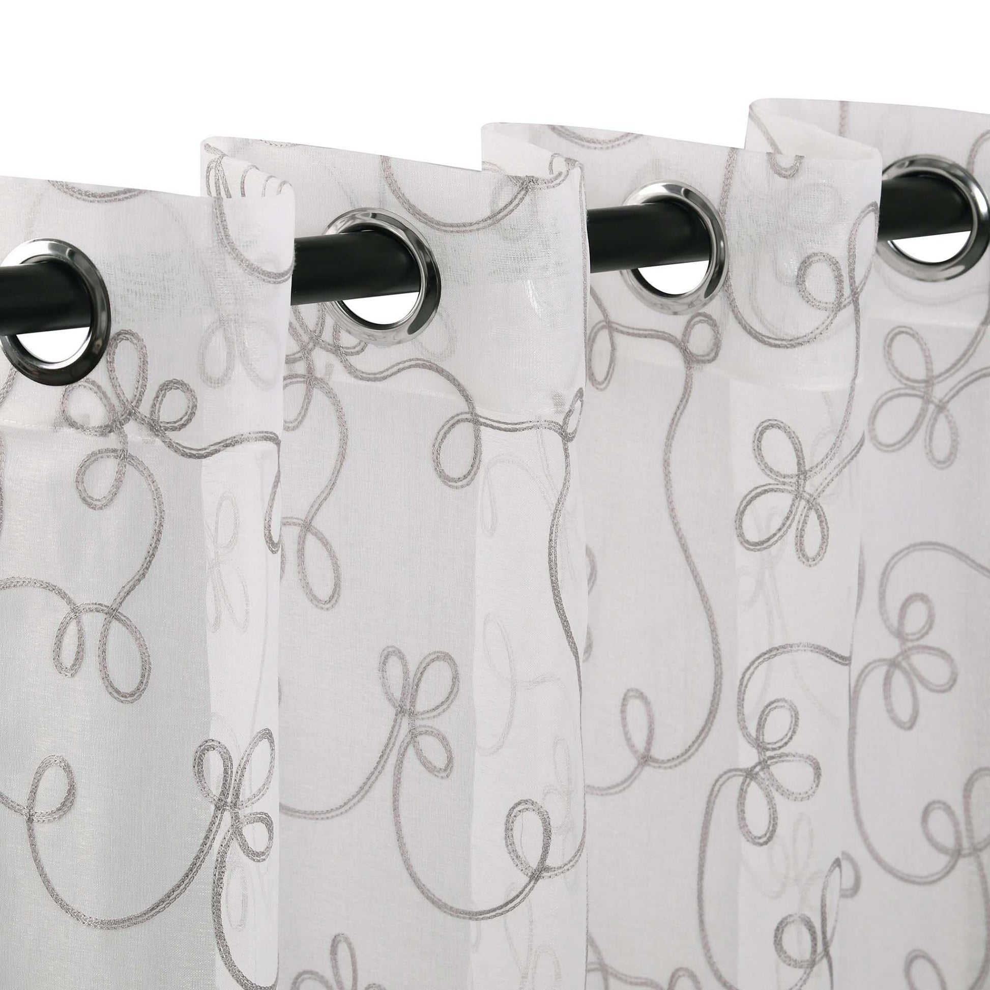 Traditional Embroidered Scroll Sheer Grommet Curtain Panel Set