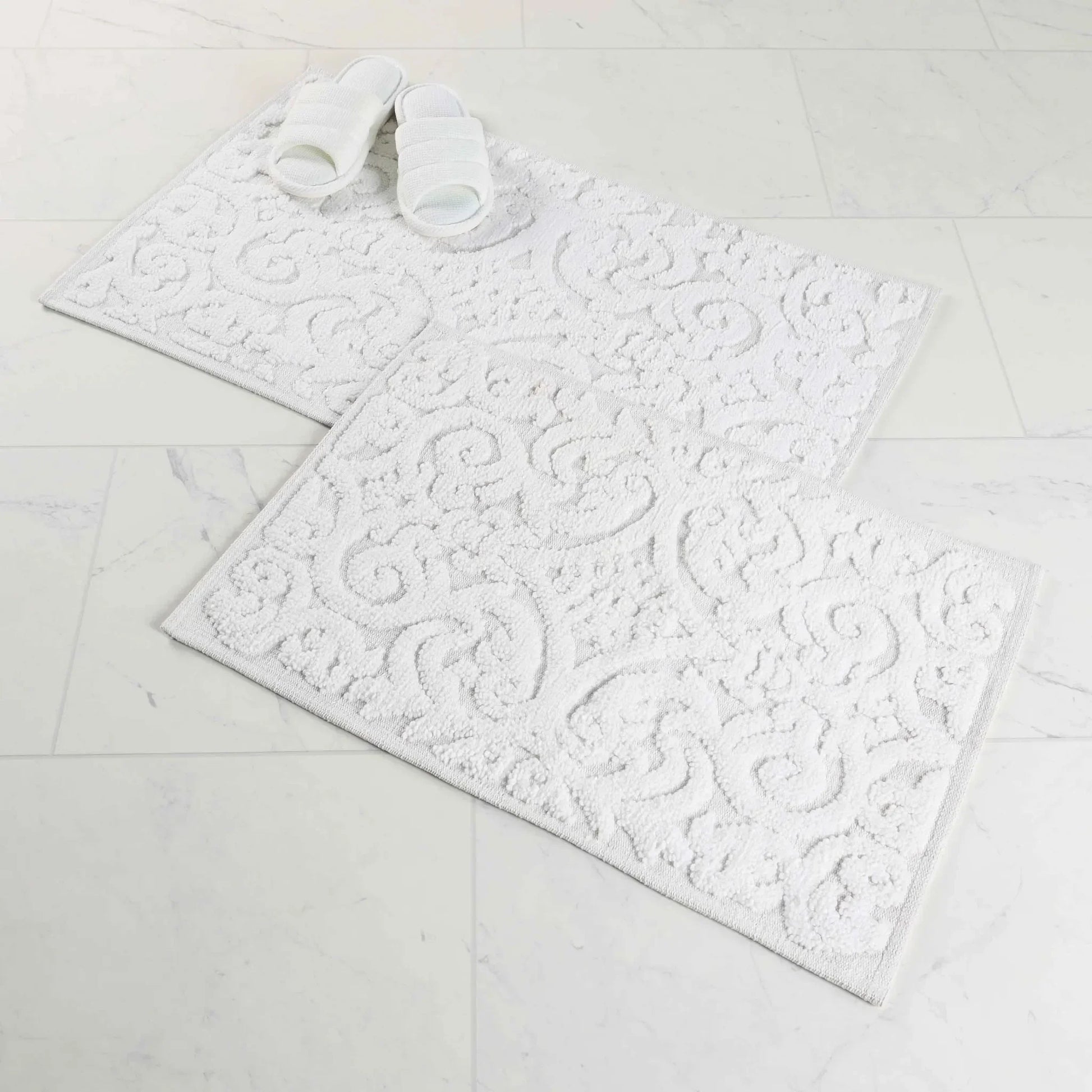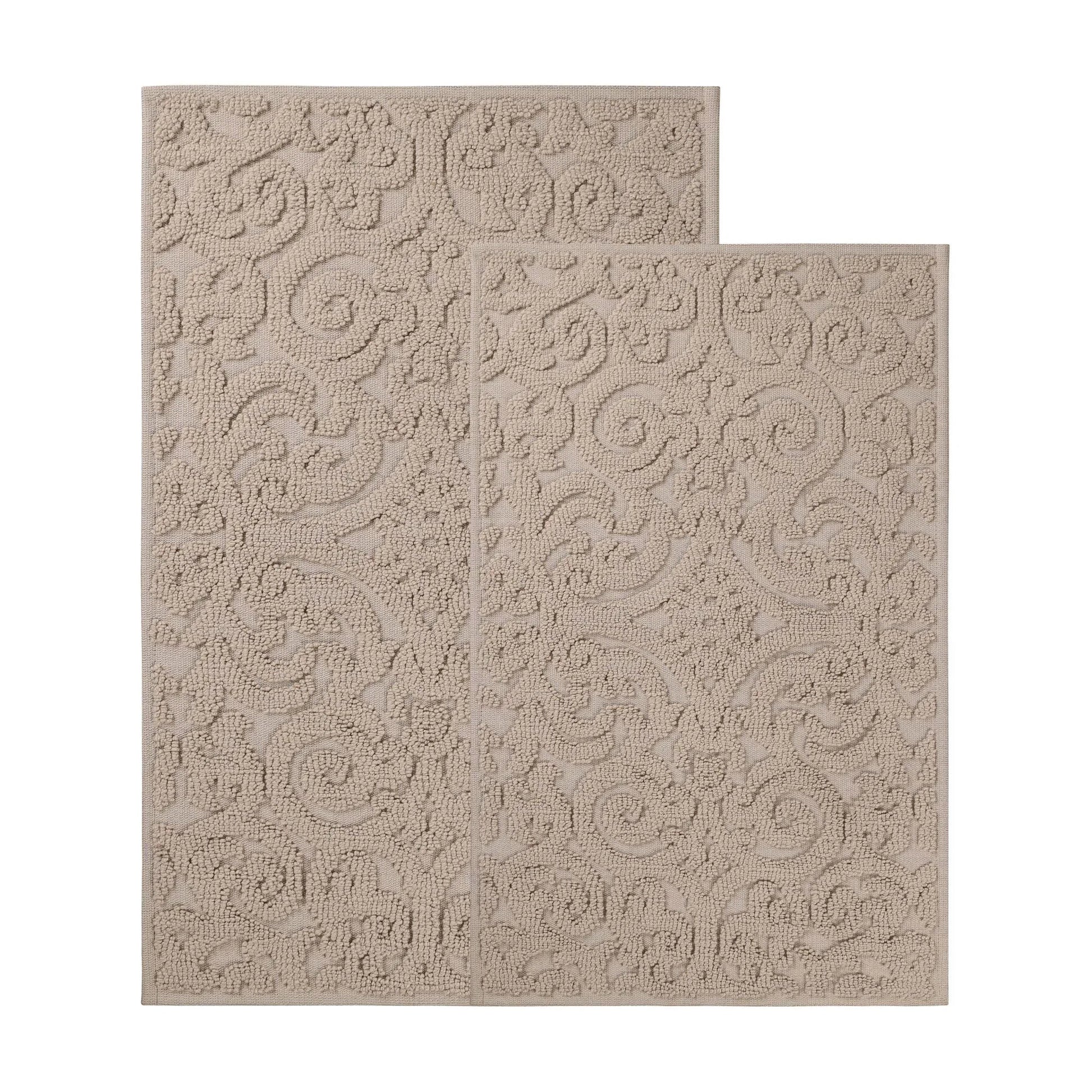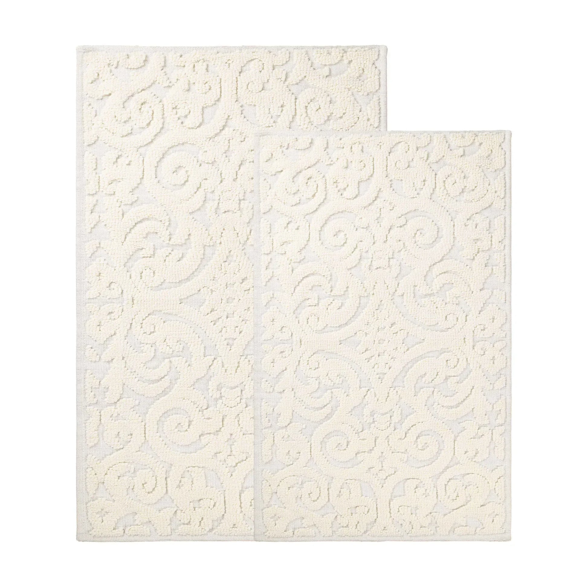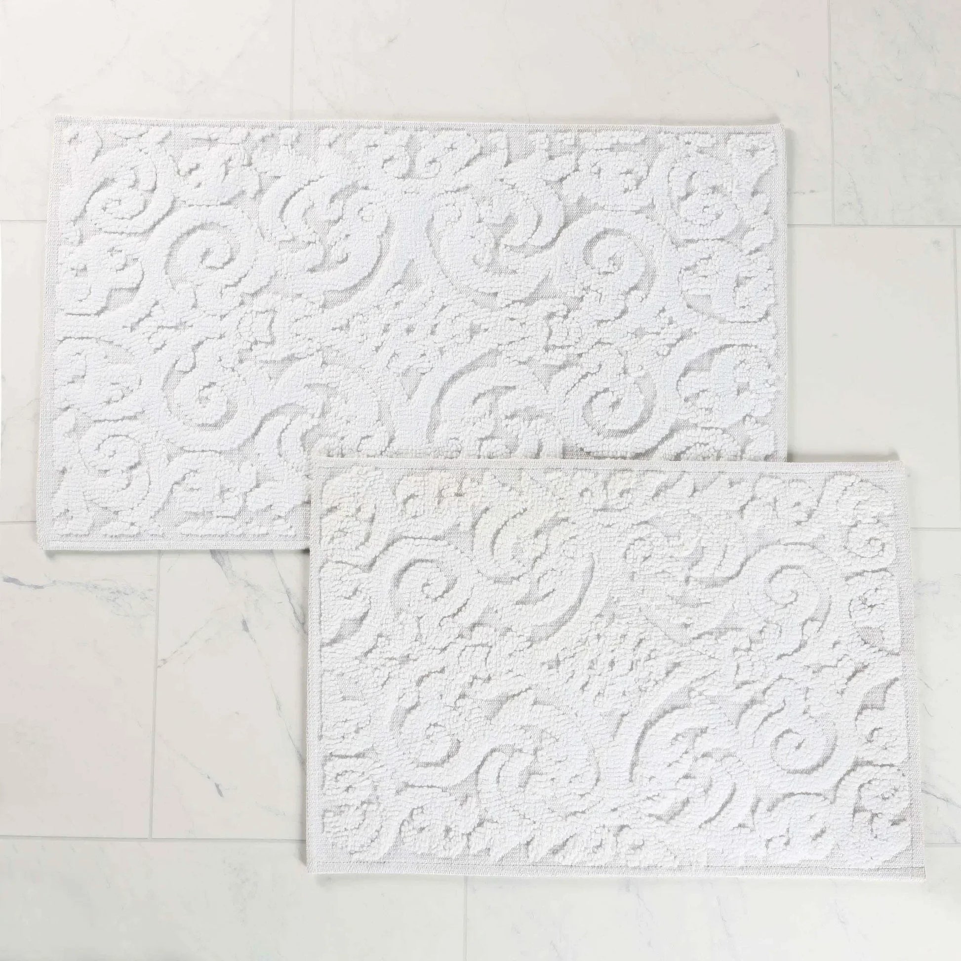Venere Floral Scroll Textured Machine Washable Bath Rugs, Set of 2