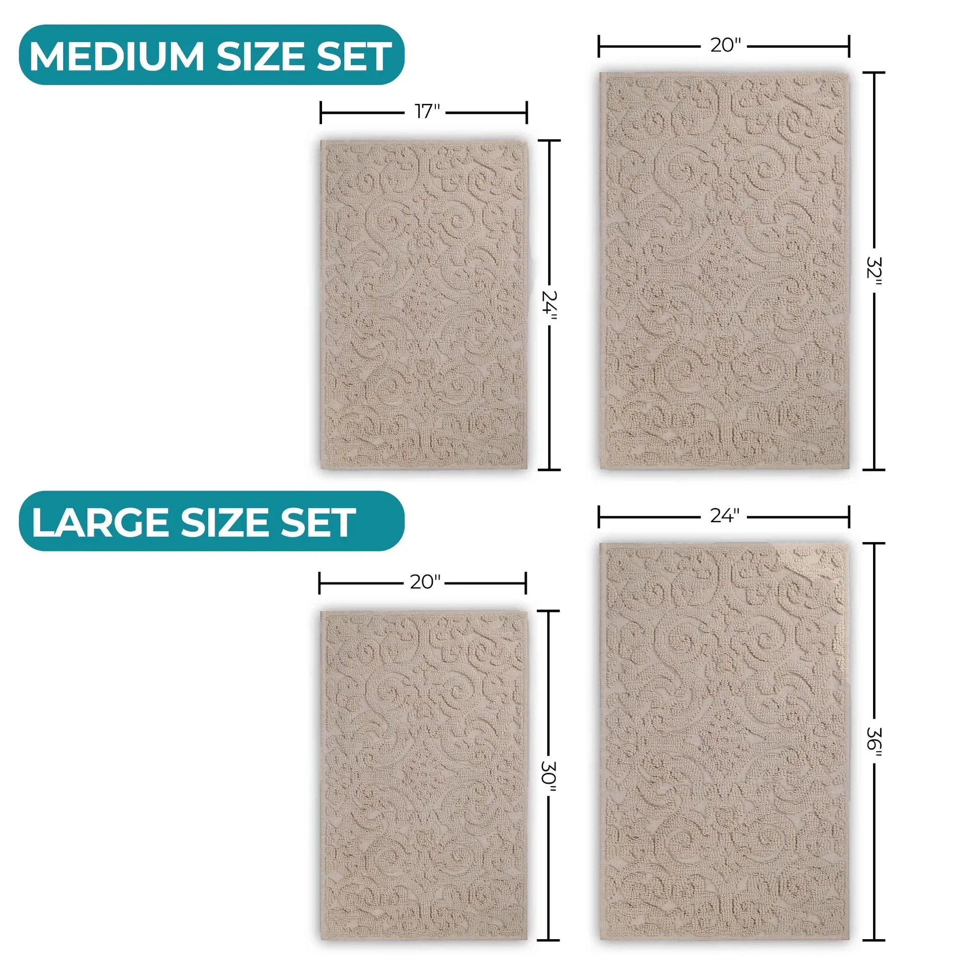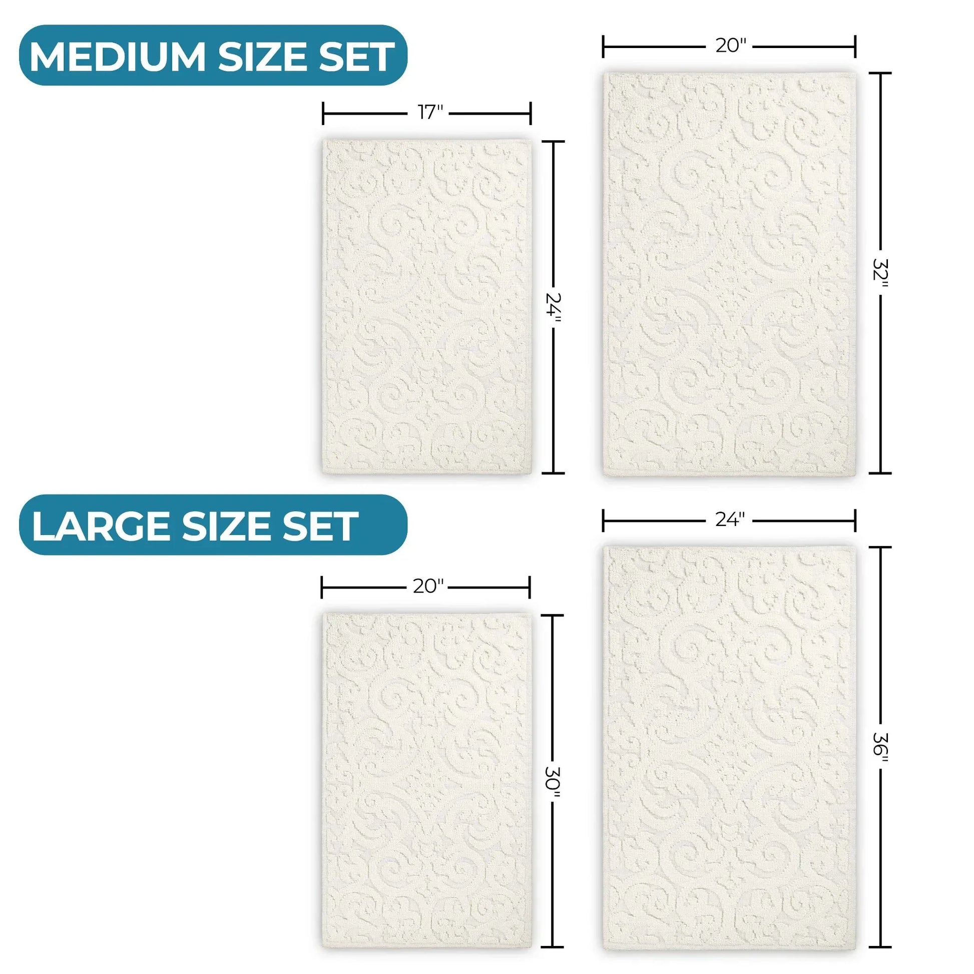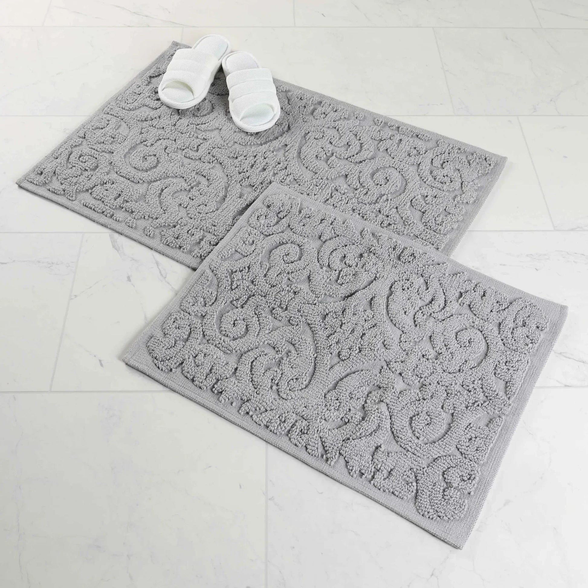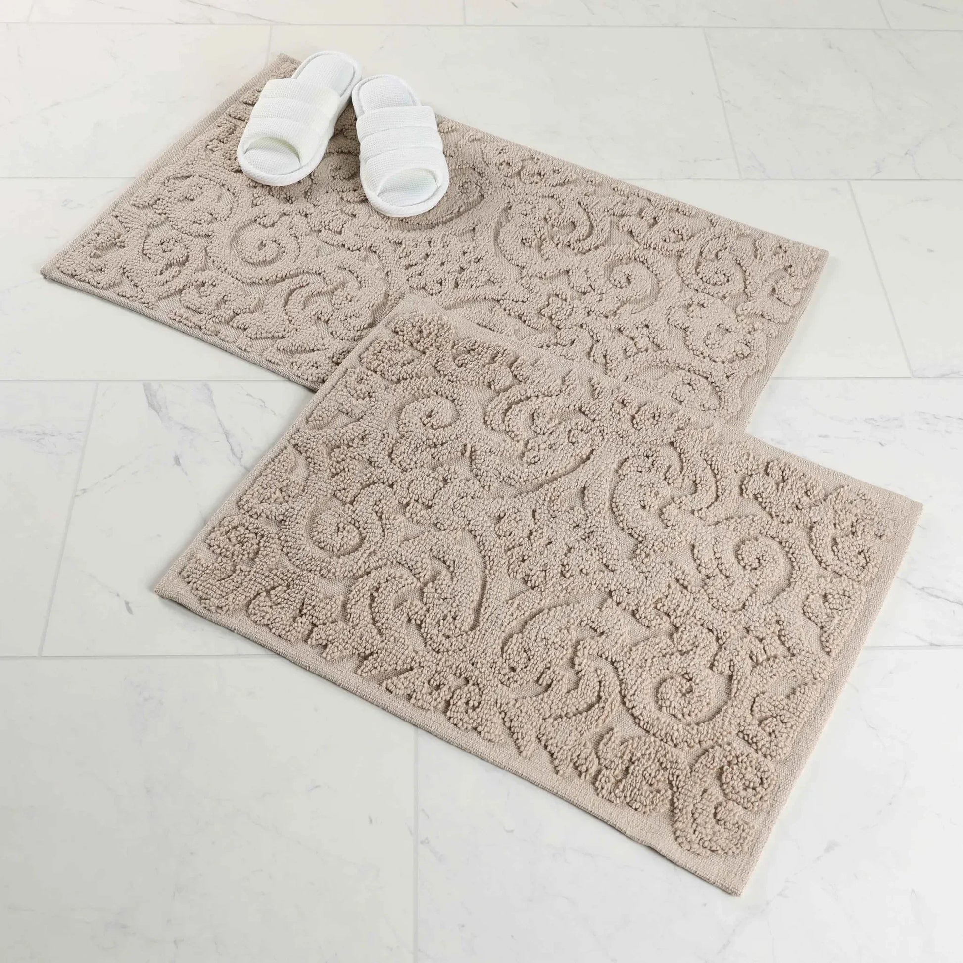 Venere Floral Scroll Textured Machine Washable Bath Rugs, Set of 2