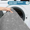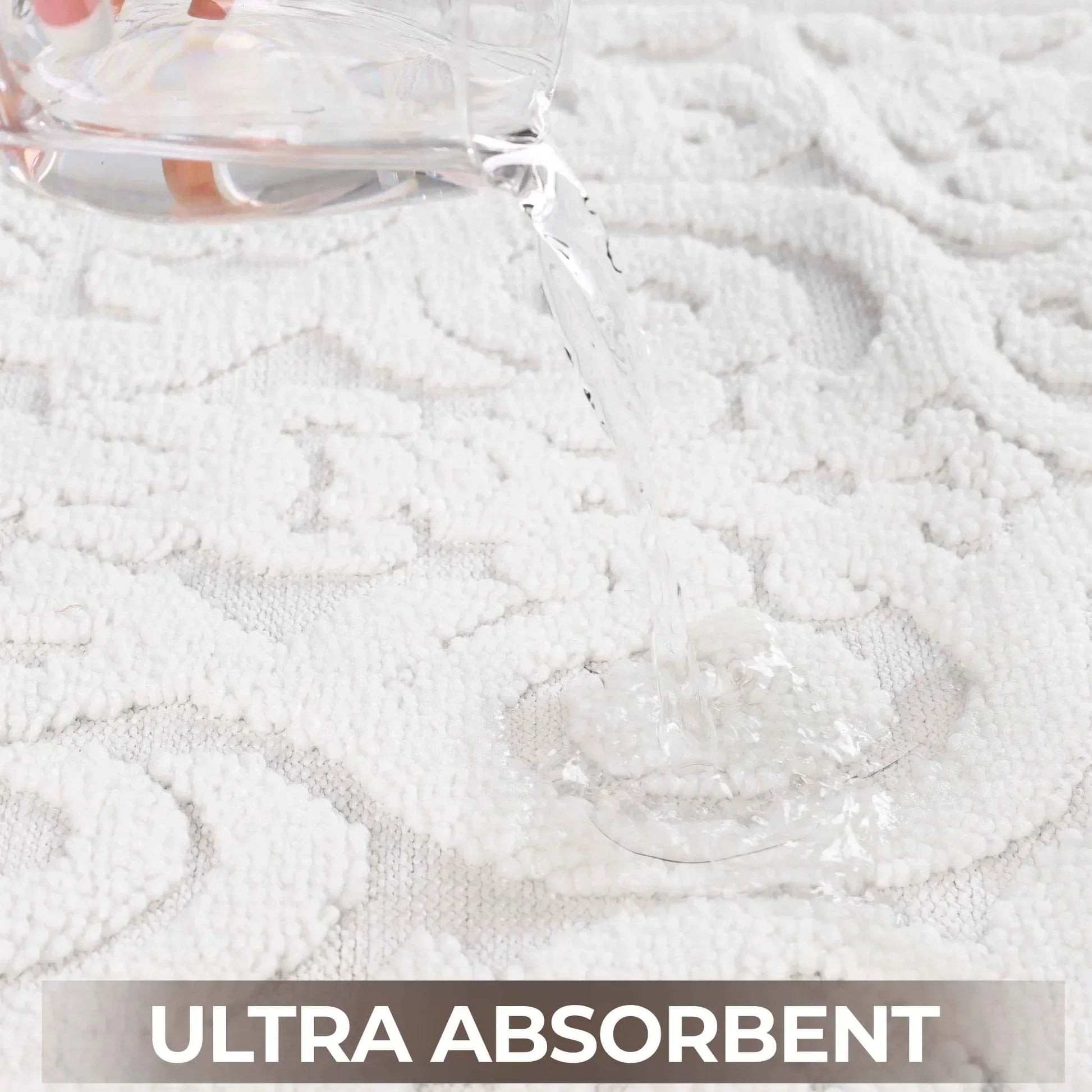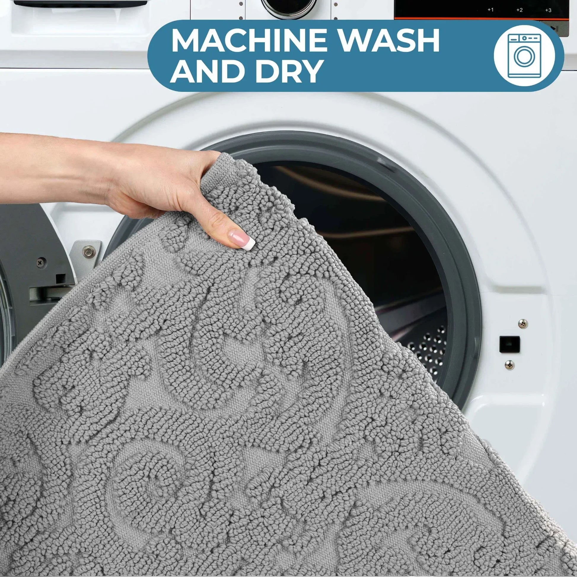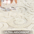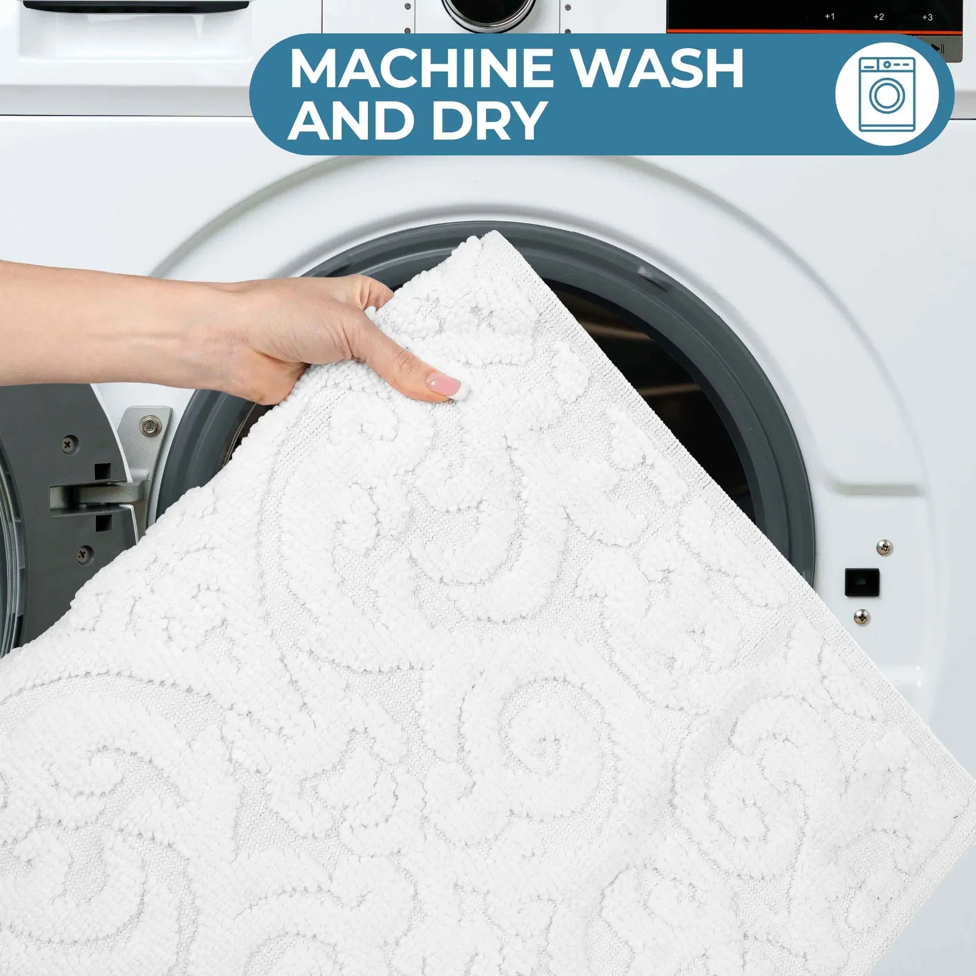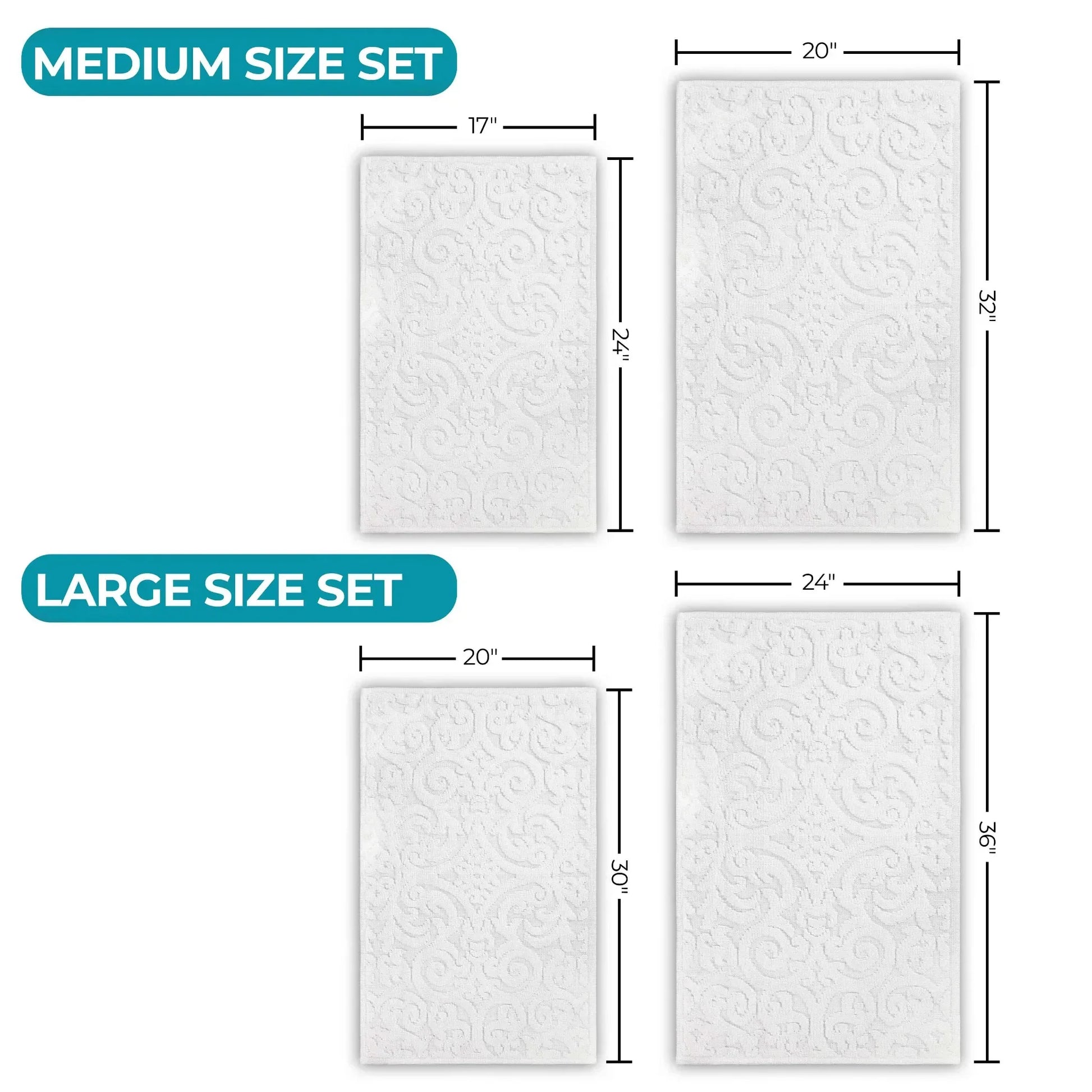 Venere Floral Scroll Textured Machine Washable Bath Rugs, Set of 2