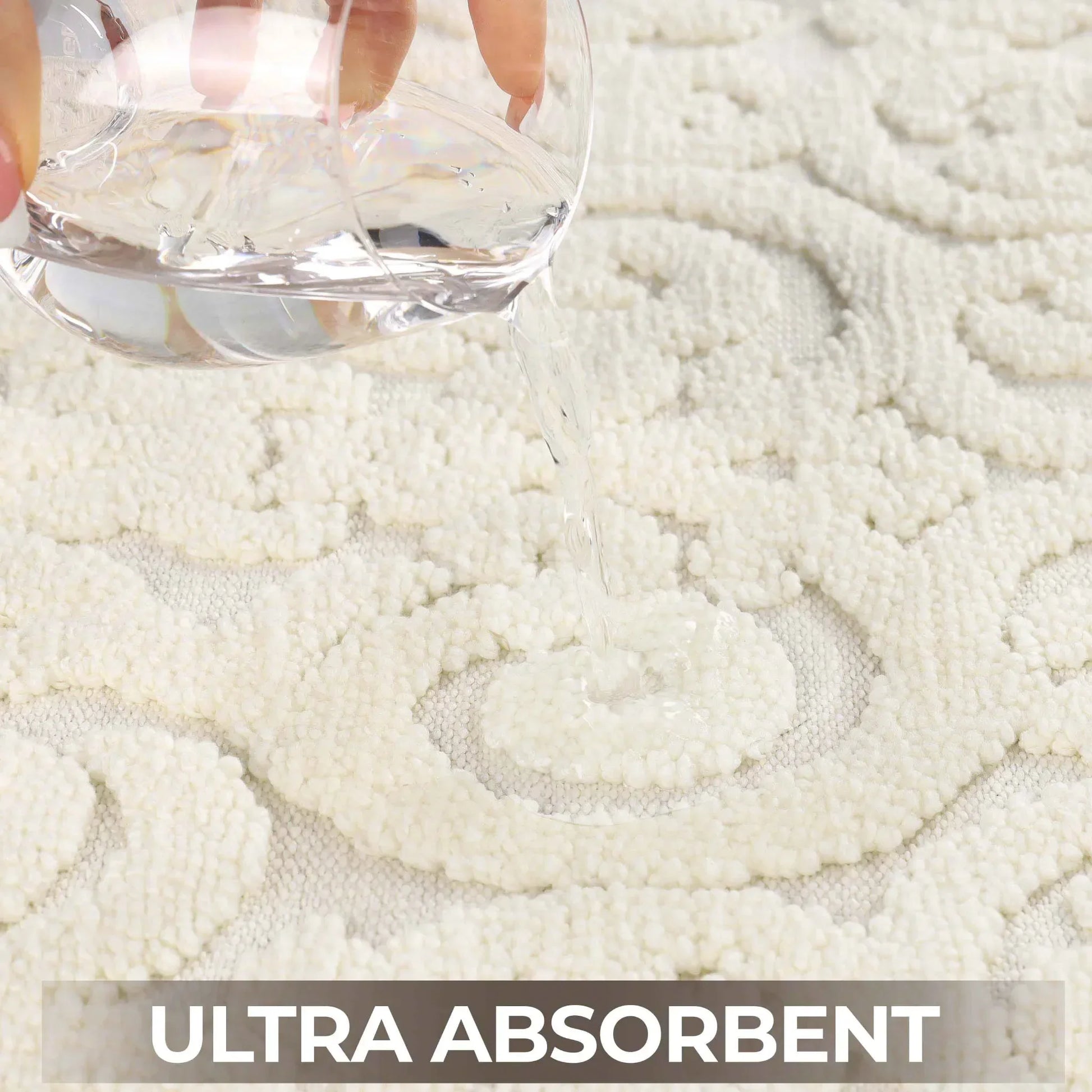 Fashioned from the 100% polyester, these rugs boast a non-slip backing, ensuring both safety and unparalleled convenience, while eliminating the need for an additional rug pad. Available in a curated selection of neutral hues, these rugs seamlessly complement any bath decor style, exuding an air of refined sophistication. Designed to withstand the demands of high-traffic areas, these durable rugs are effortlessly maintained with a simple machine wash, and their convenient roll-or-fold design allows for effortless storage.