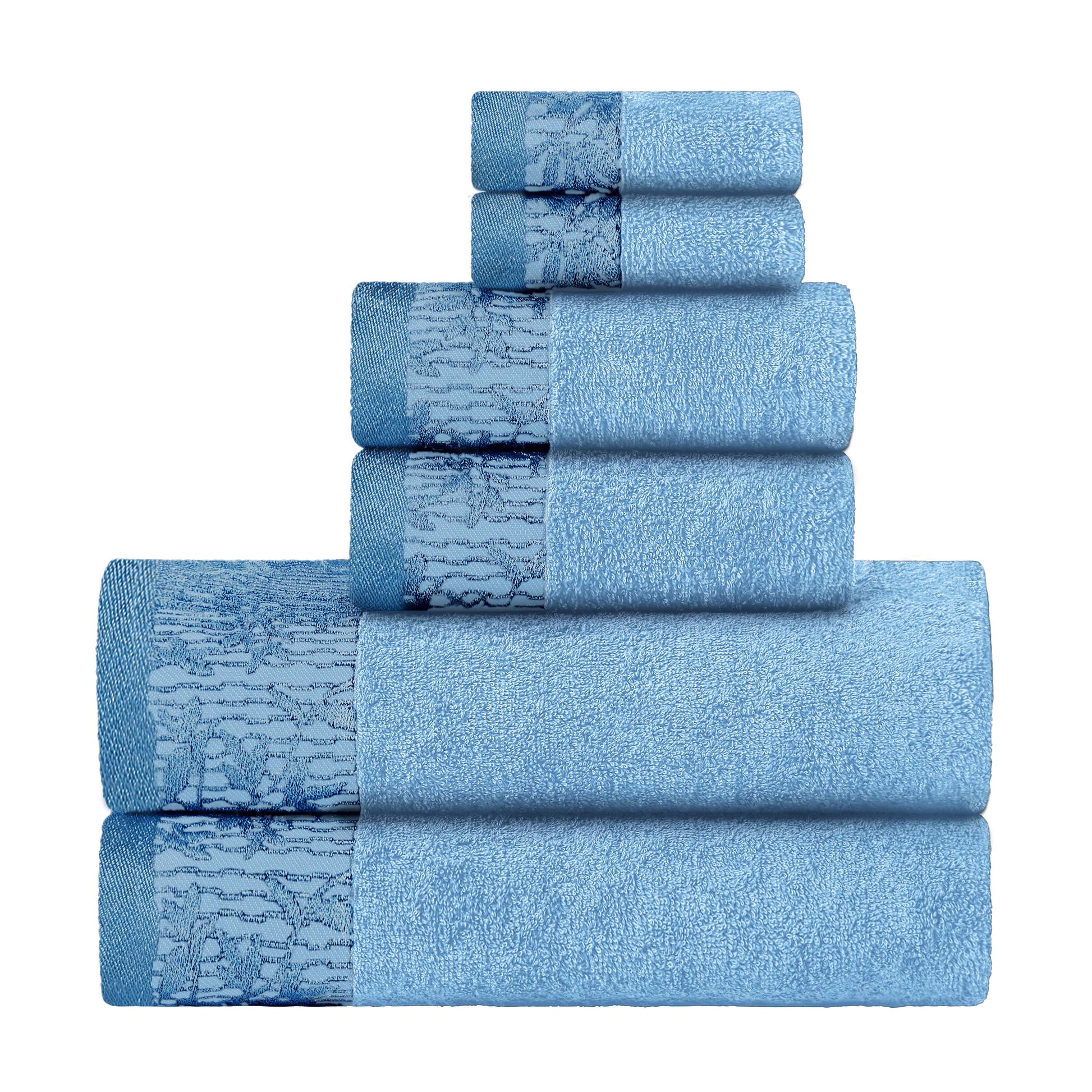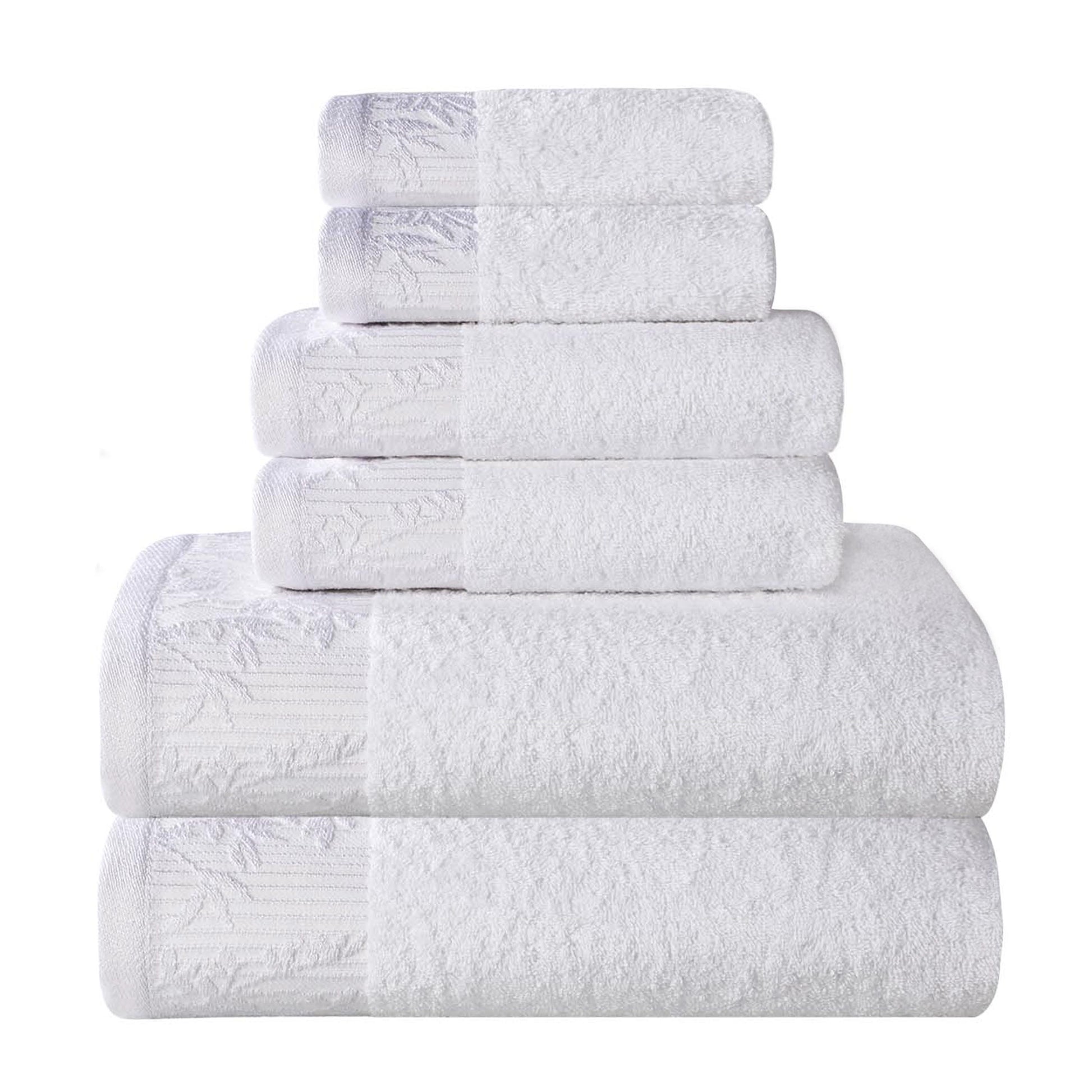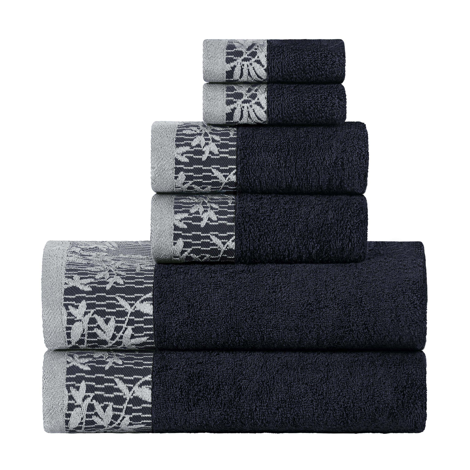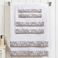 Introduce a touch of timeless elegance to your home with the Wisteria 6-Piece Towel Set. As one of our most popular floral bath towel sets, this collection features a beautifully detailed jacquard floral border. This stylish, decorative bath towel set is crafted to be a stunning focal point in any master or guest bathroom.