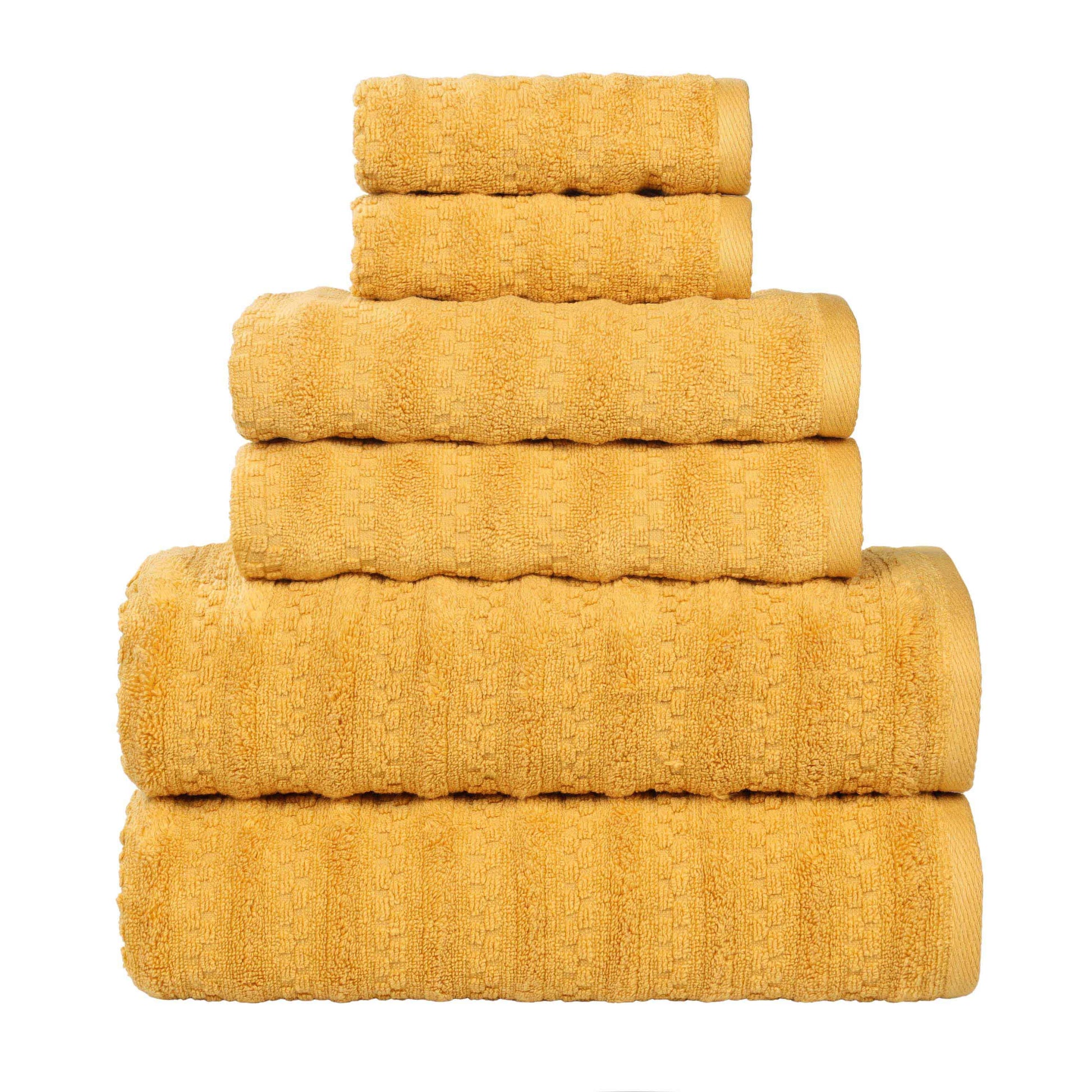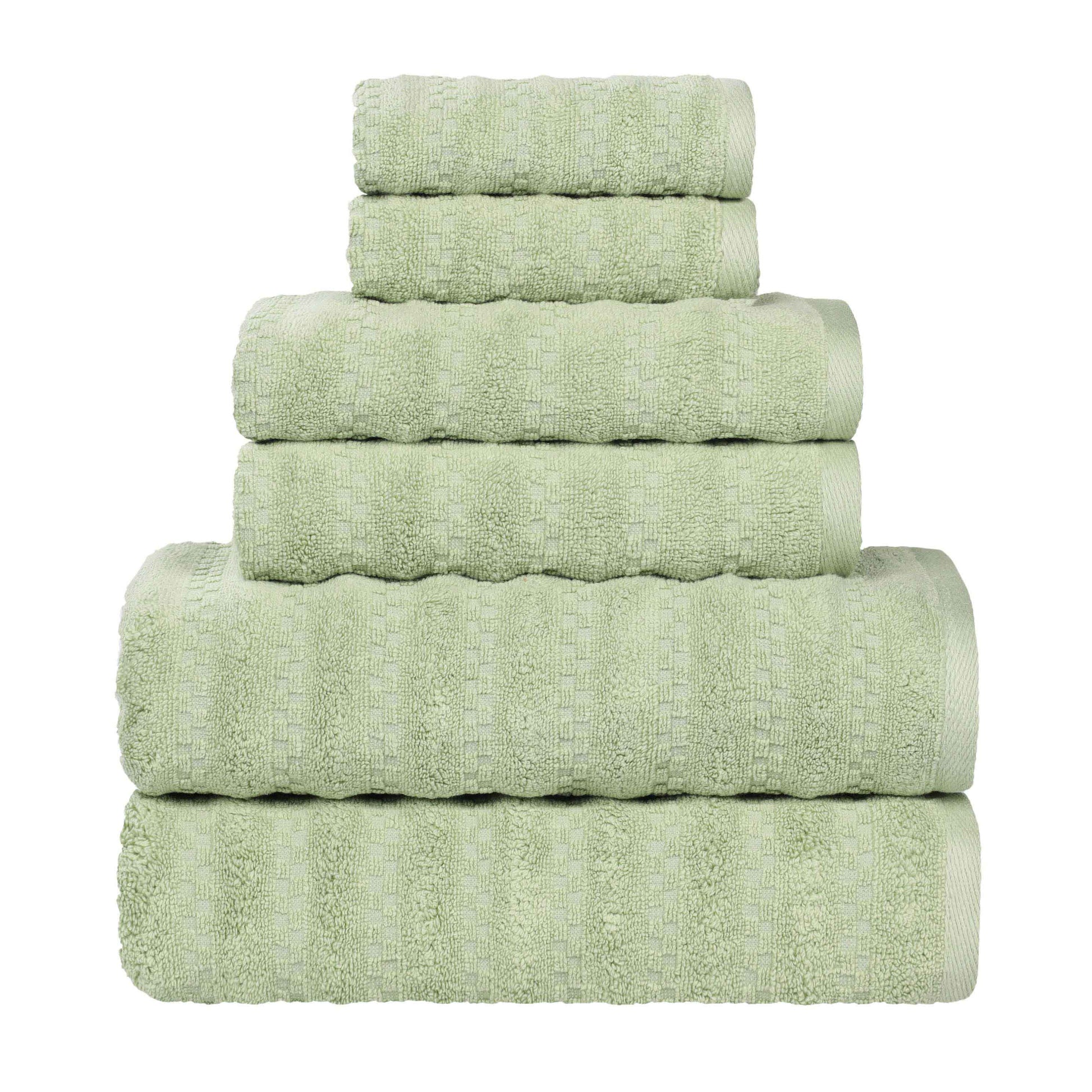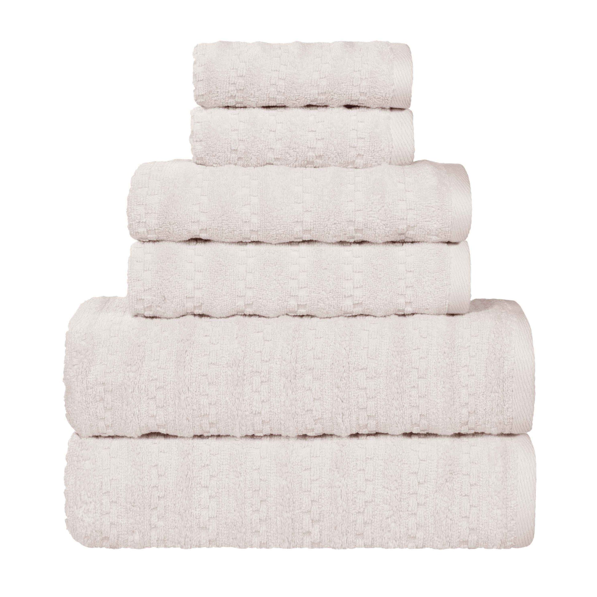 Zuma Zero Twist Cotton Medium Weight Waffle Stripes 6 Piece Towel Set