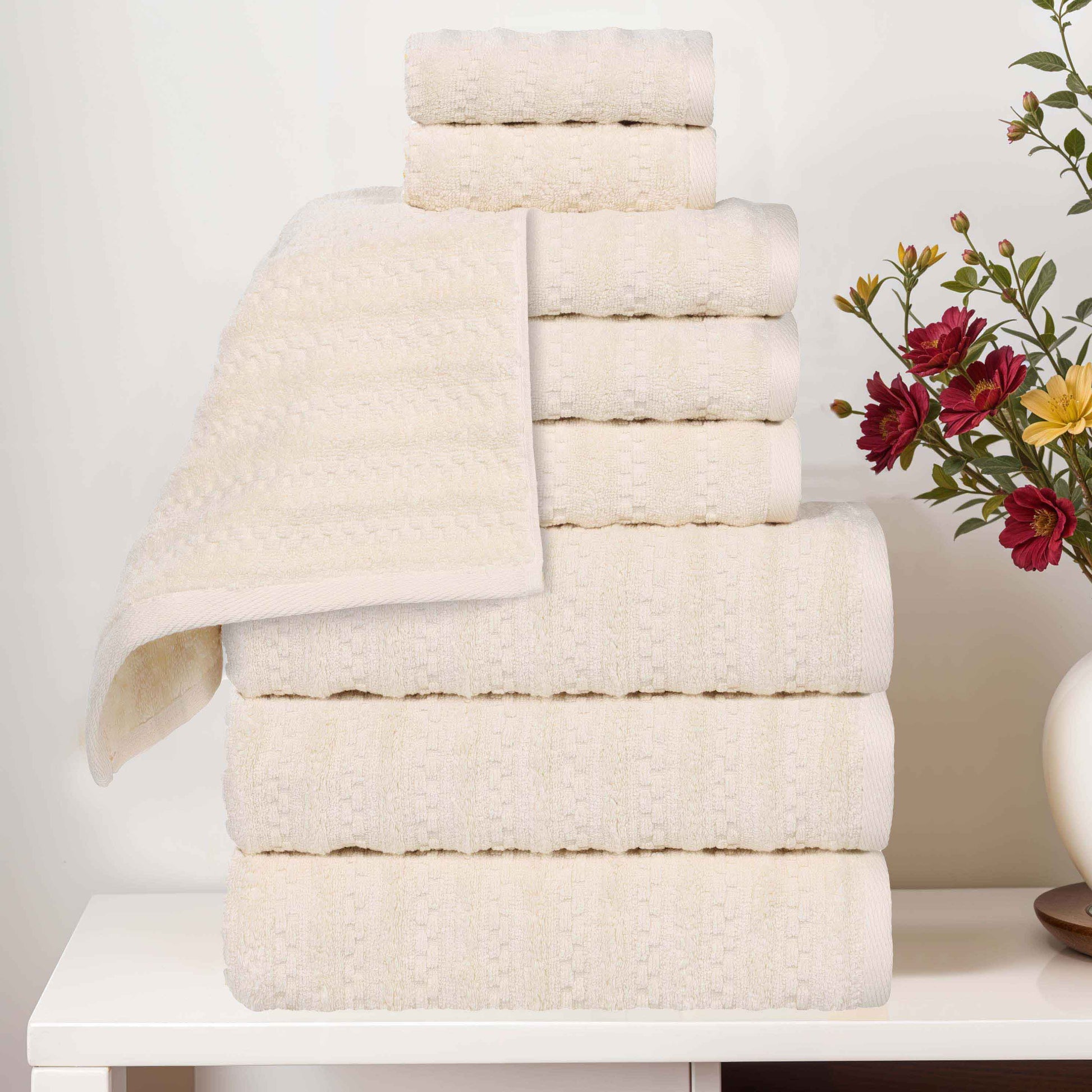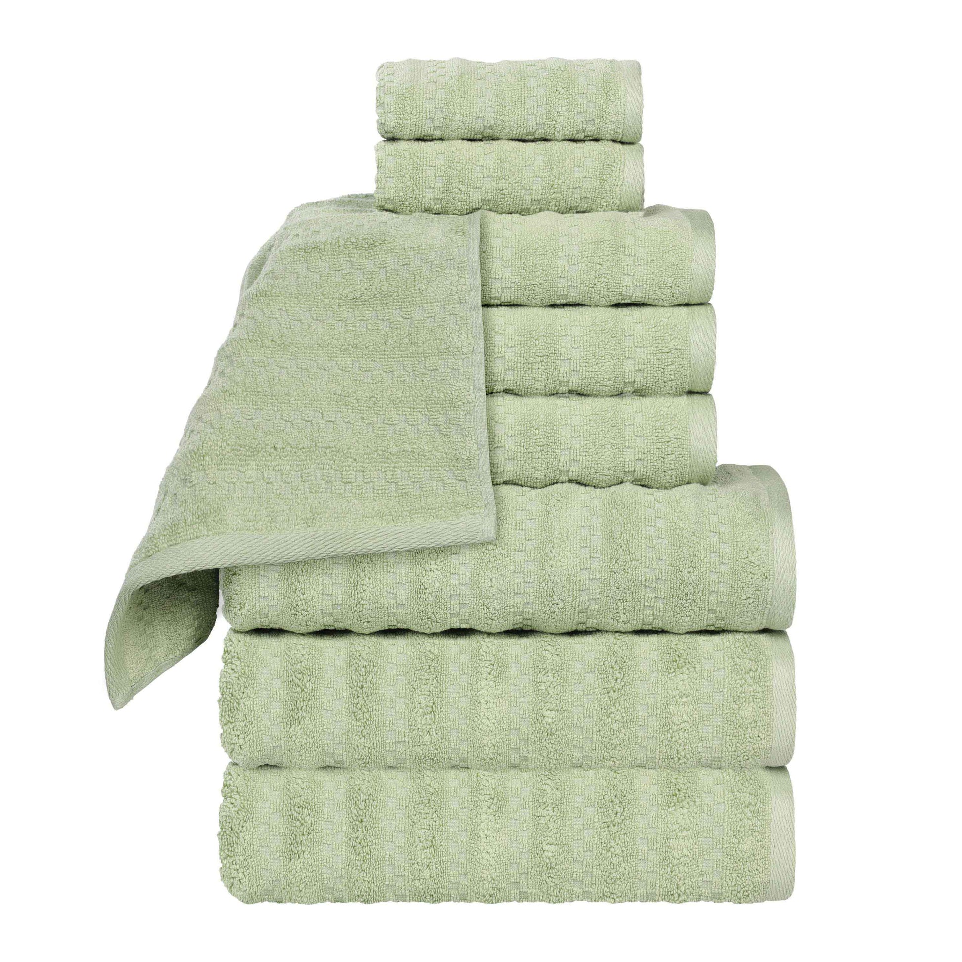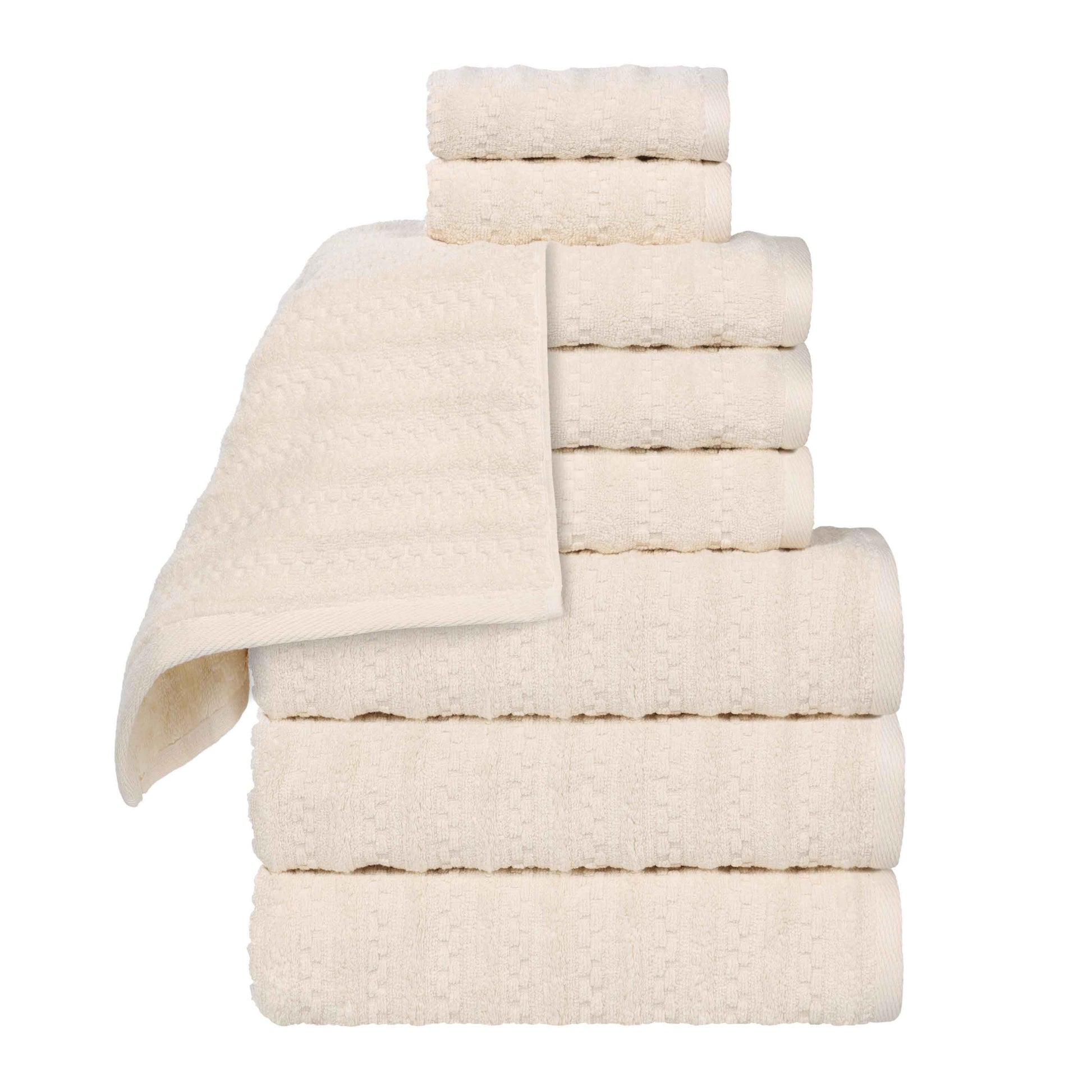 Zuma Zero Twist Cotton Medium Weight Waffle Stripes 9 Piece Towel Set