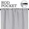 - Header Type: 26' width curtains feature a rod pocket header, 42' width curtains feature a stainless steel grommet header, and 52' width curtains are available in your choice of a stainless steel grommet header or a rod pocket.